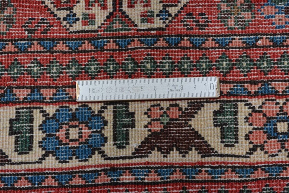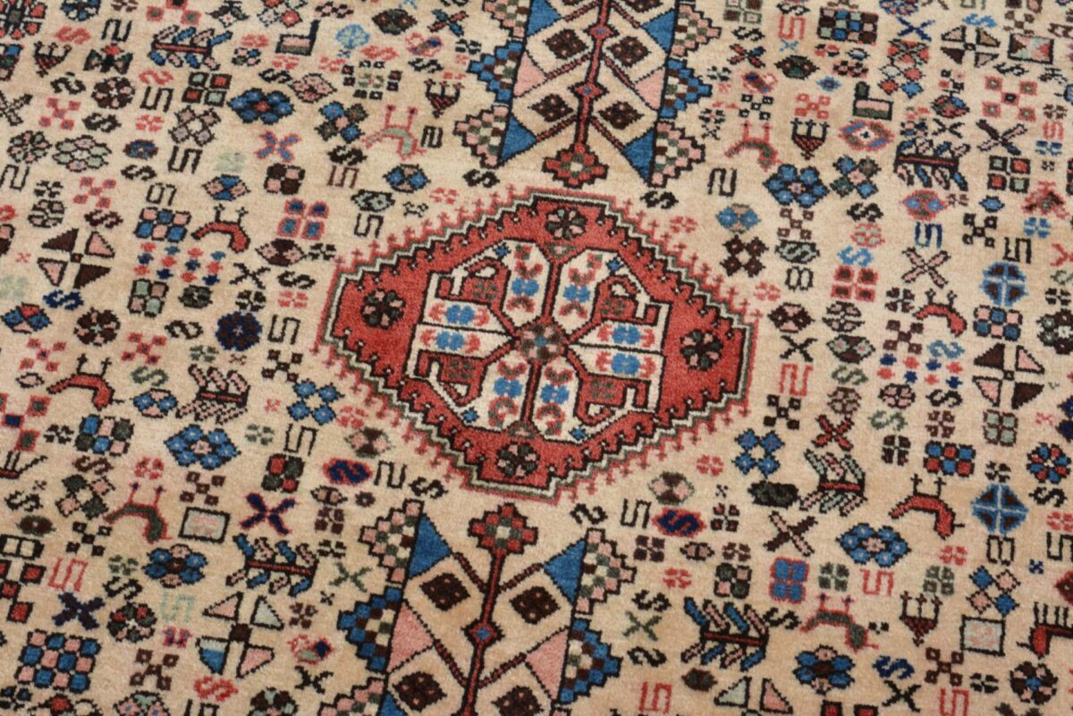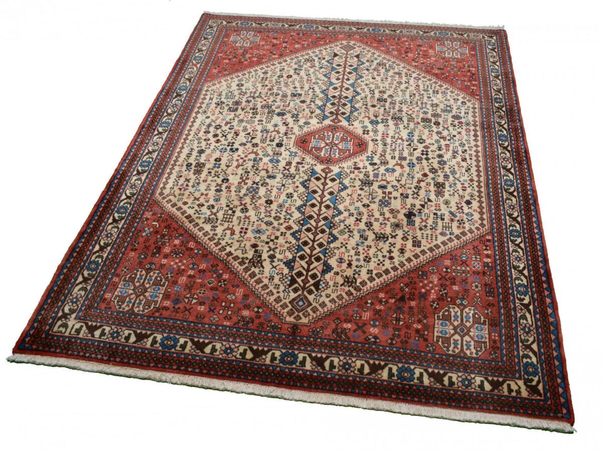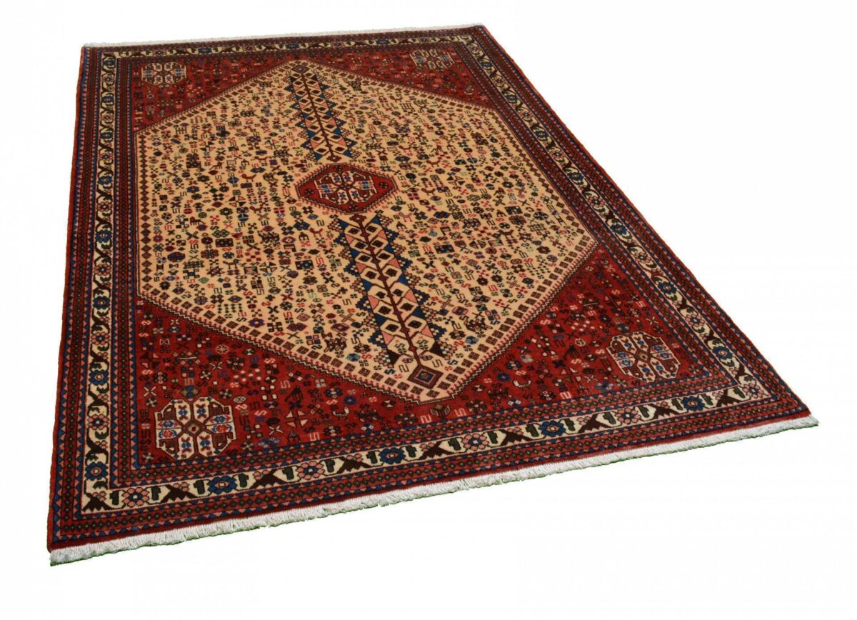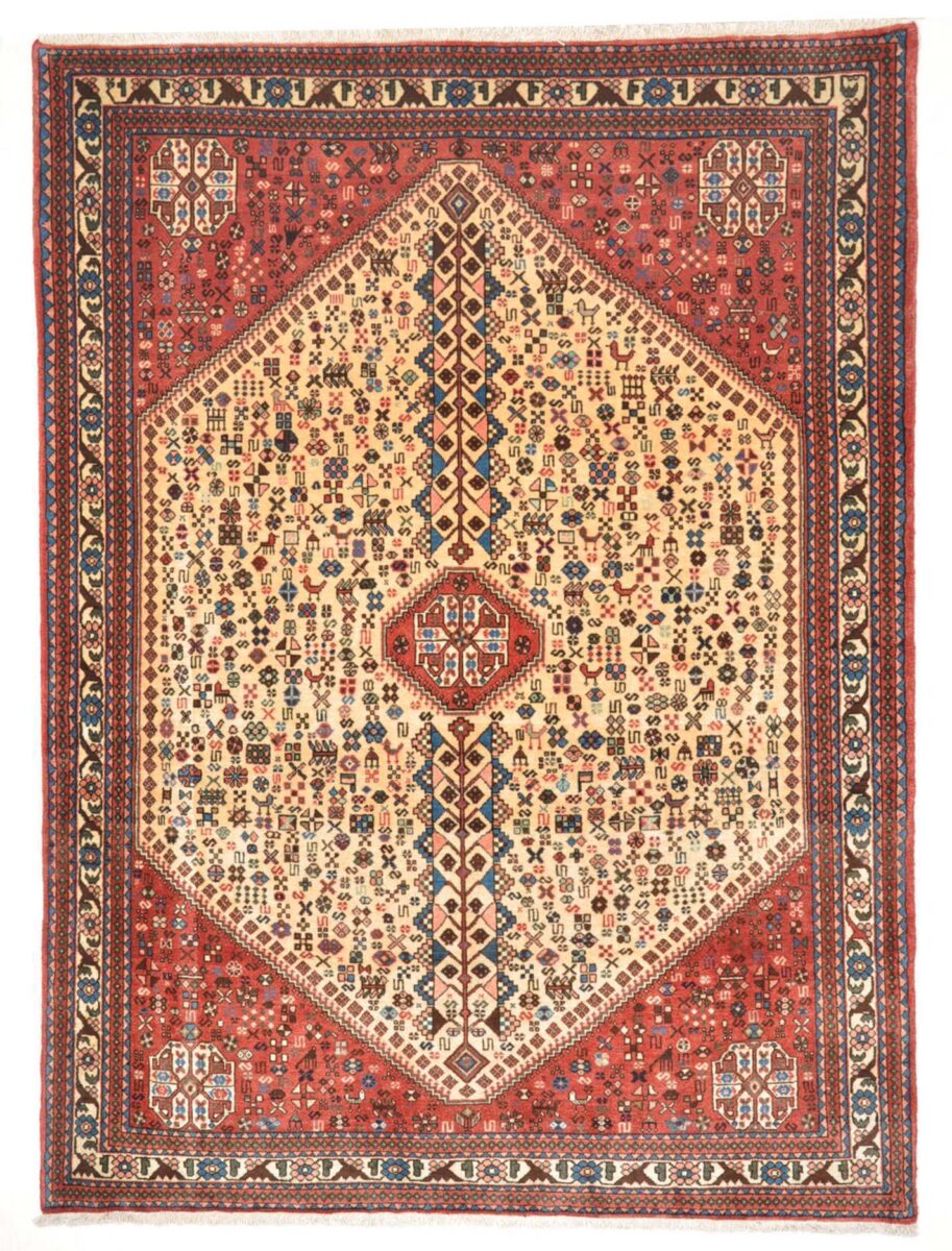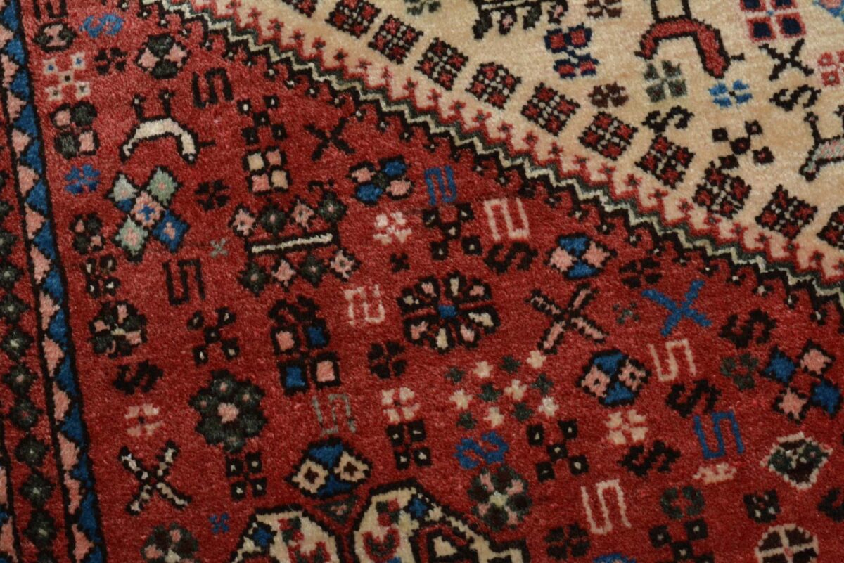 Der Abadeh-Perserteppich gehört zu den besonders strapazierfähigen Gebrauchsteppichen und zeichnet sich durch gute Qualität aus. Hergestellt wird er in der Oasenstadt Abadeh, die in der Fars-Provinz zwischen den beiden berühmten Teppichprovenienzen Shiraz und Isfahan liegt. Häufig findet sich beim Abadeh-Perserteppich das Heibathlou-Muster wieder, das von den Nomadenteppichen aus der Umgebung inspiriert ist. Selbst Laien können diesen einprägsamen Mustertyp leicht an den Rauten- oder Rosetten-Medaillons erkennen, die sowohl in der Mitte als auch an den Teppichecken eingeknüpft sind. Das ursprüngliche Design des Abadeh-Teppichs weist jedoch das Zil-i-Sultan-Muster auf. Dabei handelt es sich um ein spezielles Blumenvasen-Motiv mit zwei Vogelgestalten, das stets im Rapport gearbeitet wird und den Orientteppich als Allover-Muster ziert. Für den Flor des Abadeh-Teppichs wird Wolle verwendet, wobei die traditionellen Perserteppich-Farben rot und blau vorherrschend sind. Geknüpft wird der verschleißfähige Orientteppich im asymmetrischen Knoten auf Baumwollkette und kann mitunter eine Qualität von über 300.000 Knoten pro Quadratmeter erreichen.