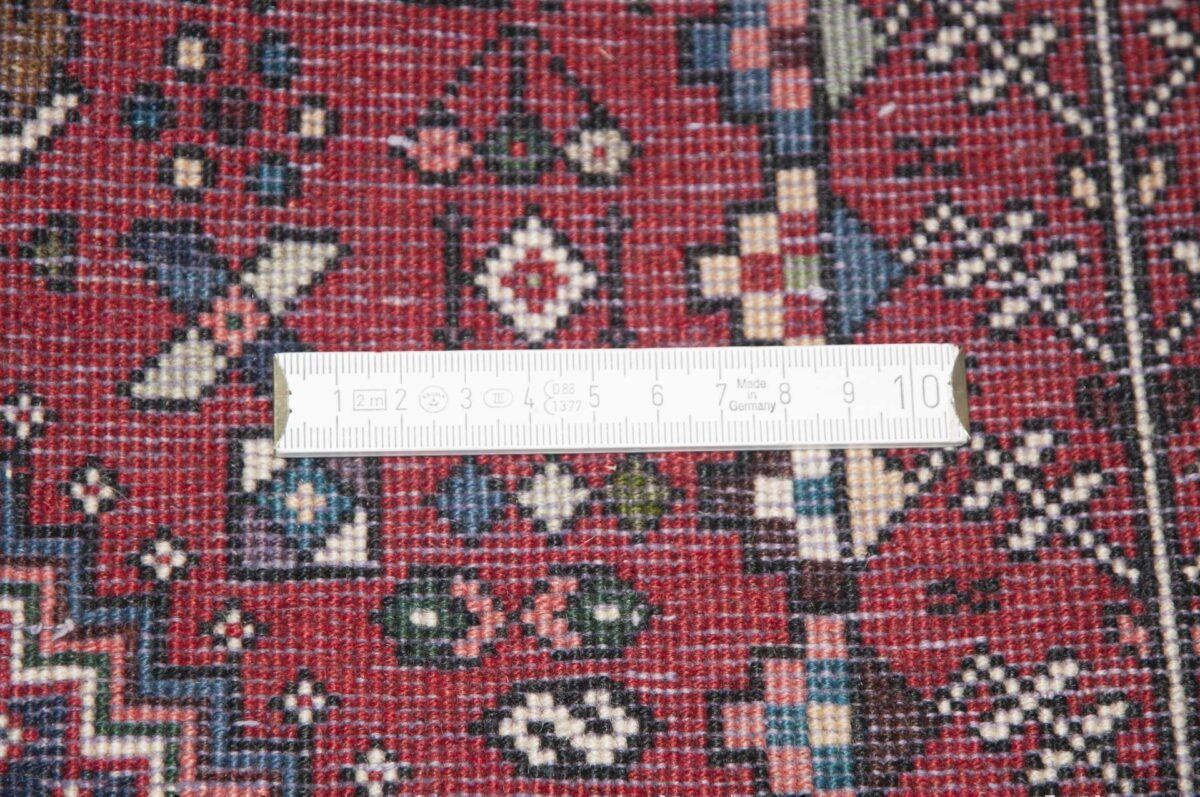Der Abadeh-Perserteppich gehört zu den besonders strapazierfähigen Gebrauchsteppichen und zeichnet sich durch gute Qualität aus. Hergestellt wird er in der Oasenstadt Abadeh, die in der Fars-Provinz zwischen den beiden berühmten Teppichprovenienzen Shiraz und Isfahan liegt. Häufig findet sich beim Abadeh-Perserteppich das Heibathlou-Muster wieder, das von den Nomadenteppichen aus der Umgebung inspiriert ist. Selbst Laien können diesen einprägsamen Mustertyp leicht an den Rauten- oder Rosetten-Medaillons erkennen, die sowohl in der Mitte als auch an den Teppichecken eingeknüpft sind. Das ursprüngliche Design des Abadeh-Teppichs weist jedoch das Zil-i-Sultan-Muster auf. Dabei handelt es sich um ein spezielles Blumenvasen-Motiv mit zwei Vogelgestalten, das stets im Rapport gearbeitet wird und den Orientteppich als Allover-Muster ziert. Für den Flor des Abadeh-Teppichs wird Wolle verwendet, wobei die traditionellen Perserteppich-Farben rot und blau vorherrschend sind. Geknüpft wird der verschleißfähige Orientteppich im asymmetrischen Knoten auf Baumwollkette und kann mitunter eine Qualität von über 300.000 Knoten pro Quadratmeter erreichen.