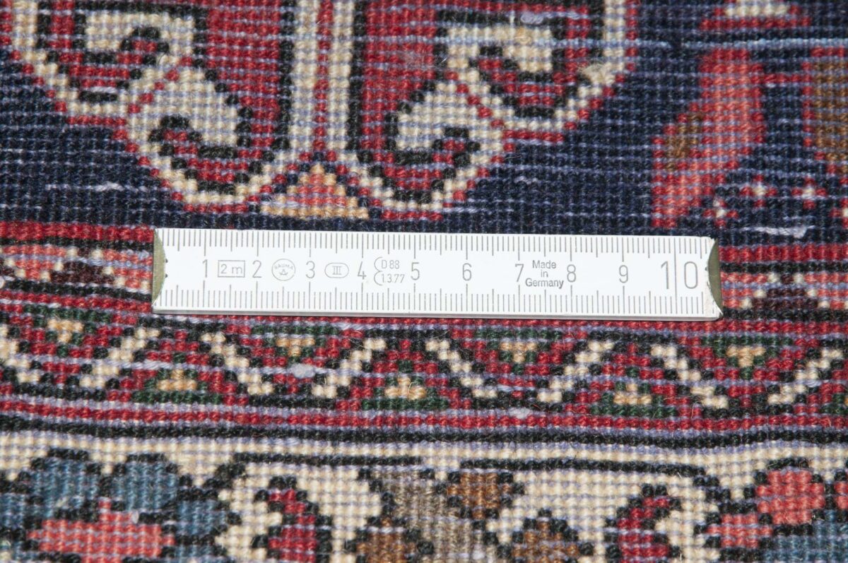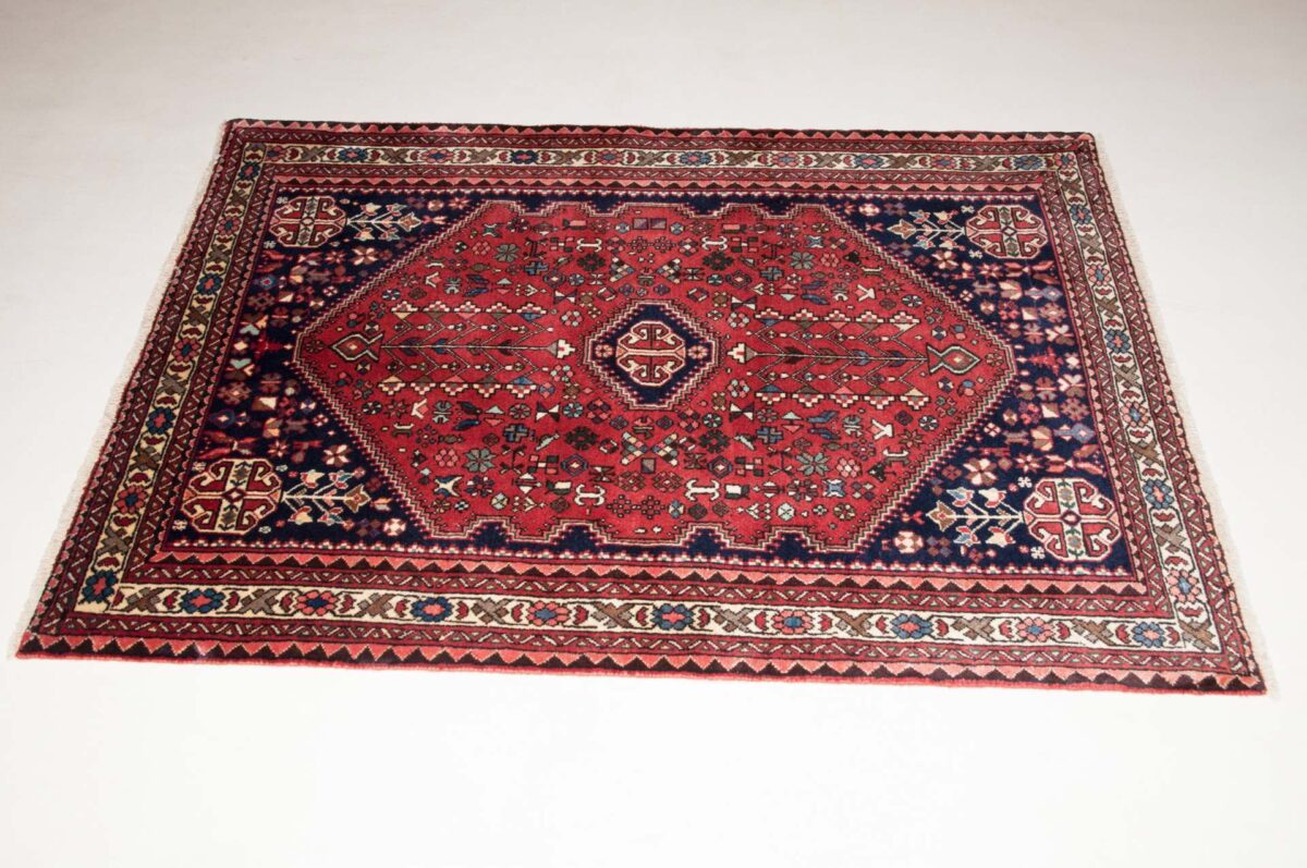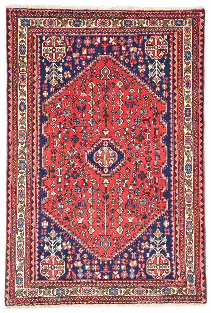 Der Abadeh-Perserteppich gehört zu den besonders strapazierfähigen Gebrauchsteppichen und zeichnet sich durch gute Qualität aus. Hergestellt wird er in der Oasenstadt Abadeh, die in der Fars-Provinz zwischen den beiden berühmten Teppichprovenienzen Shiraz und Isfahan liegt. Häufig findet sich beim Abadeh-Perserteppich das Heibathlou-Muster wieder, das von den Nomadenteppichen aus der Umgebung inspiriert ist. Selbst Laien können diesen einprägsamen Mustertyp leicht an den Rauten- oder Rosetten-Medaillons erkennen, die sowohl in der Mitte als auch an den Teppichecken eingeknüpft sind. Das ursprüngliche Design des Abadeh-Teppichs weist jedoch das Zil-i-Sultan-Muster auf. Dabei handelt es sich um ein spezielles Blumenvasen-Motiv mit zwei Vogelgestalten, das stets im Rapport gearbeitet wird und den Orientteppich als Allover-Muster ziert. Für den Flor des Abadeh-Teppichs wird Wolle verwendet, wobei die traditionellen Perserteppich-Farben rot und blau vorherrschend sind. Geknüpft wird der verschleißfähige Orientteppich im asymmetrischen Knoten auf Baumwollkette und kann mitunter eine Qualität von über 300.000 Knoten pro Quadratmeter erreichen.