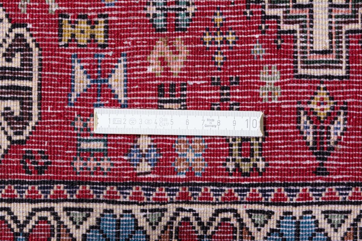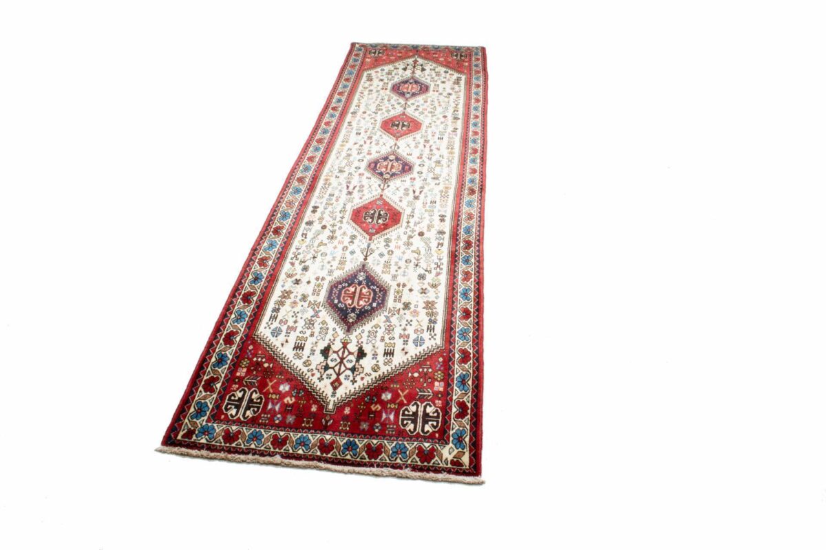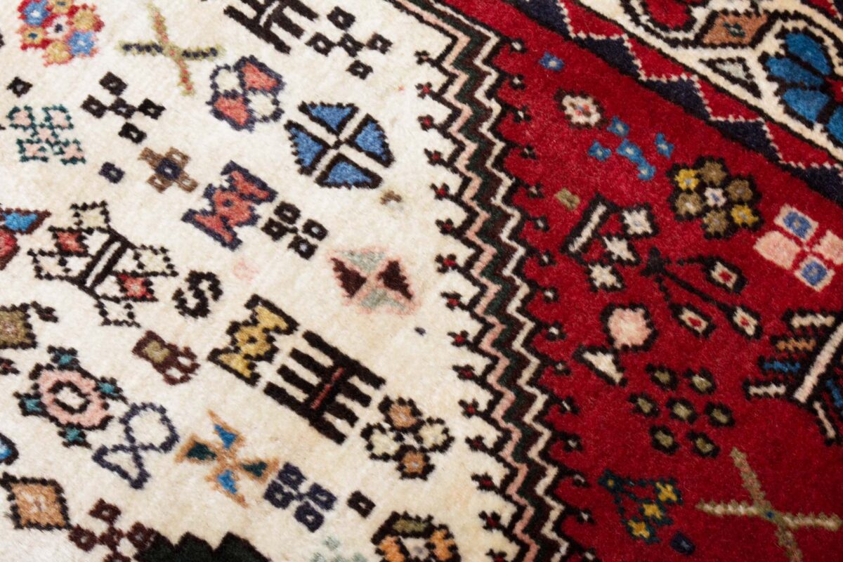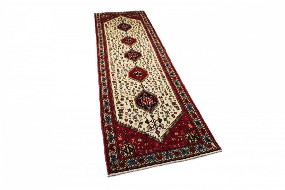 Der Abadeh-Perserteppich gehört zu den besonders strapazierfähigen Gebrauchsteppichen und zeichnet sich durch gute Qualität aus. Hergestellt wird er in der Oasenstadt Abadeh, die in der Fars-Provinz zwischen den beiden berühmten Teppichprovenienzen Shiraz und Isfahan liegt. Häufig findet sich beim Abadeh-Perserteppich das Heibathlou-Muster wieder, das von den Nomadenteppichen aus der Umgebung inspiriert ist. Selbst Laien können diesen einprägsamen Mustertyp leicht an den Rauten- oder Rosetten-Medaillons erkennen, die sowohl in der Mitte als auch an den Teppichecken eingeknüpft sind. Das ursprüngliche Design des Abadeh-Teppichs weist jedoch das Zil-i-Sultan-Muster auf. Dabei handelt es sich um ein spezielles Blumenvasen-Motiv mit zwei Vogelgestalten, das stets im Rapport gearbeitet wird und den Orientteppich als Allover-Muster ziert. Für den Flor des Abadeh-Teppichs wird Wolle verwendet, wobei die traditionellen Perserteppich-Farben rot und blau vorherrschend sind. Geknüpft wird der verschleißfähige Orientteppich im asymmetrischen Knoten auf Baumwollkette und kann mitunter eine Qualität von über 300.000 Knoten pro Quadratmeter erreichen.