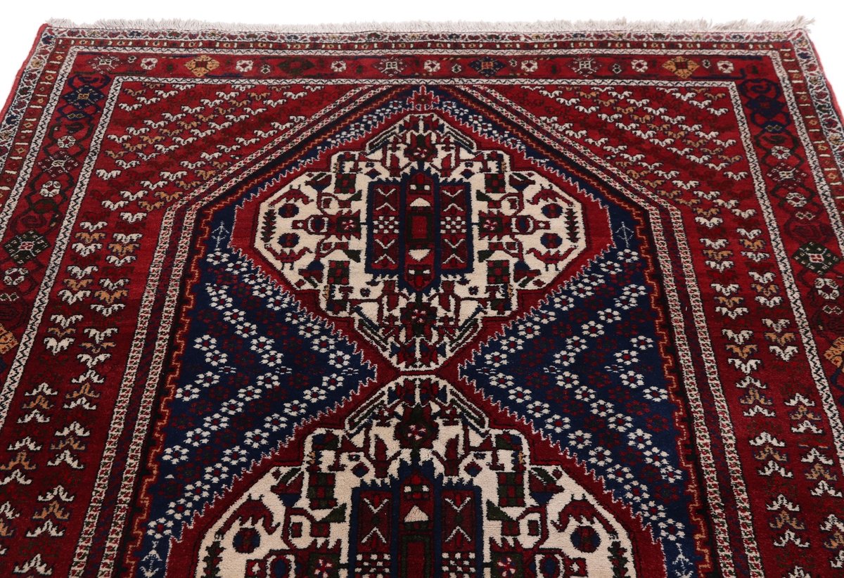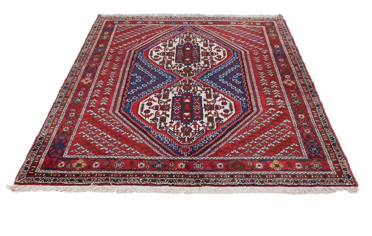 Einst waren die turkstämmigen Afsharen ein bedeutender Oghusen-Stamm und lebten während der Seldschuckenherrschaft vorwiegend in den nördlichen Gebieten des Nahen Ostens. Heute ist ein Großteil der mittlerweile sesshaft gewordenen Afshar-Nomaden im südöstlichen Iran angesiedelt, wo die Perserteppich-Produktion für sie zur wichtigen Einkommensquelle geworden ist. Ihre reichhaltige Geschichte hat wohl dazu beigetragen, dass die Afsharen hinsichtlich der Perserteppich-Knüpfkunst über ein breitgefächertes Musterrepertoire verfügen, das manche sogar für das umfangreichste des Orients halten. Dominierend sind beim Afshar-Orientteppich ausgewogene geometrische Muster, deren Grundflächen hauptsächlich in klassischem Rot und einem angenehmen Tiefblau gehalten sind. Häufig wird der Afshar-Perserteppich mit hohem Flor aus glänzender Wolle in Saronim- und Dozargrößen hergestellt. Dabei handelt es sich um kleine bis mittelgroße Brückenformate, die einen wertvollen Orientteppich noch besser zur Geltung bringen. Zudem ist beim Afshar-Orientteppich die Breite im Verhältnis zur Teppichlänge oft ziemlich weitläufig – ein sehr interessantes Format, das sich für originelle Wohnraumgestaltungen anbietet.
