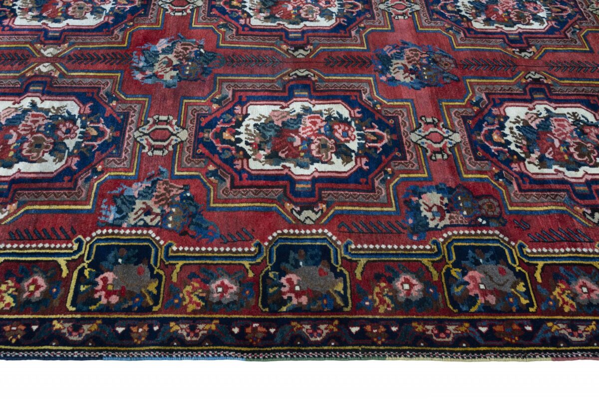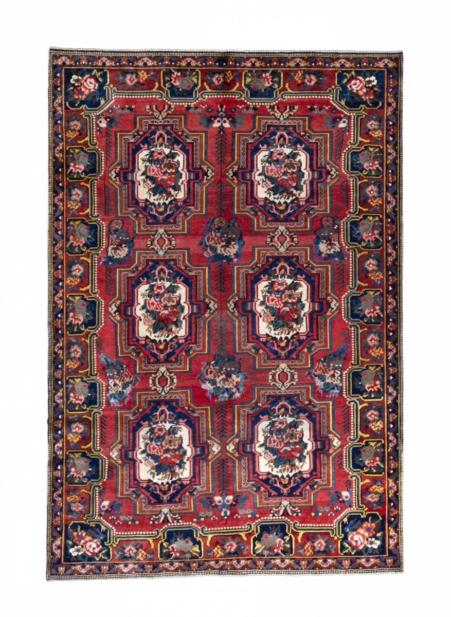 Der Bakhtiar-Perserteppich trägt den Namen seiner Schöpfer, der im westiranischen Zagrosgebirge lebenden Bachtiari-Nomaden. Ihre umfangreiche Teppichproduktion wird heute hauptsächlich in der Provinzhauptstadt Schahr-e-Kurd betrieben. Doch auch im Umland wird der Bakhtiar-Orientteppich von kunstfertigen Dorfbewohnern und Nomaden angefertigt, wobei die Wolle für den Teppichflor nicht selten von den hauseigenen Schafherden stammt. Wegen seiner soliden, handwerklichen Knüpfung und der dadurch bedingten Strapazierfähigkeit gilt der Bakhtiar-Perserteppich als einer der bevorzugten Nomanden- und Dorfteppiche. Online kaufen lassen sich verschiedene Modelle, jedoch haben traditionelle Bakhtiar-Perserteppiche bezüglich des Designs eines gemeinsam: ihr vorwiegend florales Muster, das an die traumhaften persischen Gärten erinnern soll. Häufig findet sich daher bei diesem Orientteppich eine stilisierte Blütenpracht, wobei die Motivelemente charakteristischerweise mit natürlichen Brauntönen konturiert werden. Bei uns könnten Sie auch Bakhtiar-Perserteppiche mit einer herausragenden Knüpfdichte von 350.000 Knoten/m² online kaufen. Dabei sei darauf hingewiesen, dass nur die qualitativ hochwertigsten Bakhtiarteppiche von Medaillons und harmonisierenden Eckzwickeln geziert werden.