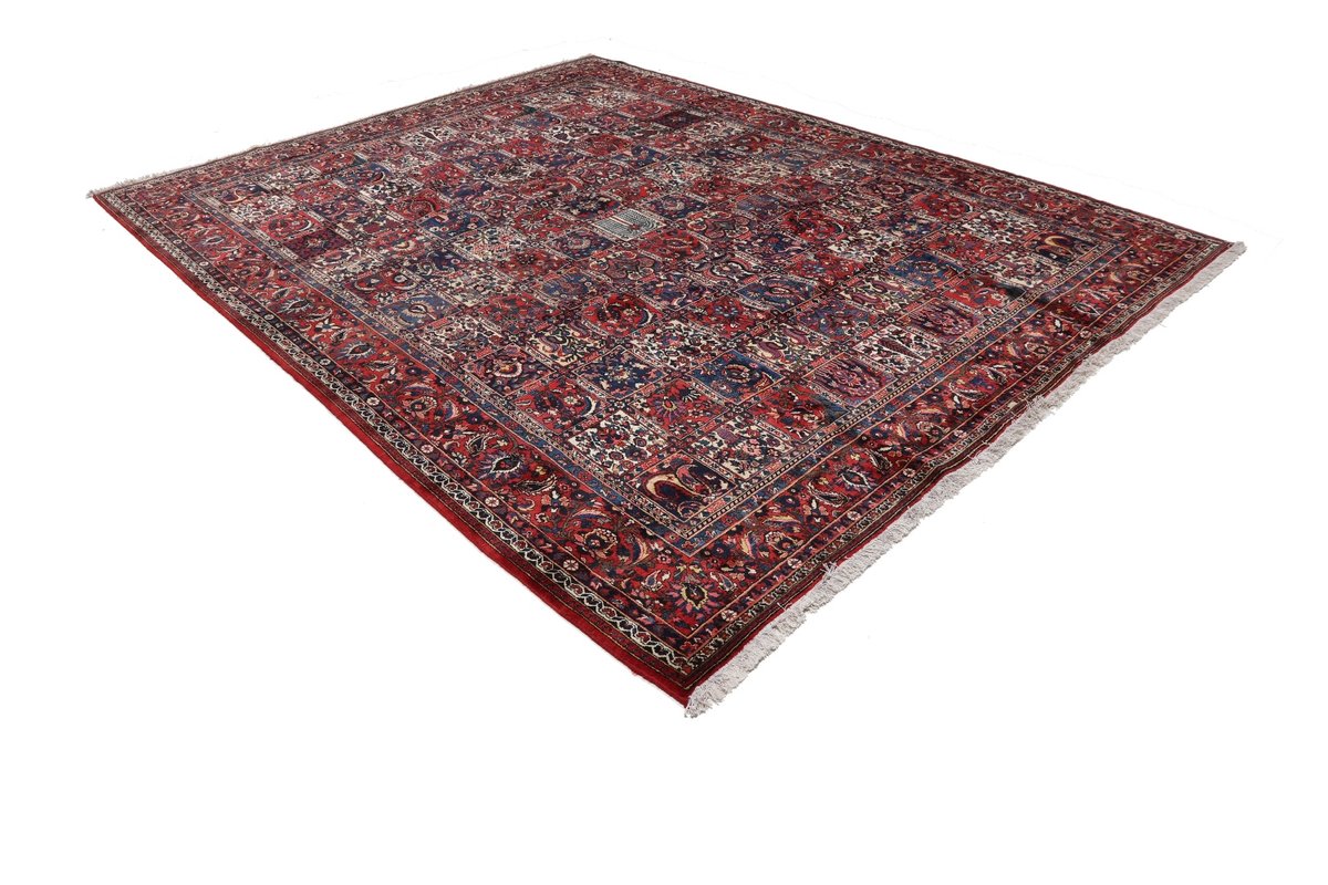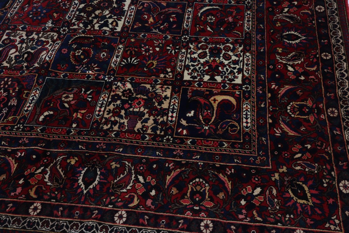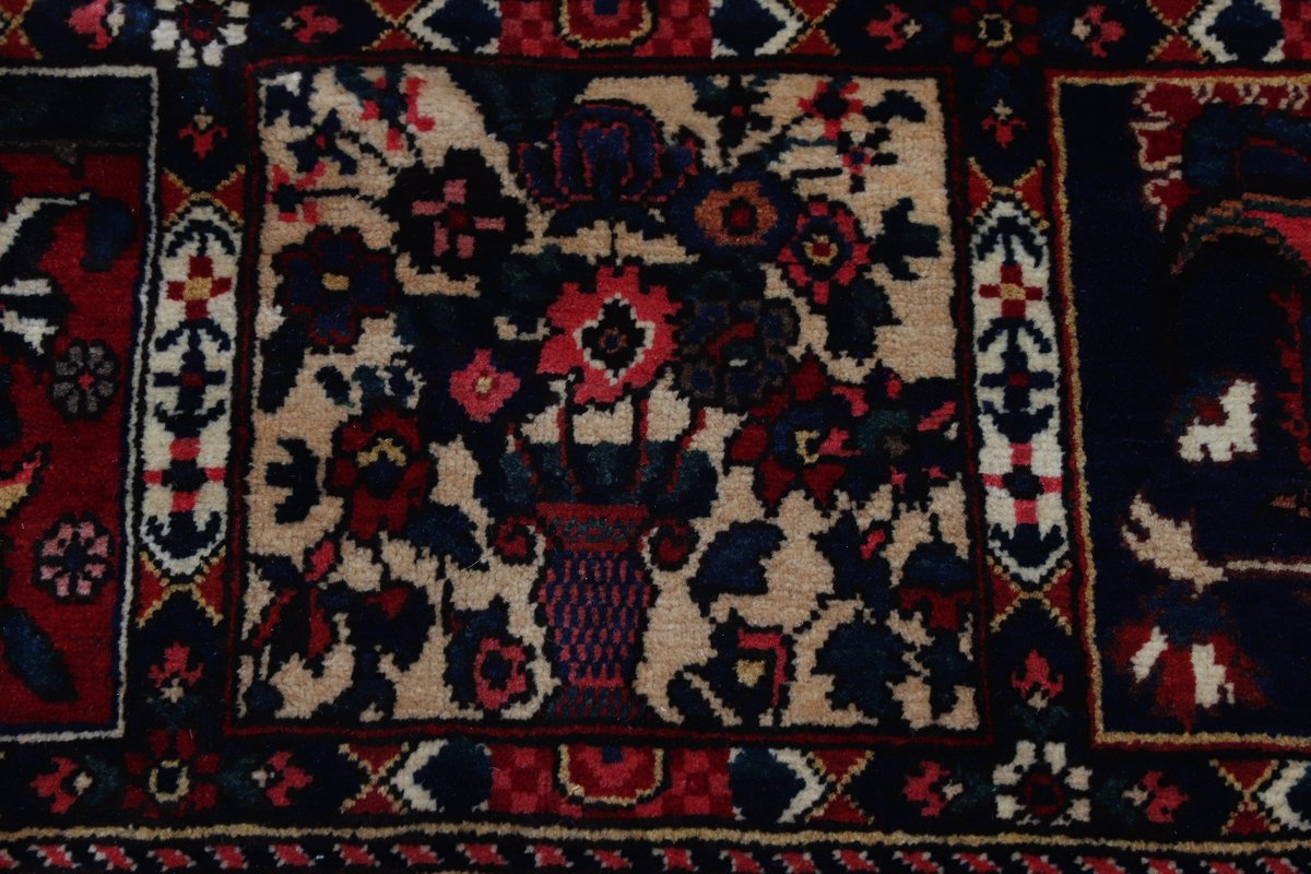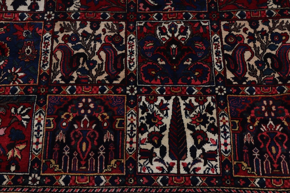 Der Bakhtiar-Perserteppich trägt den Namen seiner Schöpfer, der im westiranischen Zagrosgebirge lebenden Bachtiari-Nomaden. Ihre umfangreiche Teppichproduktion wird heute hauptsächlich in der Provinzhauptstadt Schahr-e-Kurd betrieben. Doch auch im Umland wird der Bakhtiar-Orientteppich von kunstfertigen Dorfbewohnern und Nomaden angefertigt, wobei die Wolle für den Teppichflor nicht selten von den hauseigenen Schafherden stammt. Wegen seiner soliden, handwerklichen Knüpfung und der dadurch bedingten Strapazierfähigkeit gilt der Bakhtiar-Perserteppich als einer der bevorzugten Nomanden- und Dorfteppiche. Online kaufen lassen sich verschiedene Modelle, jedoch haben traditionelle Bakhtiar-Perserteppiche bezüglich des Designs eines gemeinsam: ihr vorwiegend florales Muster, das an die traumhaften persischen Gärten erinnern soll. Häufig findet sich daher bei diesem Orientteppich eine stilisierte Blütenpracht, wobei die Motivelemente charakteristischerweise mit natürlichen Brauntönen konturiert werden. Bei uns könnten Sie auch Bakhtiar-Perserteppiche mit einer herausragenden Knüpfdichte von 350.000 Knoten/m² online kaufen. Dabei sei darauf hingewiesen, dass nur die qualitativ hochwertigsten Bakhtiarteppiche von Medaillons und harmonisierenden Eckzwickeln geziert werden.