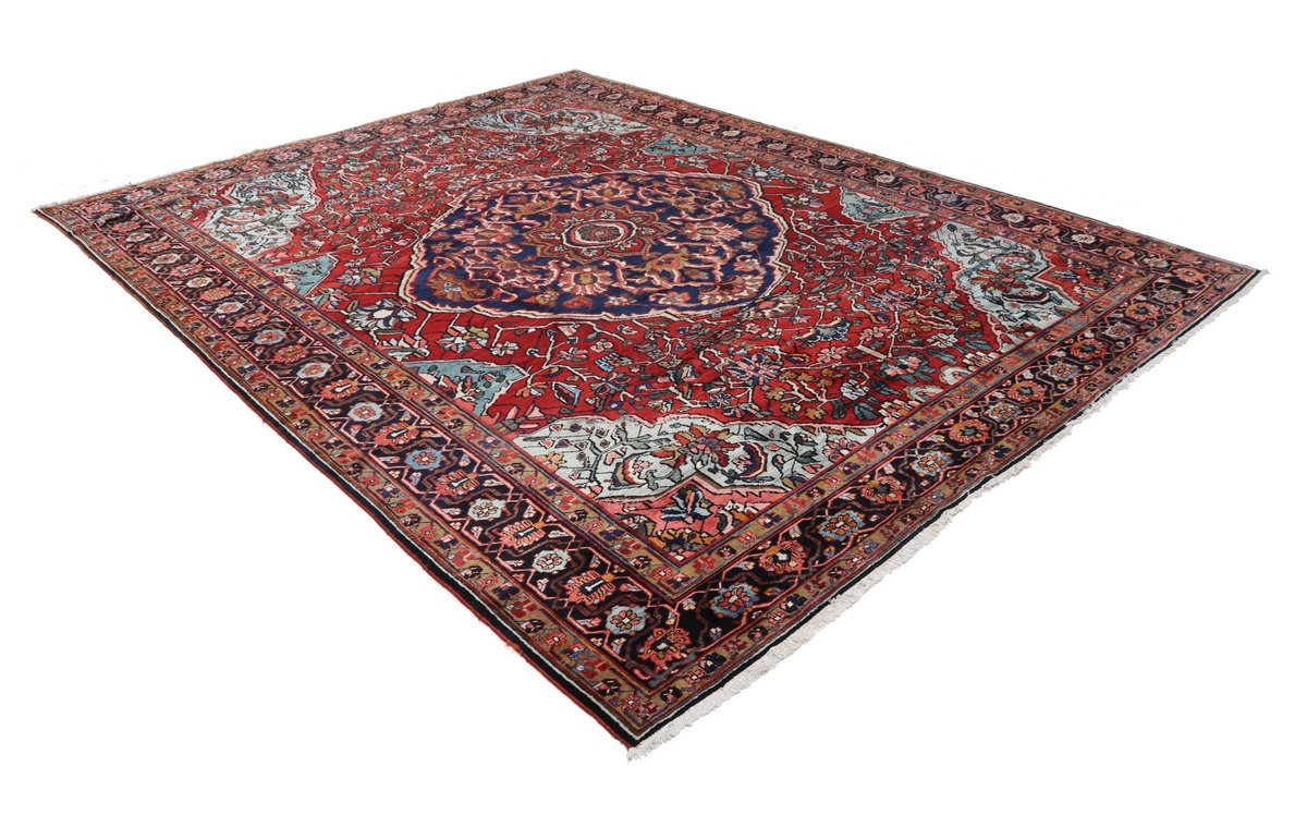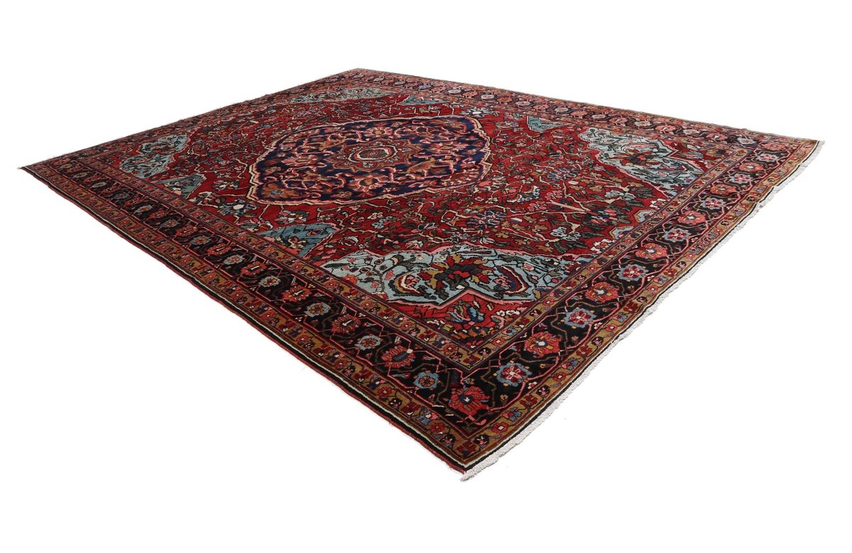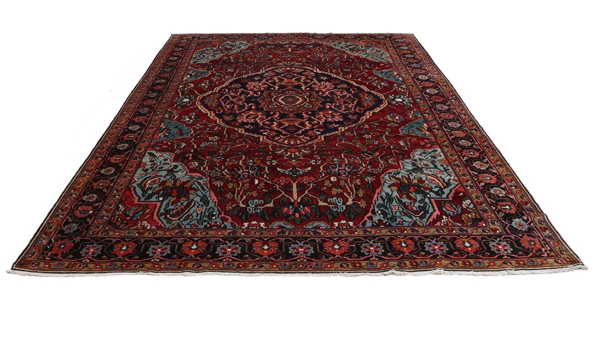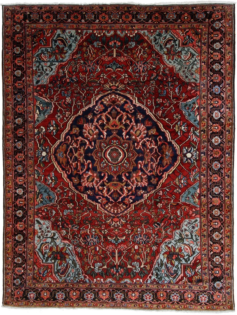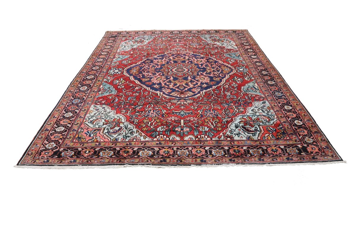 Der Bakhtiar-Perserteppich trägt den Namen seiner Schöpfer, der im westiranischen Zagrosgebirge lebenden Bachtiari-Nomaden. Ihre umfangreiche Teppichproduktion wird heute hauptsächlich in der Provinzhauptstadt Schahr-e-Kurd betrieben. Doch auch im Umland wird der Bakhtiar-Orientteppich von kunstfertigen Dorfbewohnern und Nomaden angefertigt, wobei die Wolle für den Teppichflor nicht selten von den hauseigenen Schafherden stammt. Wegen seiner soliden, handwerklichen Knüpfung und der dadurch bedingten Strapazierfähigkeit gilt der Bakhtiar-Perserteppich als einer der bevorzugten Nomanden- und Dorfteppiche. Online kaufen lassen sich verschiedene Modelle, jedoch haben traditionelle Bakhtiar-Perserteppiche bezüglich des Designs eines gemeinsam: ihr vorwiegend florales Muster, das an die traumhaften persischen Gärten erinnern soll. Häufig findet sich daher bei diesem Orientteppich eine stilisierte Blütenpracht, wobei die Motivelemente charakteristischerweise mit natürlichen Brauntönen konturiert werden. Bei uns könnten Sie auch Bakhtiar-Perserteppiche mit einer herausragenden Knüpfdichte von 350.000 Knoten/m² online kaufen. Dabei sei darauf hingewiesen, dass nur die qualitativ hochwertigsten Bakhtiarteppiche von Medaillons und harmonisierenden Eckzwickeln geziert werden.