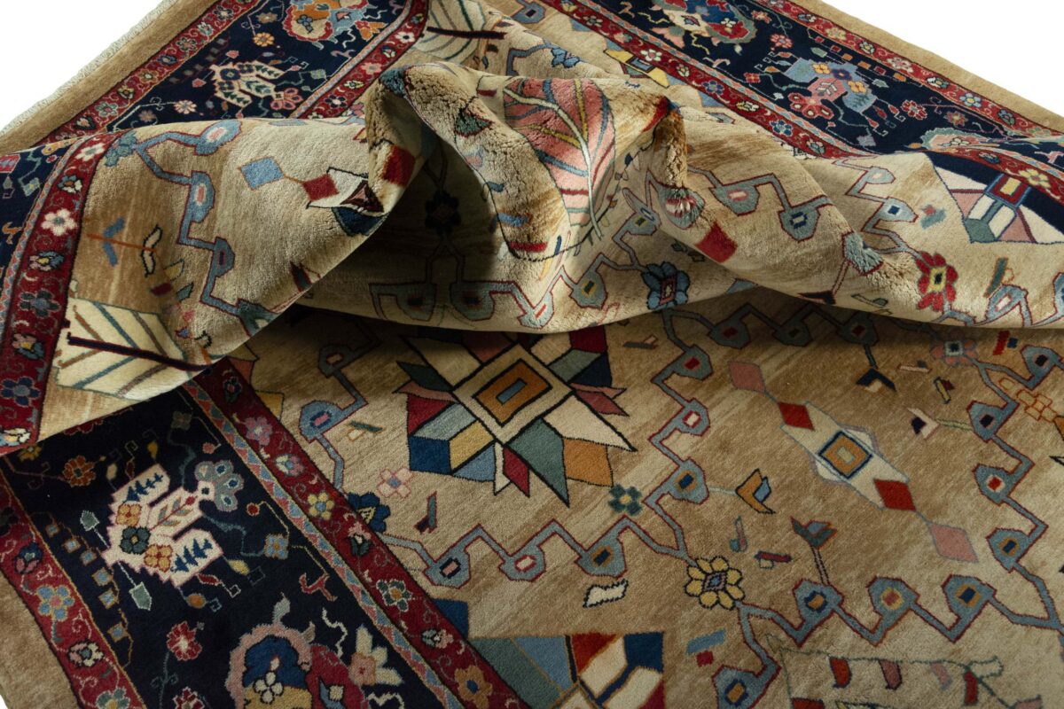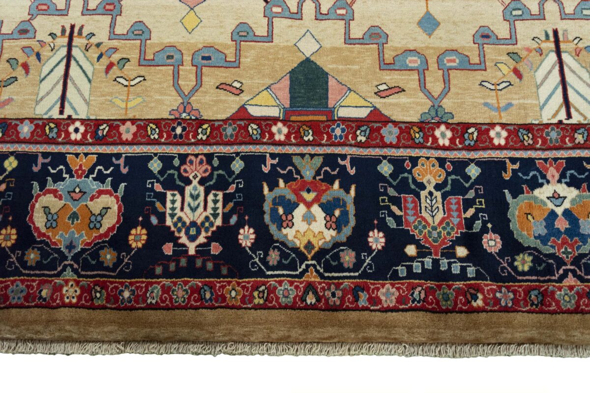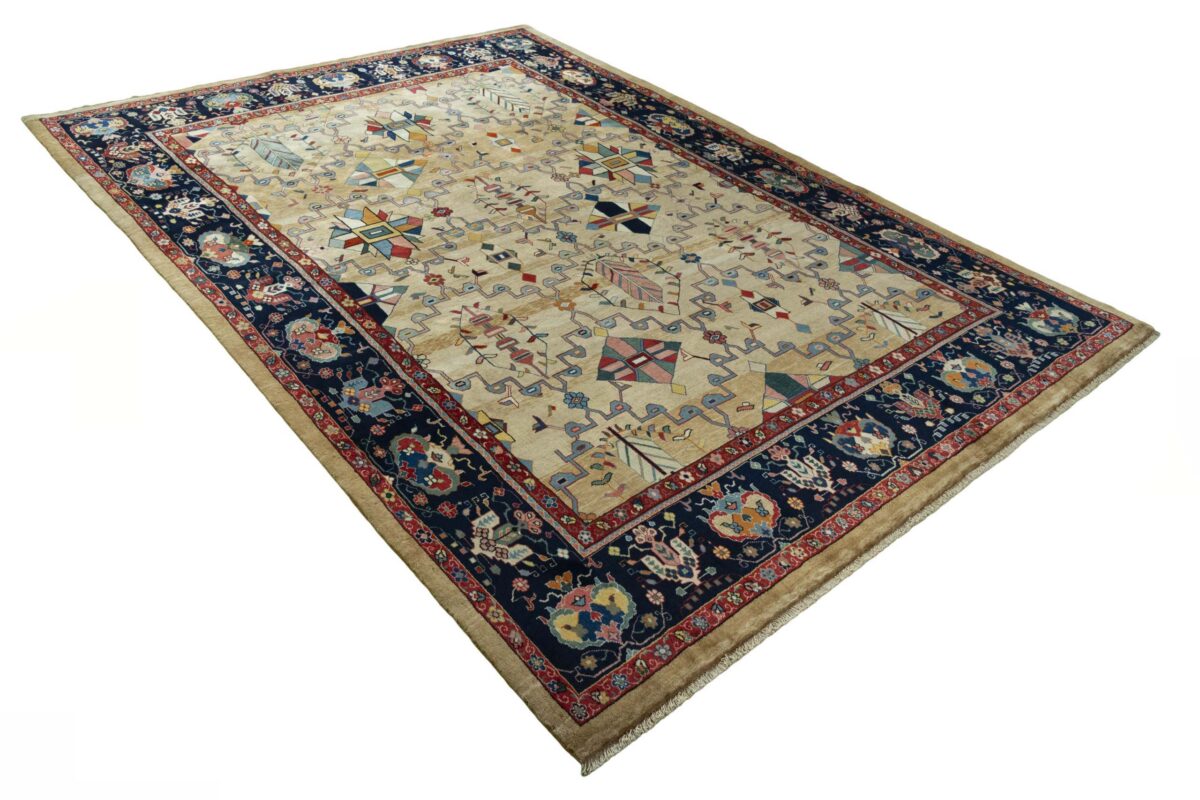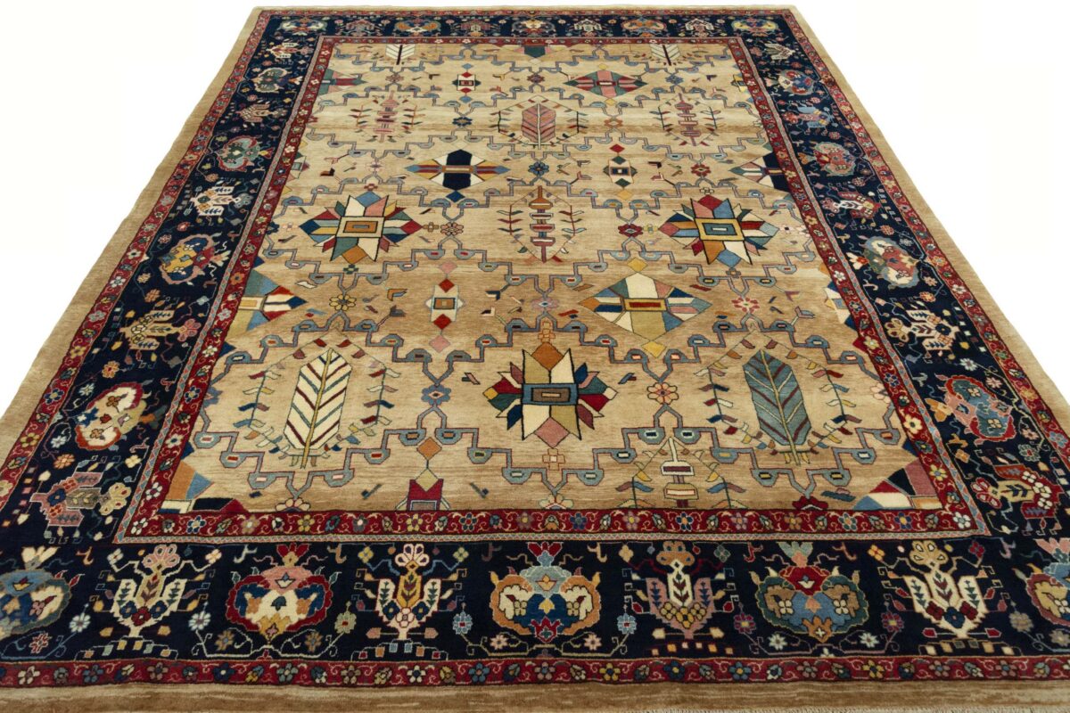 Der Bakhtiar-Perserteppich trägt den Namen seiner Schöpfer, der im westiranischen Zagrosgebirge lebenden Bachtiari-Nomaden. Ihre umfangreiche Teppichproduktion wird heute hauptsächlich in der Provinzhauptstadt Schahr-e-Kurd betrieben. Doch auch im Umland wird der Bakhtiar-Orientteppich von kunstfertigen Dorfbewohnern und Nomaden angefertigt, wobei die Wolle für den Teppichflor nicht selten von den hauseigenen Schafherden stammt. Wegen seiner soliden, handwerklichen Knüpfung und der dadurch bedingten Strapazierfähigkeit gilt der Bakhtiar-Perserteppich als einer der bevorzugten Nomanden- und Dorfteppiche. Online kaufen lassen sich verschiedene Modelle, jedoch haben traditionelle Bakhtiar-Perserteppiche bezüglich des Designs eines gemeinsam: ihr vorwiegend florales Muster, das an die traumhaften persischen Gärten erinnern soll. Häufig findet sich daher bei diesem Orientteppich eine stilisierte Blütenpracht, wobei die Motivelemente charakteristischerweise mit natürlichen Brauntönen konturiert werden. Bei uns könnten Sie auch Bakhtiar-Perserteppiche mit einer herausragenden Knüpfdichte von 350.000 Knoten/m² online kaufen. Dabei sei darauf hingewiesen, dass nur die qualitativ hochwertigsten Bakhtiarteppiche von Medaillons und harmonisierenden Eckzwickeln geziert werden.
