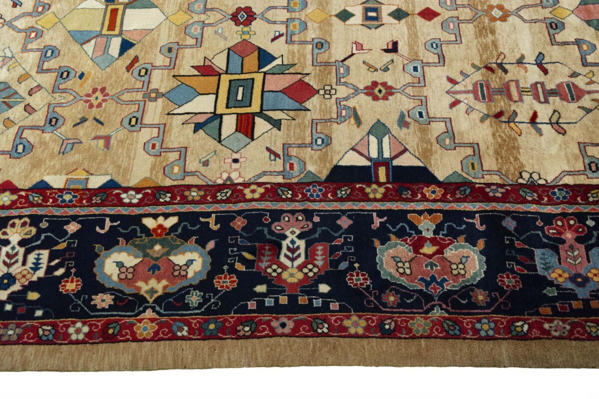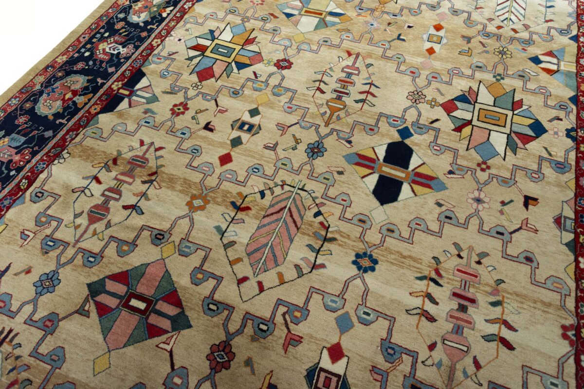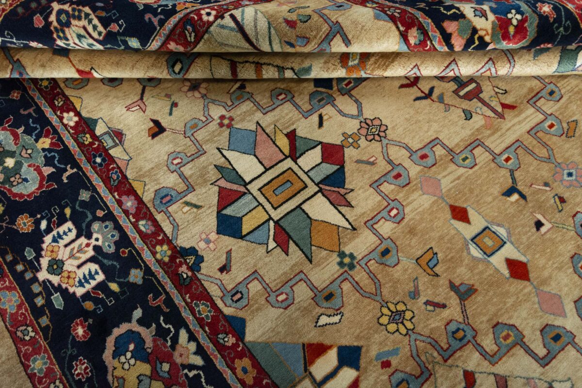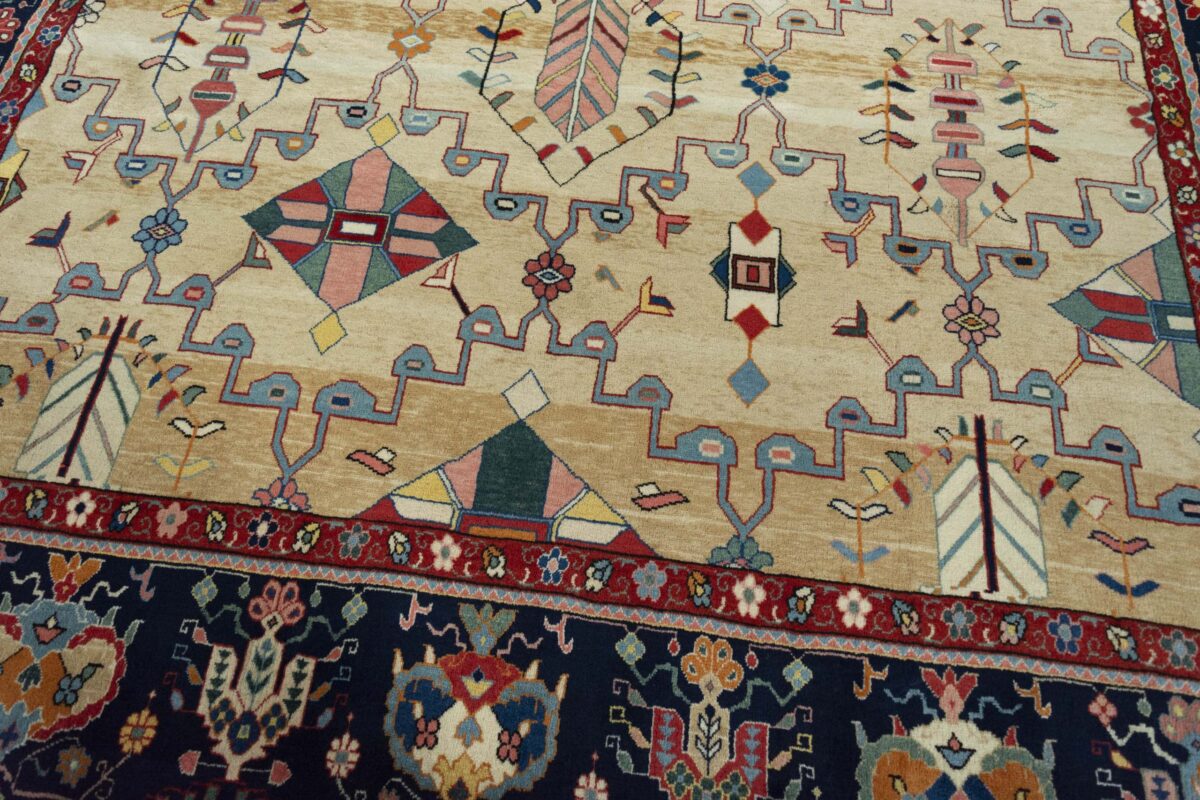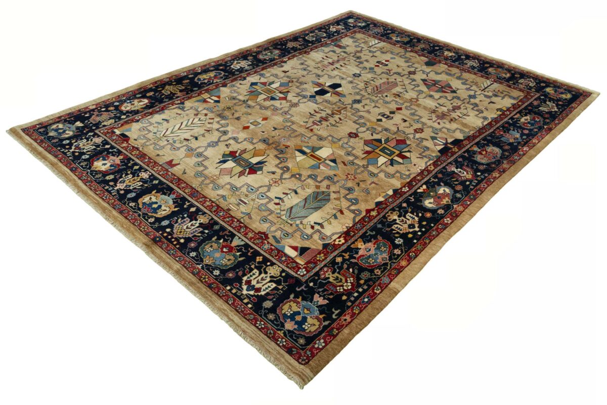 Der Bakhtiar-Perserteppich trägt den Namen seiner Schöpfer, der im westiranischen Zagrosgebirge lebenden Bachtiari-Nomaden. Ihre umfangreiche Teppichproduktion wird heute hauptsächlich in der Provinzhauptstadt Schahr-e-Kurd betrieben. Doch auch im Umland wird der Bakhtiar-Orientteppich von kunstfertigen Dorfbewohnern und Nomaden angefertigt, wobei die Wolle für den Teppichflor nicht selten von den hauseigenen Schafherden stammt. Wegen seiner soliden, handwerklichen Knüpfung und der dadurch bedingten Strapazierfähigkeit gilt der Bakhtiar-Perserteppich als einer der bevorzugten Nomanden- und Dorfteppiche. Online kaufen lassen sich verschiedene Modelle, jedoch haben traditionelle Bakhtiar-Perserteppiche bezüglich des Designs eines gemeinsam: ihr vorwiegend florales Muster, das an die traumhaften persischen Gärten erinnern soll. Häufig findet sich daher bei diesem Orientteppich eine stilisierte Blütenpracht, wobei die Motivelemente charakteristischerweise mit natürlichen Brauntönen konturiert werden. Bei uns könnten Sie auch Bakhtiar-Perserteppiche mit einer herausragenden Knüpfdichte von 350.000 Knoten/m² online kaufen. Dabei sei darauf hingewiesen, dass nur die qualitativ hochwertigsten Bakhtiarteppiche von Medaillons und harmonisierenden Eckzwickeln geziert werden.