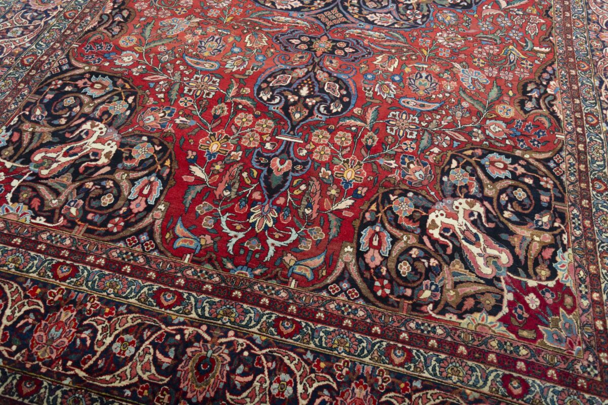 Der Bakhtiar-Perserteppich trägt den Namen seiner Schöpfer, der im westiranischen Zagrosgebirge lebenden Bachtiari-Nomaden. Ihre umfangreiche Teppichproduktion wird heute hauptsächlich in der Provinzhauptstadt Schahr-e-Kurd betrieben. Doch auch im Umland wird der Bakhtiar-Orientteppich von kunstfertigen Dorfbewohnern und Nomaden angefertigt, wobei die Wolle für den Teppichflor nicht selten von den hauseigenen Schafherden stammt. Wegen seiner soliden, handwerklichen Knüpfung und der dadurch bedingten Strapazierfähigkeit gilt der Bakhtiar-Perserteppich als einer der bevorzugten Nomanden- und Dorfteppiche. Online kaufen lassen sich verschiedene Modelle, jedoch haben traditionelle Bakhtiar-Perserteppiche bezüglich des Designs eines gemeinsam: ihr vorwiegend florales Muster, das an die traumhaften persischen Gärten erinnern soll. Häufig findet sich daher bei diesem Orientteppich eine stilisierte Blütenpracht, wobei die Motivelemente charakteristischerweise mit natürlichen Brauntönen konturiert werden. Bei uns könnten Sie auch Bakhtiar-Perserteppiche mit einer herausragenden Knüpfdichte von 350.000 Knoten/m² online kaufen. Dabei sei darauf hingewiesen, dass nur die qualitativ hochwertigsten Bakhtiarteppiche von Medaillons und harmonisierenden Eckzwickeln geziert werden.