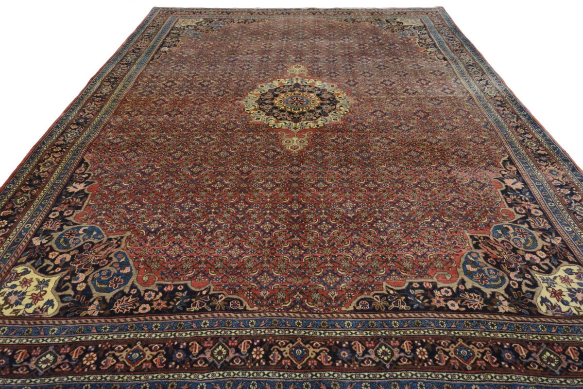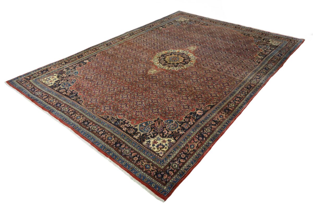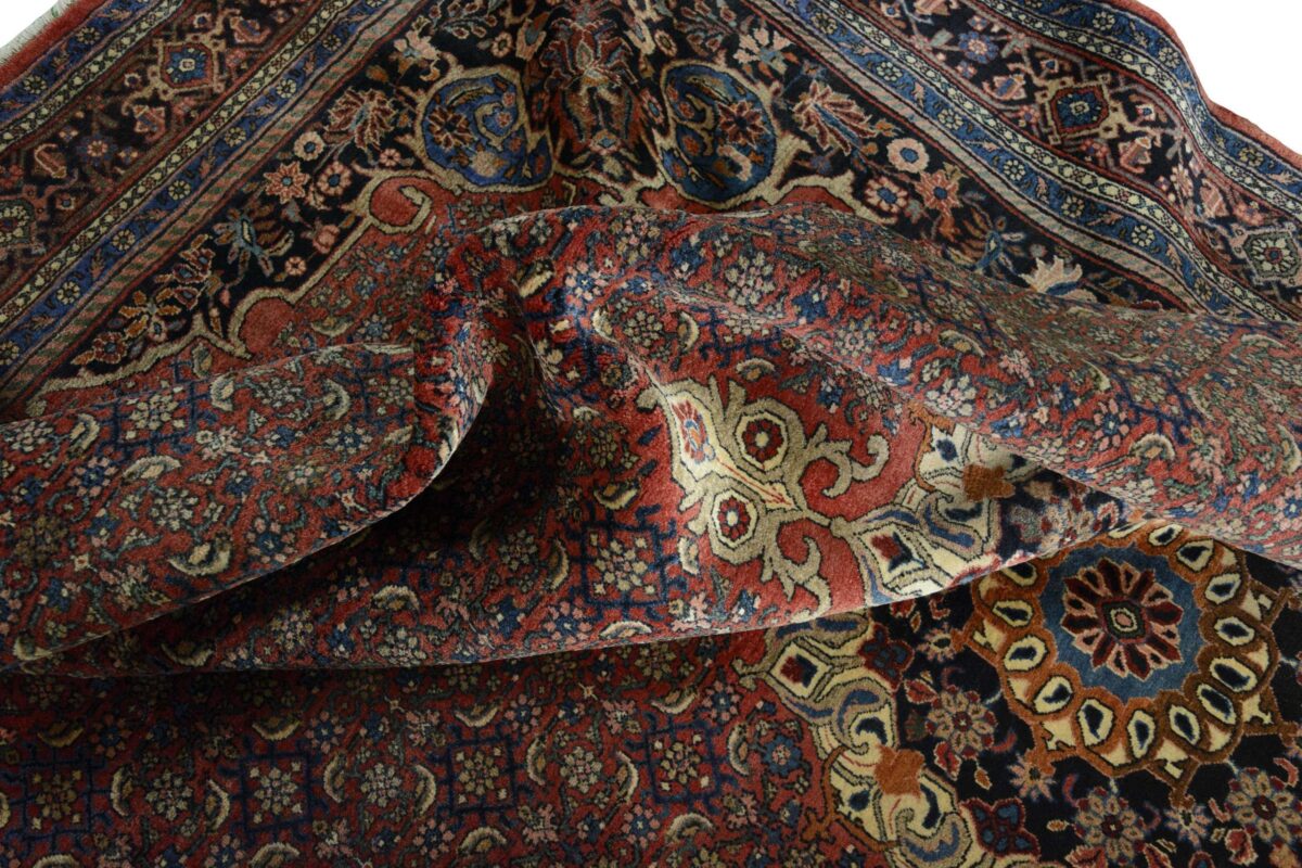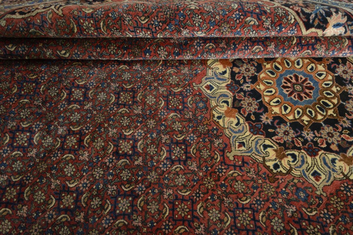 In der kurdischen Teppichprovenienz Bidjar, im Nordwesten des Iran, wird eine besondere Knüpfkunst gepflegt, die dem Bidjar-Perserteppich international einen guten Ruf als äußerst robuster Orientteppichverschafft hat. Im Persischen wird er auch „Eisenteppich“ genannt, da seine Baumwoll-Schussfäden angefeuchtet und durch einen Eisenkamm fest mit den Reihen aus türkischen Knoten zusammengedrückt werden. Somit entsteht ein sehr dichter Flor, der kaum Schmutzpartikel durchlässt und den Bidjar-Perserteppich zur idealen Ausstattung für stark beanspruchte Bodenflächen, beispielsweise in öffentlichen Räumen oder im Essbereich, macht.