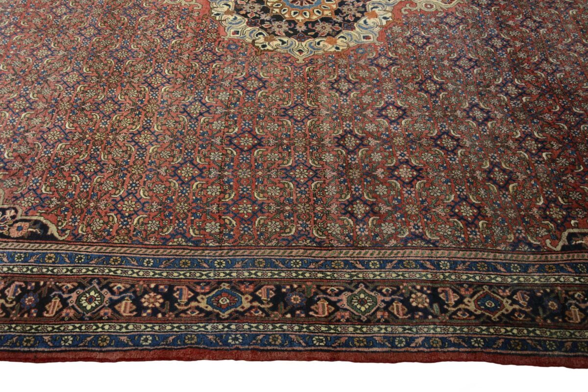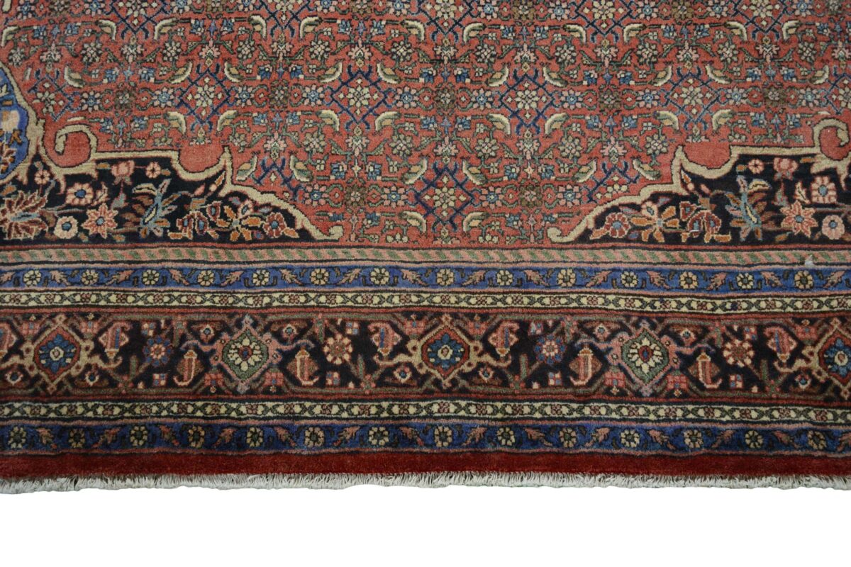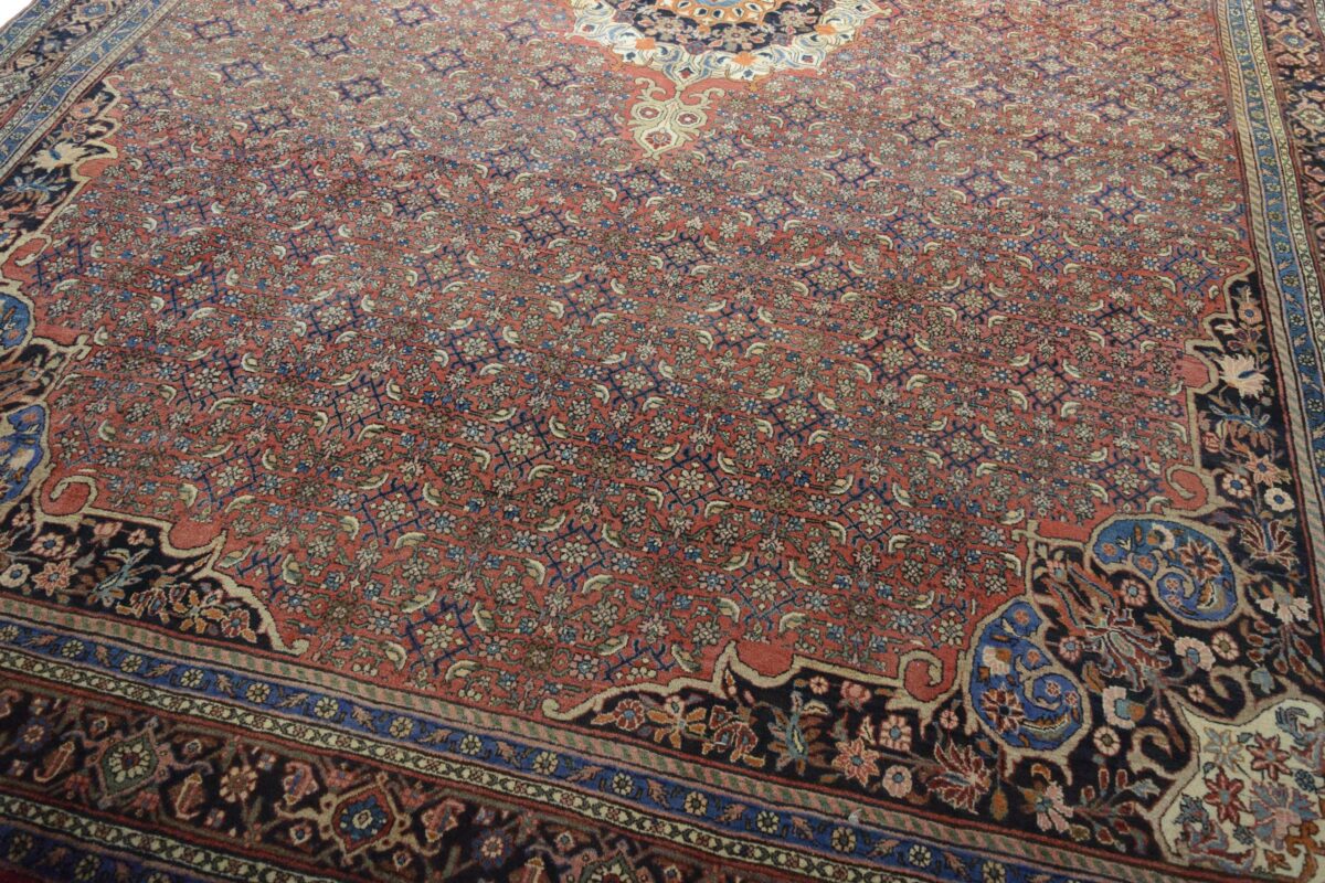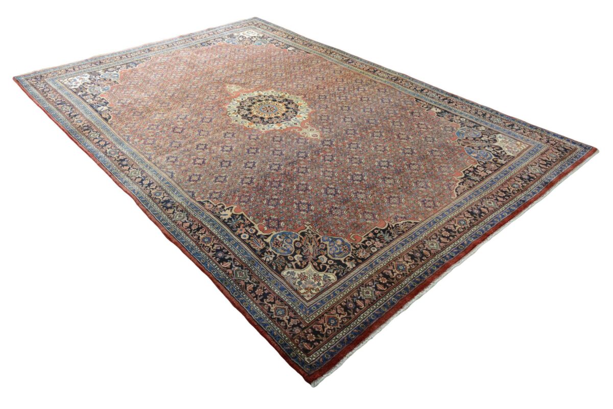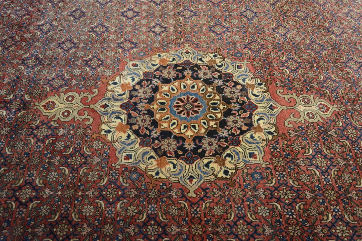 In der kurdischen Teppichprovenienz Bidjar, im Nordwesten des Iran, wird eine besondere Knüpfkunst gepflegt, die dem Bidjar-Perserteppich international einen guten Ruf als äußerst robuster Orientteppichverschafft hat. Im Persischen wird er auch „Eisenteppich“ genannt, da seine Baumwoll-Schussfäden angefeuchtet und durch einen Eisenkamm fest mit den Reihen aus türkischen Knoten zusammengedrückt werden. Somit entsteht ein sehr dichter Flor, der kaum Schmutzpartikel durchlässt und den Bidjar-Perserteppich zur idealen Ausstattung für stark beanspruchte Bodenflächen, beispielsweise in öffentlichen Räumen oder im Essbereich, macht.