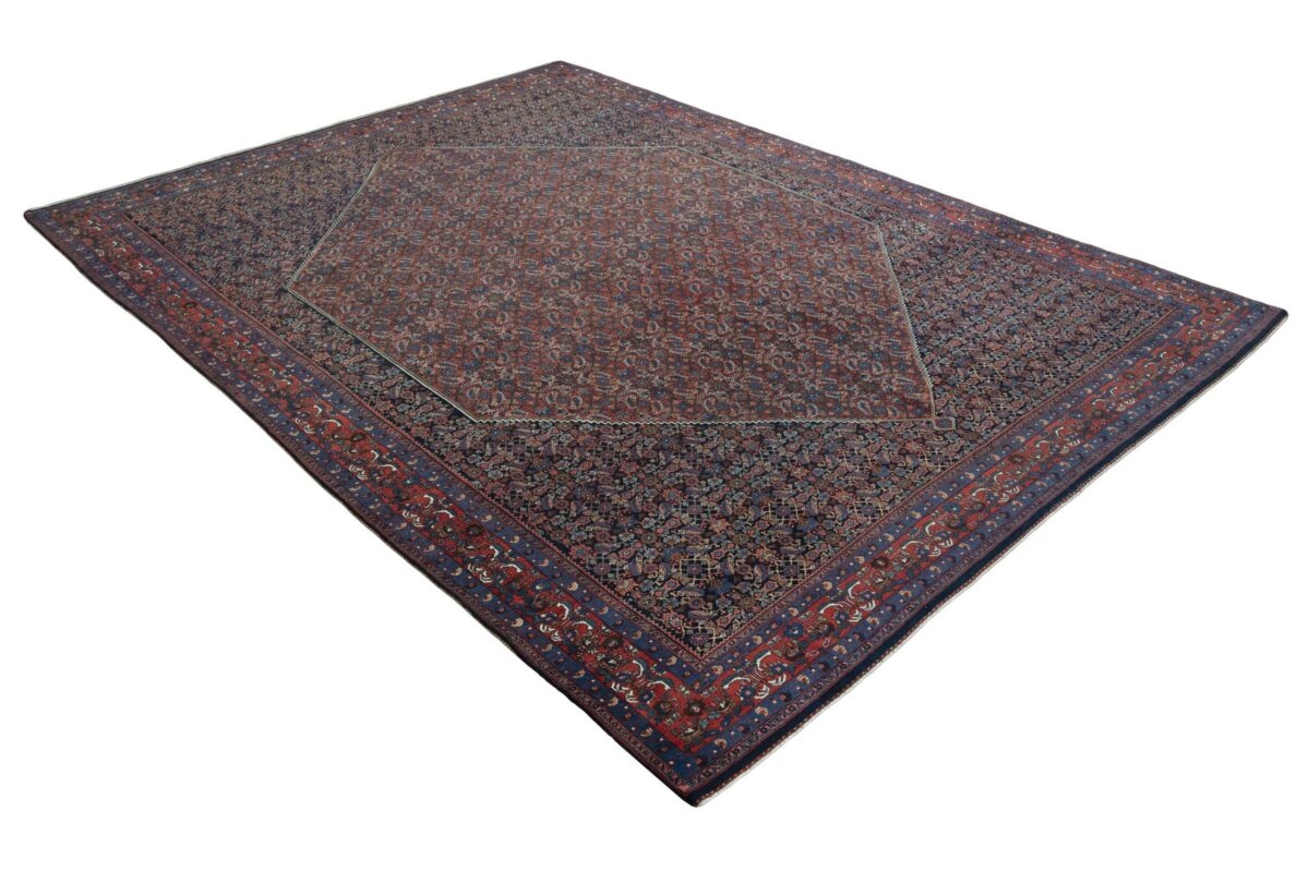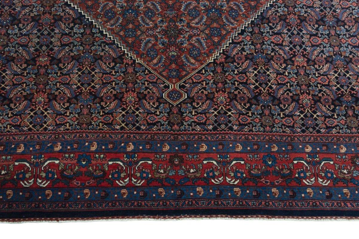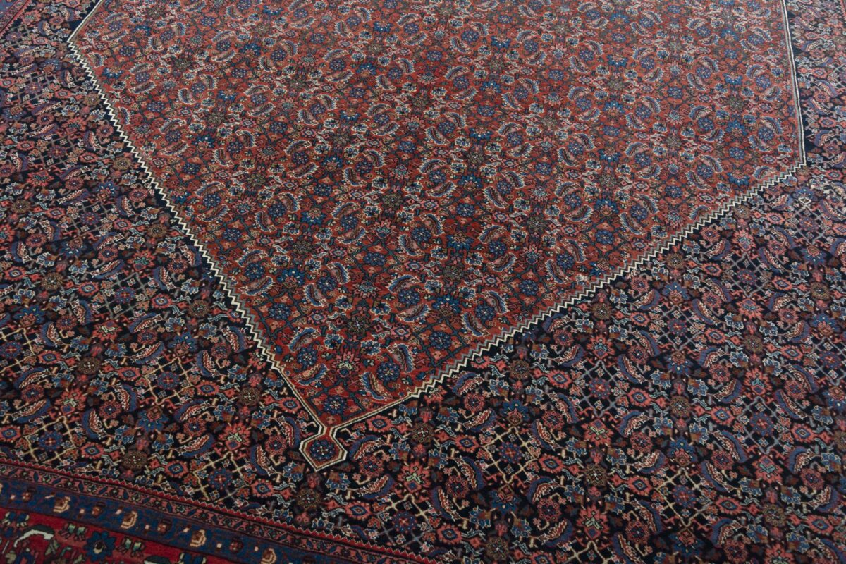In der kurdischen Teppichprovenienz Bidjar, im Nordwesten des Iran, wird eine besondere Knüpfkunst gepflegt, die dem Bidjar-Perserteppich international einen guten Ruf als äußerst robuster Orientteppichverschafft hat. Im Persischen wird er auch „Eisenteppich“ genannt, da seine Baumwoll-Schussfäden angefeuchtet und durch einen Eisenkamm fest mit den Reihen aus türkischen Knoten zusammengedrückt werden. Somit entsteht ein sehr dichter Flor, der kaum Schmutzpartikel durchlässt und den Bidjar-Perserteppich zur idealen Ausstattung für stark beanspruchte Bodenflächen, beispielsweise in öffentlichen Räumen oder im Essbereich, macht.