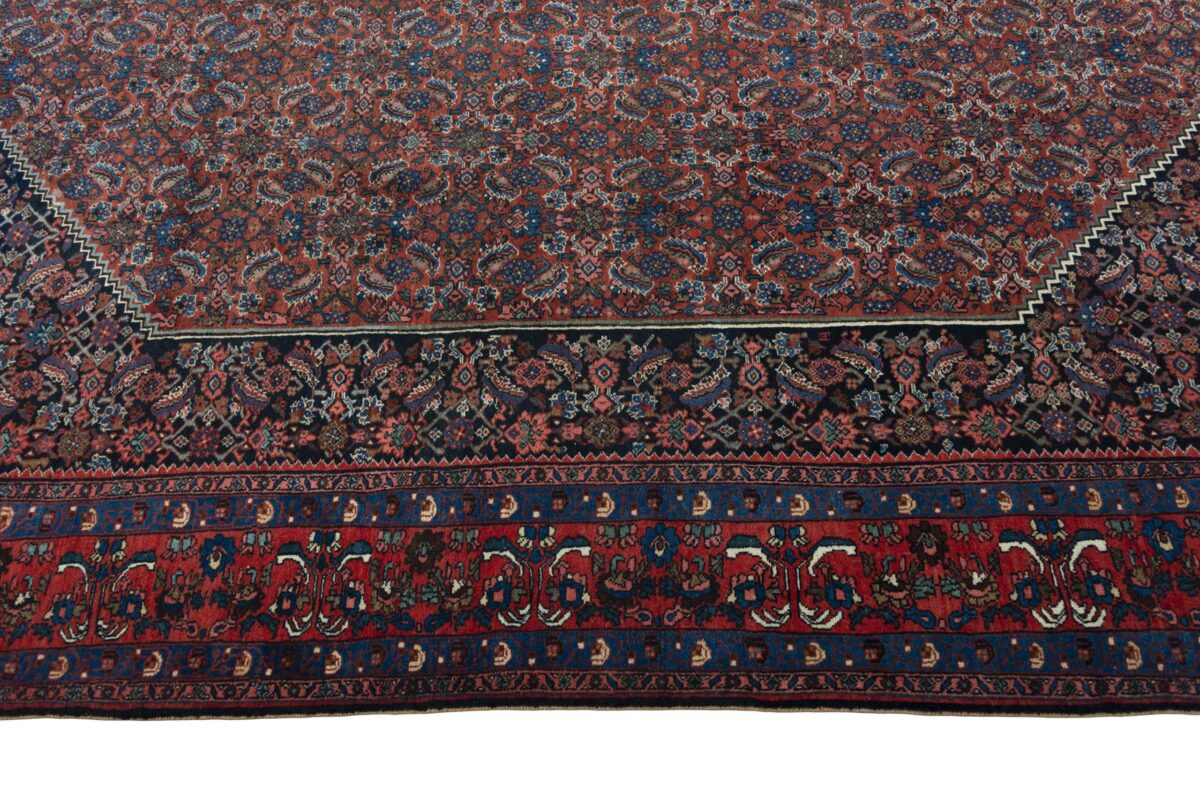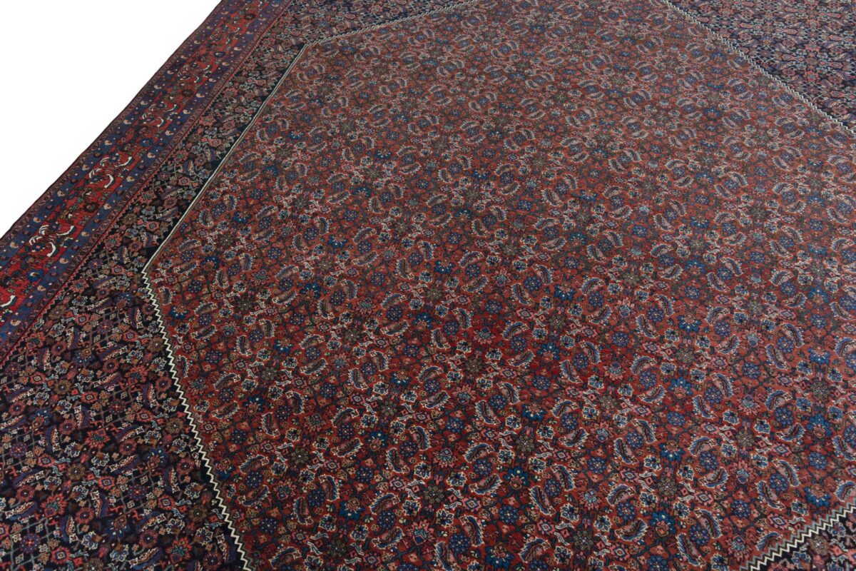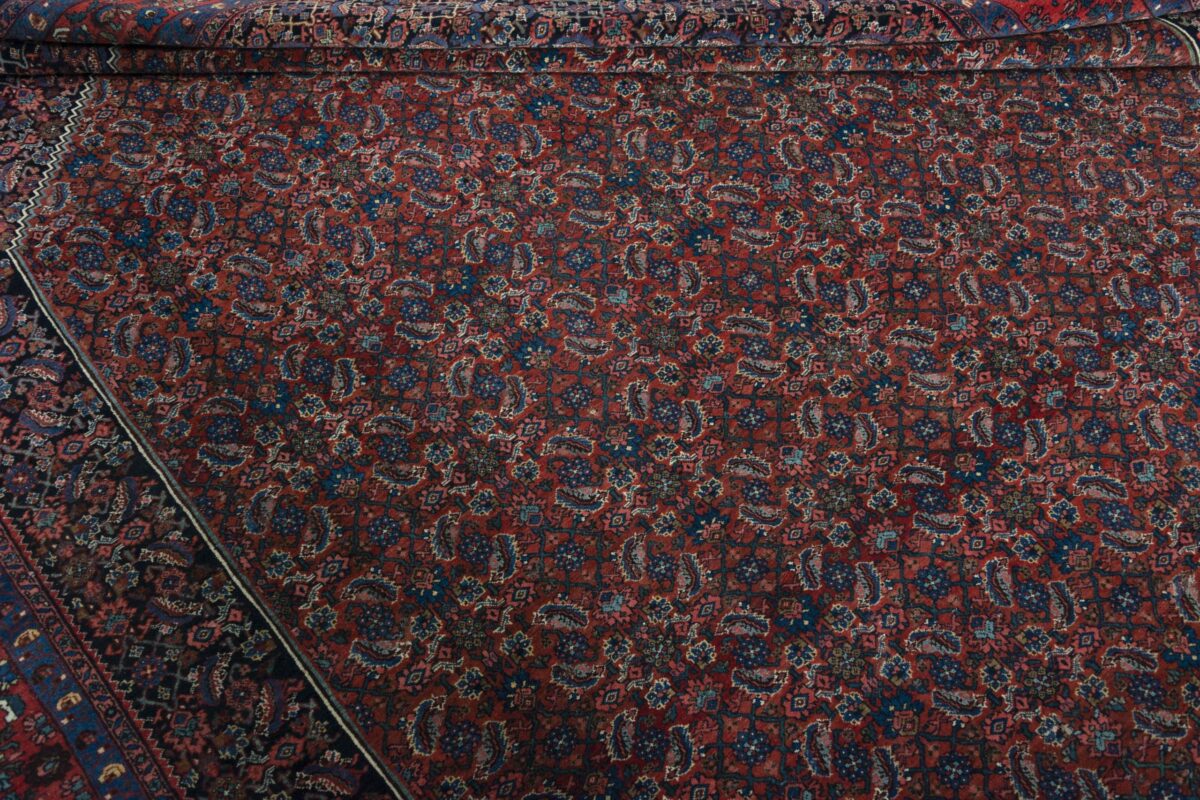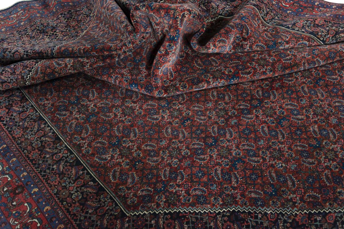 In der kurdischen Teppichprovenienz Bidjar, im Nordwesten des Iran, wird eine besondere Knüpfkunst gepflegt, die dem Bidjar-Perserteppich international einen guten Ruf als äußerst robuster Orientteppichverschafft hat. Im Persischen wird er auch „Eisenteppich“ genannt, da seine Baumwoll-Schussfäden angefeuchtet und durch einen Eisenkamm fest mit den Reihen aus türkischen Knoten zusammengedrückt werden. Somit entsteht ein sehr dichter Flor, der kaum Schmutzpartikel durchlässt und den Bidjar-Perserteppich zur idealen Ausstattung für stark beanspruchte Bodenflächen, beispielsweise in öffentlichen Räumen oder im Essbereich, macht.