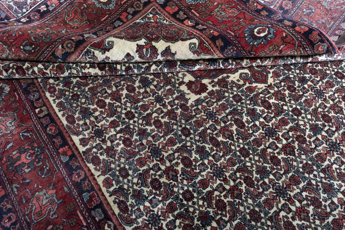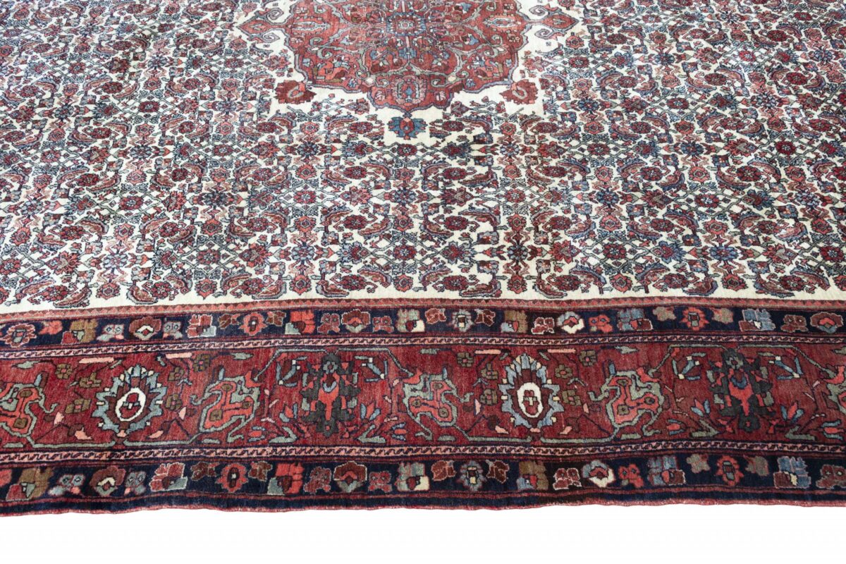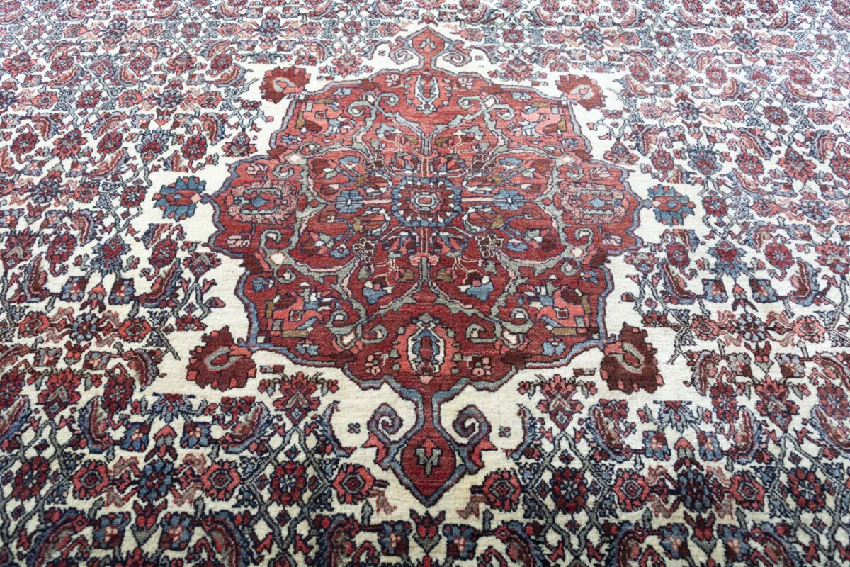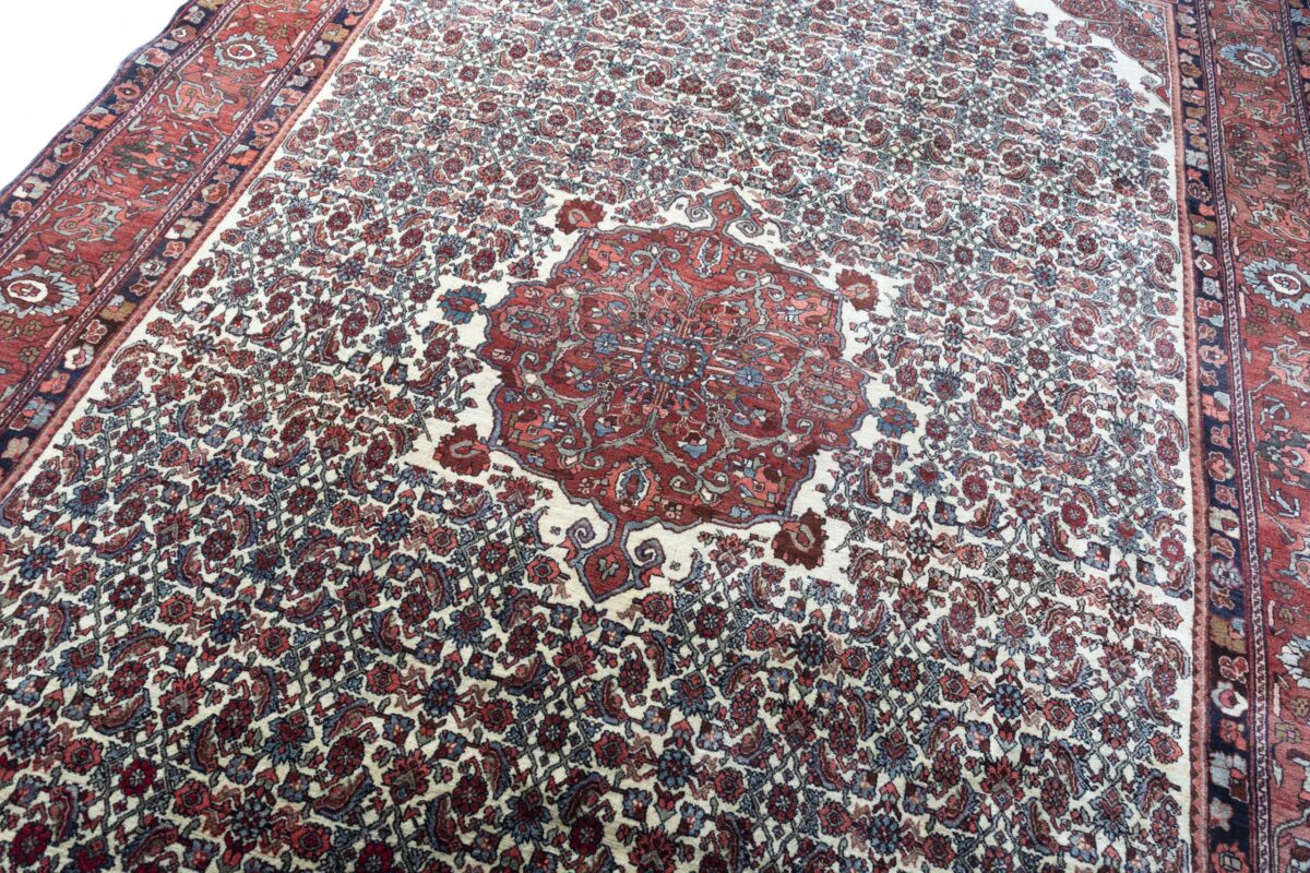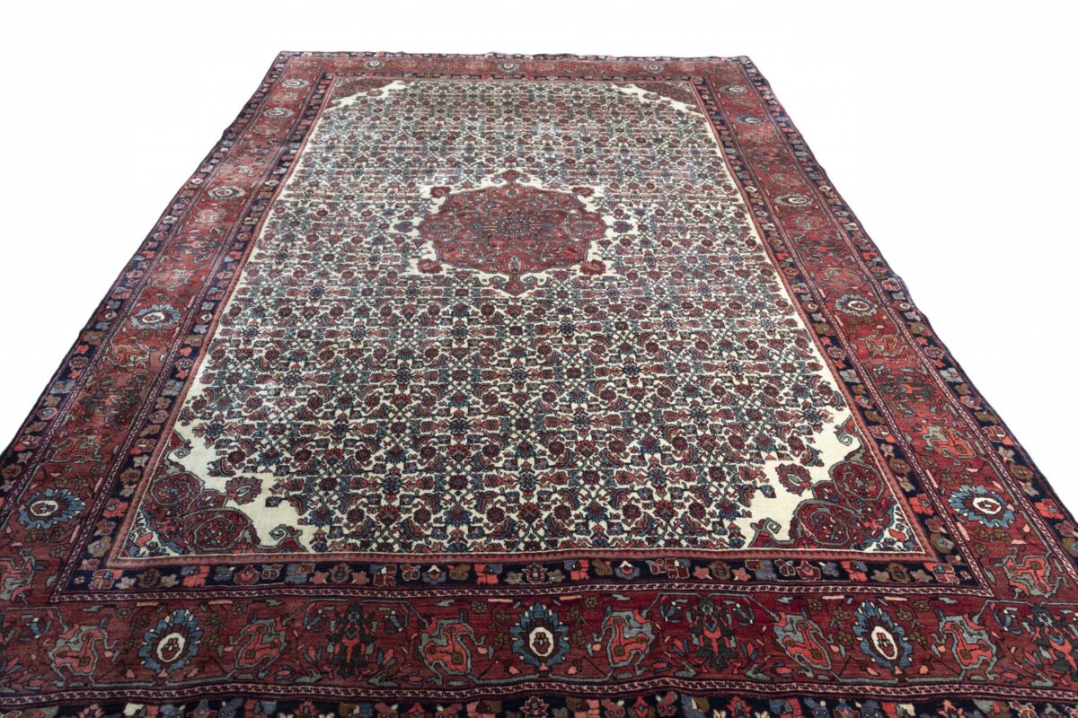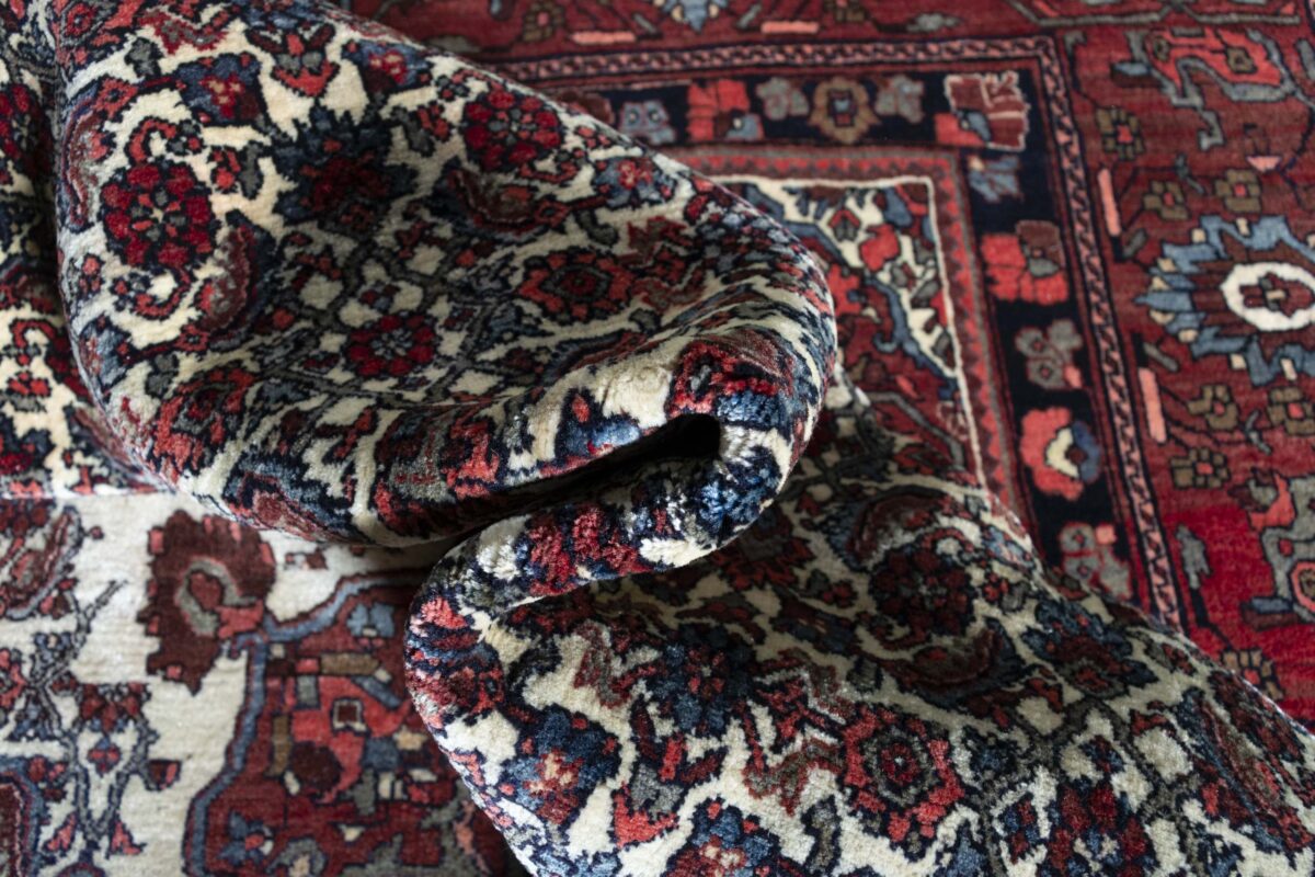 In der kurdischen Teppichprovenienz Bidjar, im Nordwesten des Iran, wird eine besondere Knüpfkunst gepflegt, die dem Bidjar-Perserteppich international einen guten Ruf als äußerst robuster Orientteppichverschafft hat. Im Persischen wird er auch „Eisenteppich“ genannt, da seine Baumwoll-Schussfäden angefeuchtet und durch einen Eisenkamm fest mit den Reihen aus türkischen Knoten zusammengedrückt werden. Somit entsteht ein sehr dichter Flor, der kaum Schmutzpartikel durchlässt und den Bidjar-Perserteppich zur idealen Ausstattung für stark beanspruchte Bodenflächen, beispielsweise in öffentlichen Räumen oder im Essbereich, macht.