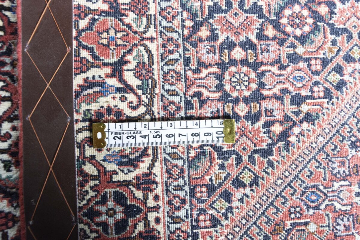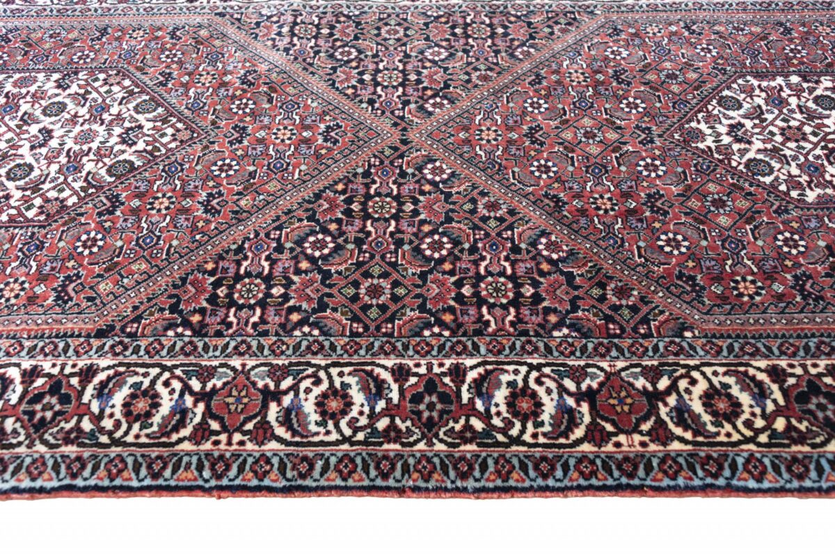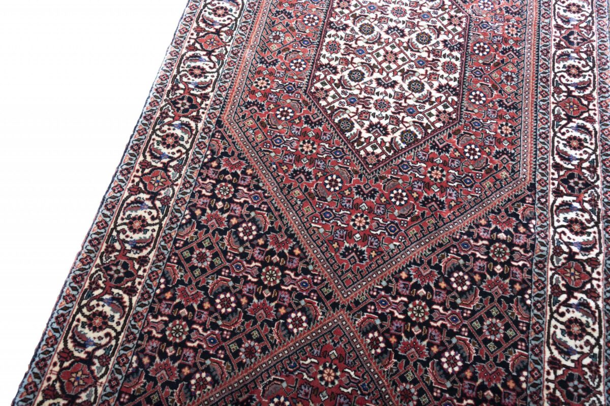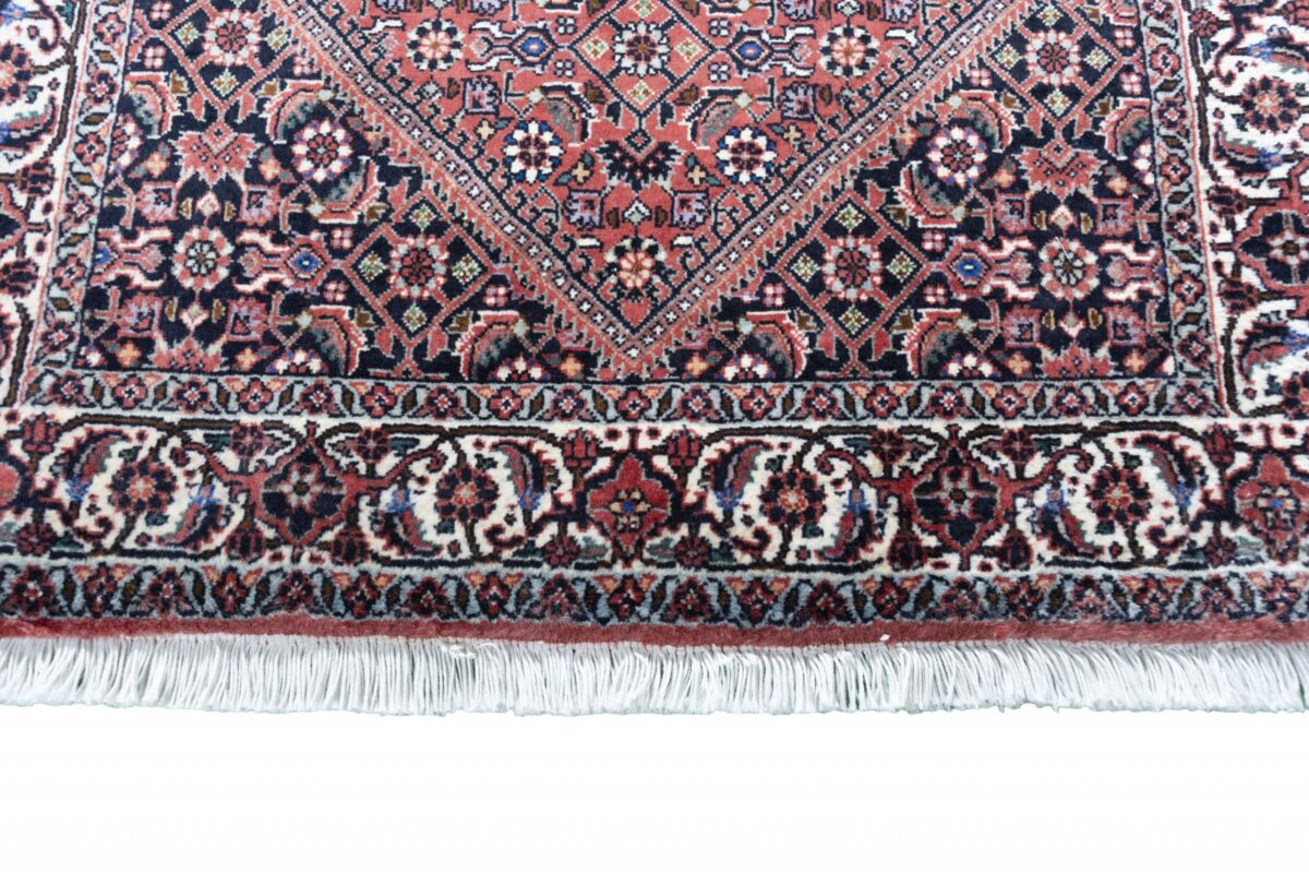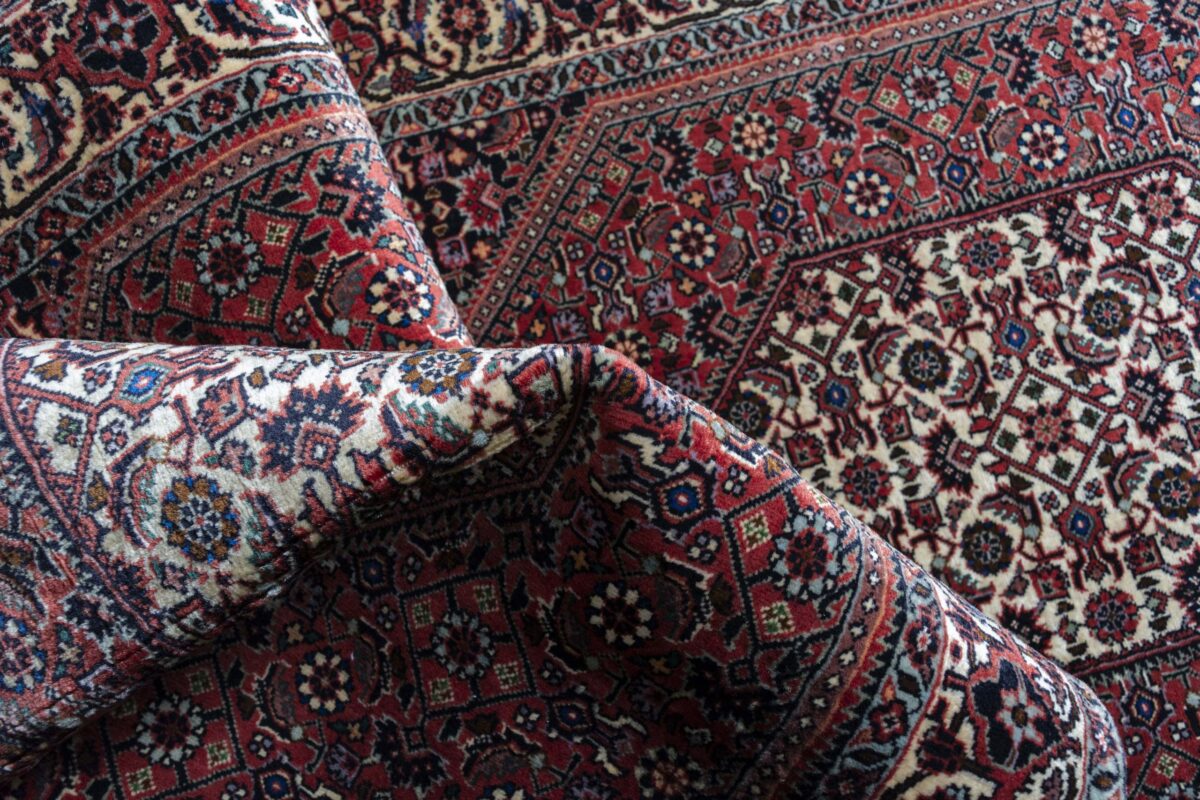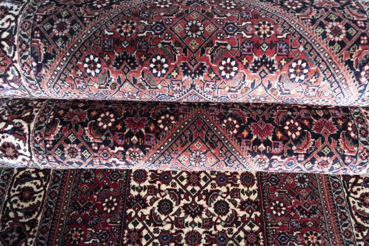In der kurdischen Teppichprovenienz Bidjar, im Nordwesten des Iran, wird eine besondere Knüpfkunst gepflegt, die dem Bidjar-Perserteppich international einen guten Ruf als äußerst robuster Orientteppichverschafft hat. Im Persischen wird er auch „Eisenteppich“ genannt, da seine Baumwoll-Schussfäden angefeuchtet und durch einen Eisenkamm fest mit den Reihen aus türkischen Knoten zusammengedrückt werden. Somit entsteht ein sehr dichter Flor, der kaum Schmutzpartikel durchlässt und den Bidjar-Perserteppich zur idealen Ausstattung für stark beanspruchte Bodenflächen, beispielsweise in öffentlichen Räumen oder im Essbereich, macht.