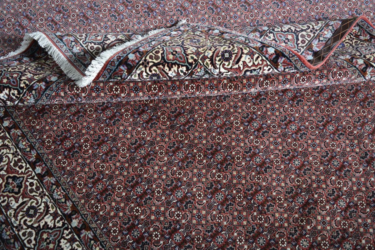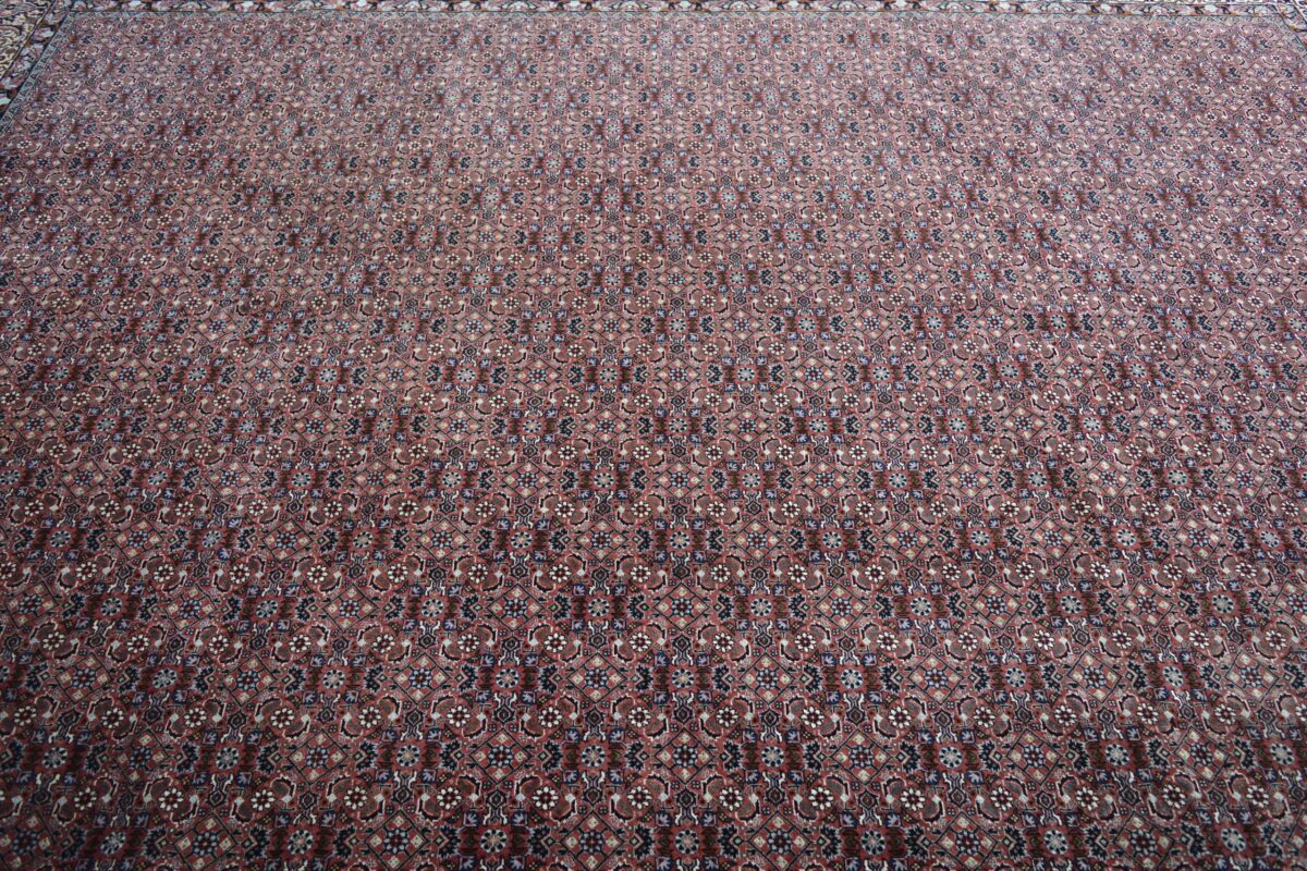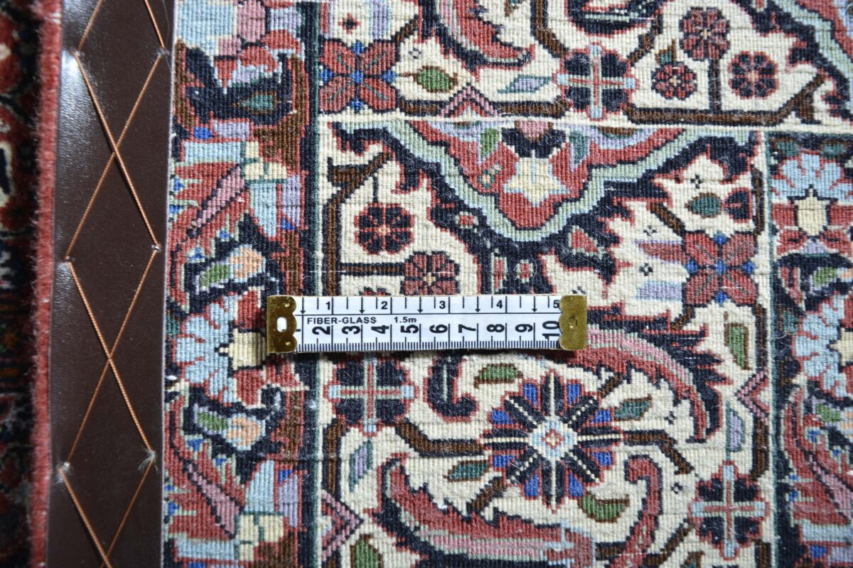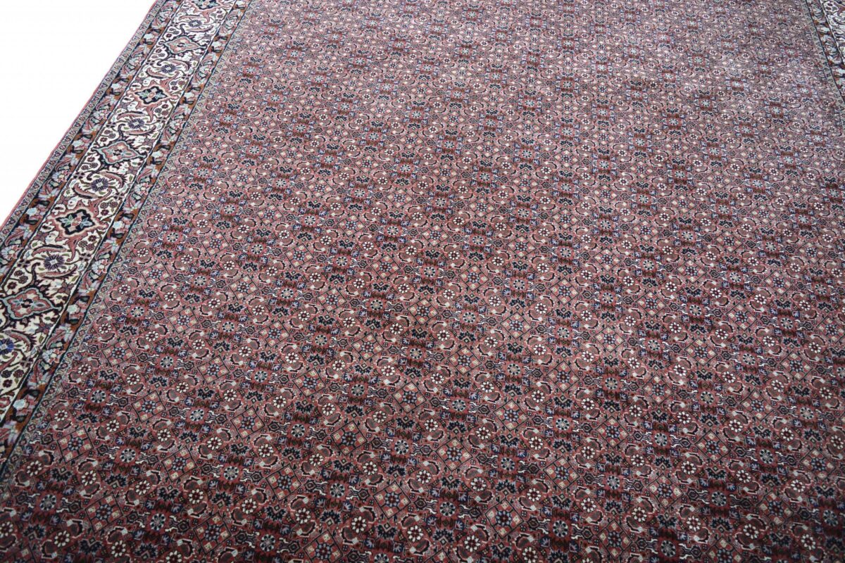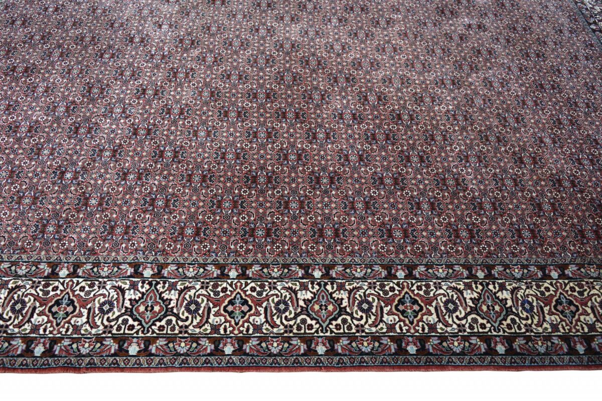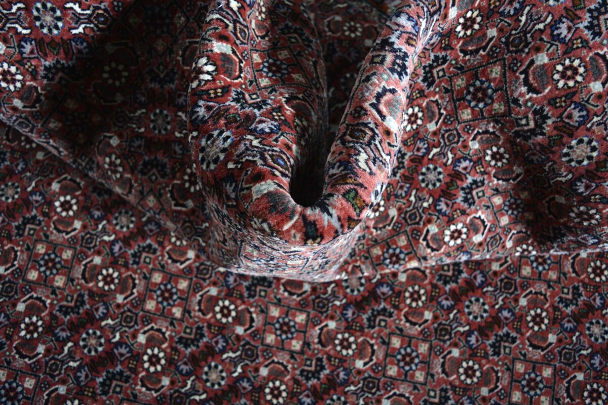 In der kurdischen Teppichprovenienz Bidjar, im Nordwesten des Iran, wird eine besondere Knüpfkunst gepflegt, die dem Bidjar-Perserteppich international einen guten Ruf als äußerst robuster Orientteppichverschafft hat. Im Persischen wird er auch „Eisenteppich“ genannt, da seine Baumwoll-Schussfäden angefeuchtet und durch einen Eisenkamm fest mit den Reihen aus türkischen Knoten zusammengedrückt werden. Somit entsteht ein sehr dichter Flor, der kaum Schmutzpartikel durchlässt und den Bidjar-Perserteppich zur idealen Ausstattung für stark beanspruchte Bodenflächen, beispielsweise in öffentlichen Räumen oder im Essbereich, macht.