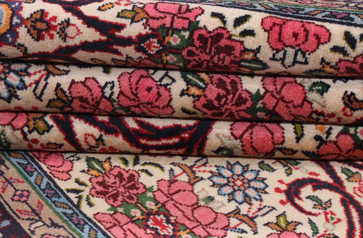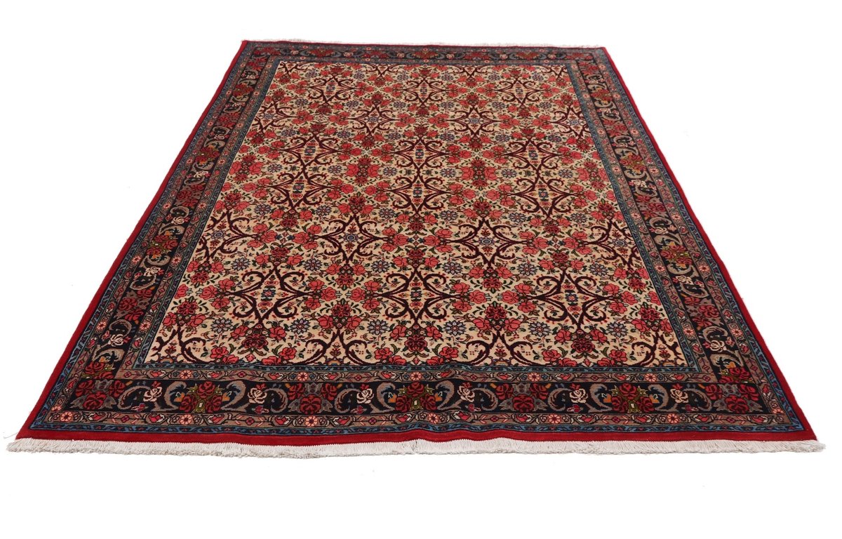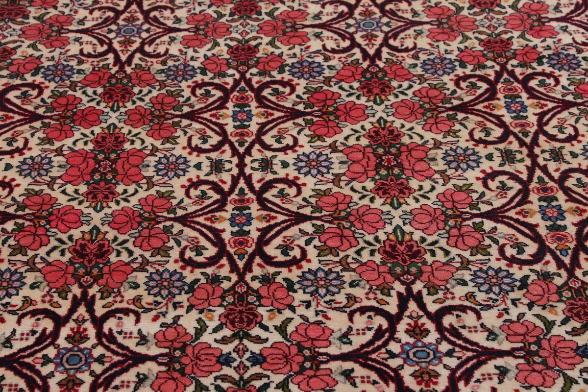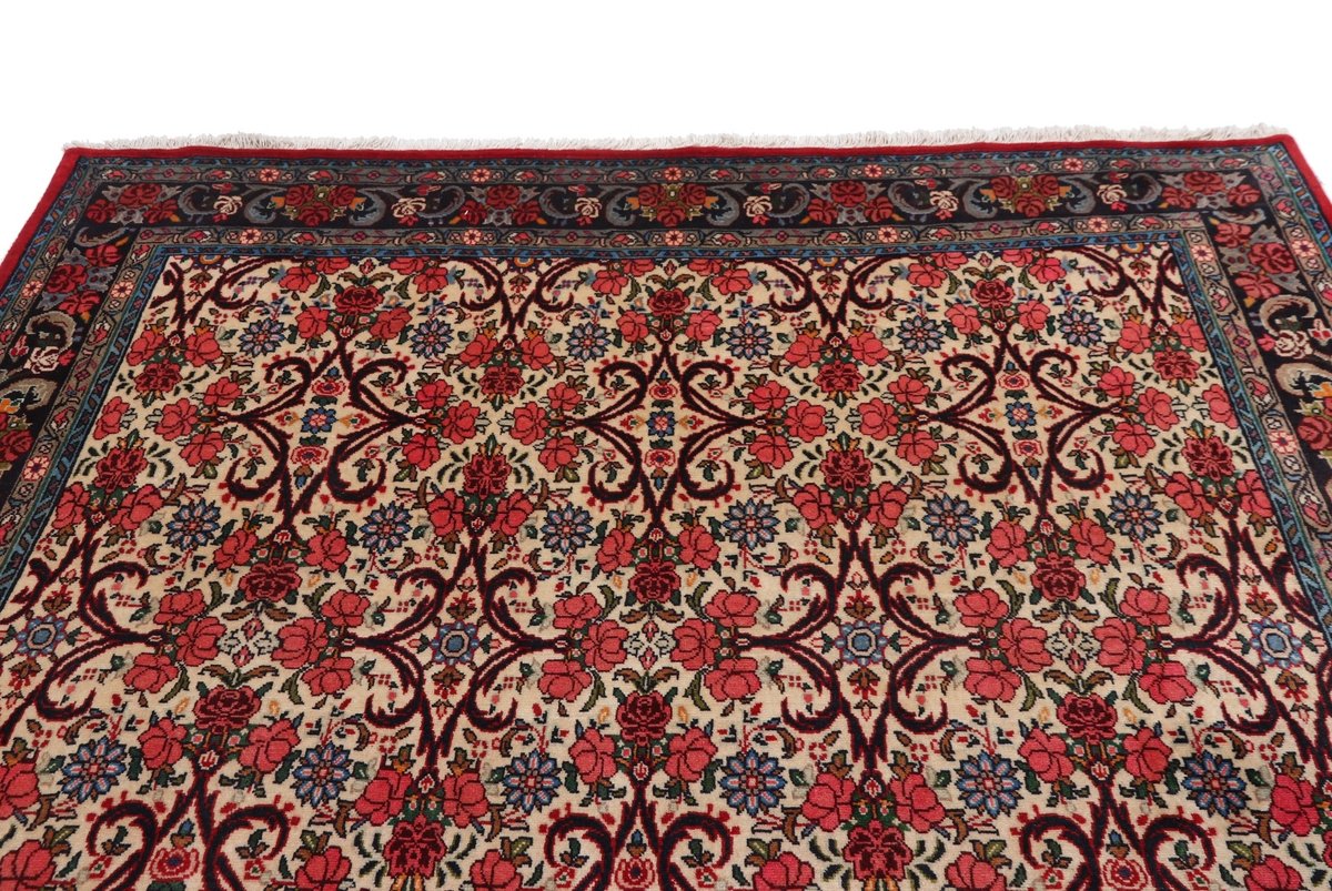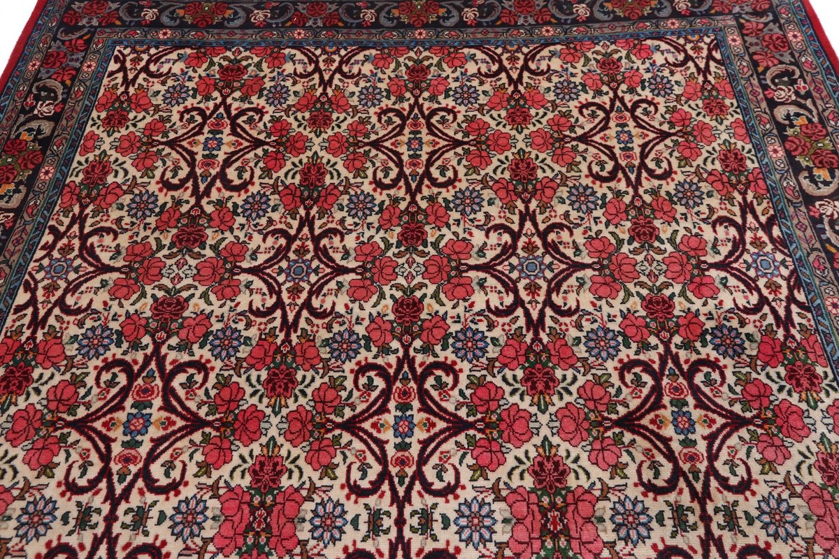 In der kurdischen Teppichprovenienz Bidjar, im Nordwesten des Iran, wird eine besondere Knüpfkunst gepflegt, die dem Bidjar-Perserteppich international einen guten Ruf als äußerst robuster Orientteppichverschafft hat. Im Persischen wird er auch „Eisenteppich“ genannt, da seine Baumwoll-Schussfäden angefeuchtet und durch einen Eisenkamm fest mit den Reihen aus türkischen Knoten zusammengedrückt werden. Somit entsteht ein sehr dichter Flor, der kaum Schmutzpartikel durchlässt und den Bidjar-Perserteppich zur idealen Ausstattung für stark beanspruchte Bodenflächen, beispielsweise in öffentlichen Räumen oder im Essbereich, macht.