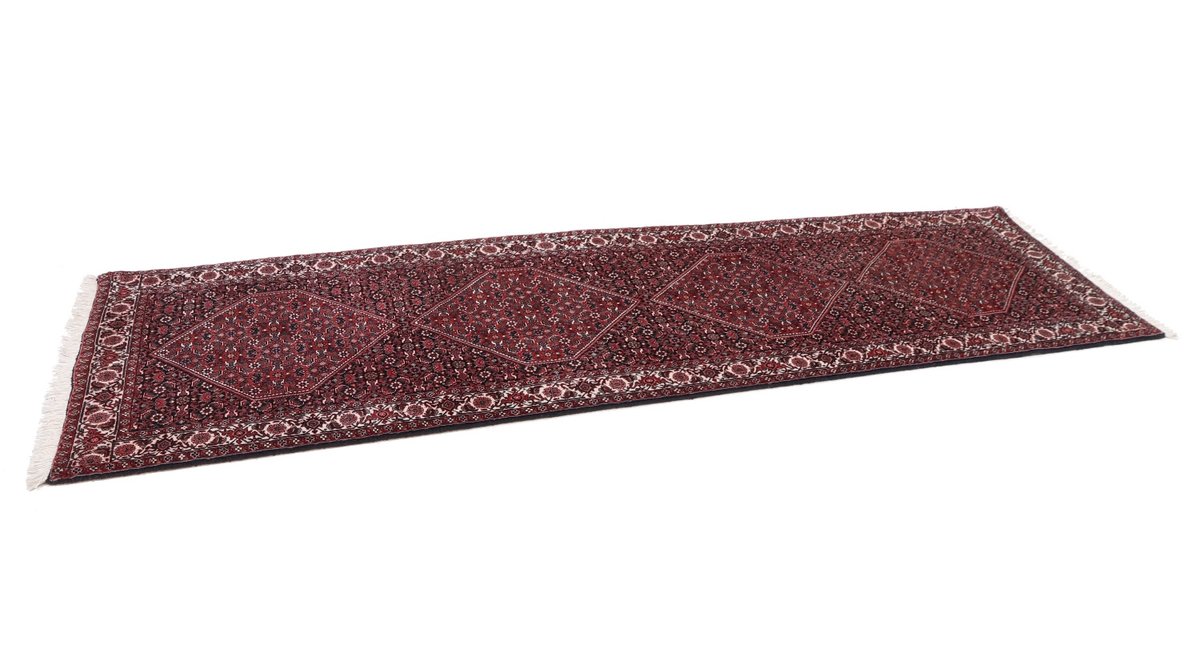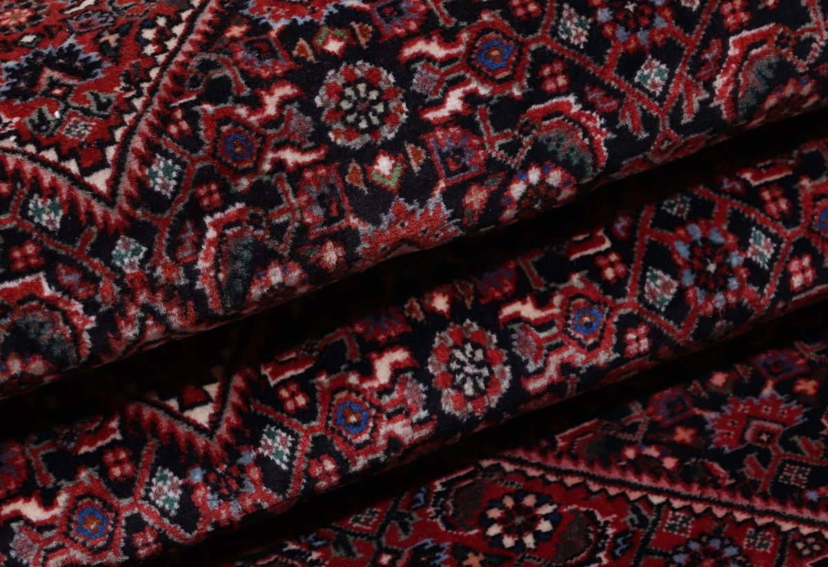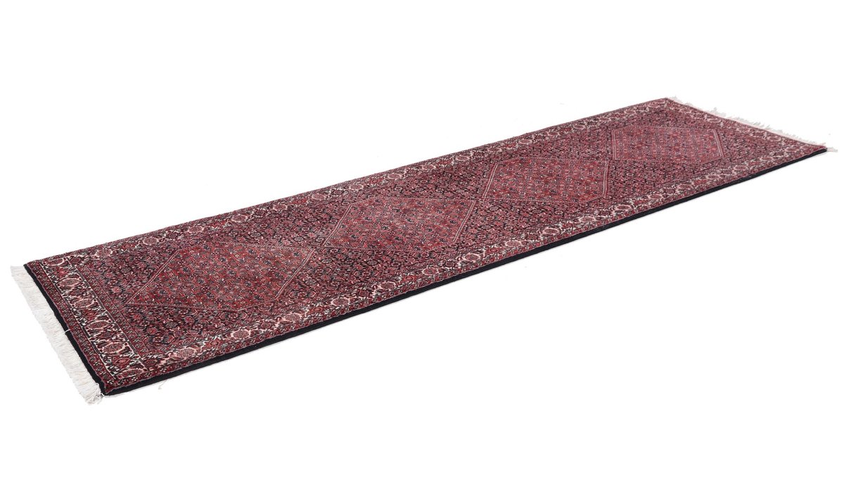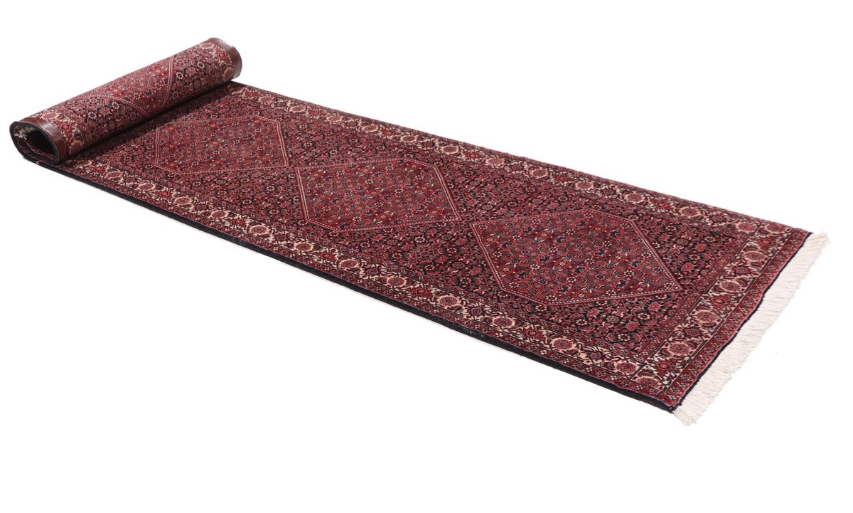 In der kurdischen Teppichprovenienz Bidjar, im Nordwesten des Iran, wird eine besondere Knüpfkunst gepflegt, die dem Bidjar-Perserteppich international einen guten Ruf als äußerst robuster Orientteppichverschafft hat. Im Persischen wird er auch „Eisenteppich“ genannt, da seine Baumwoll-Schussfäden angefeuchtet und durch einen Eisenkamm fest mit den Reihen aus türkischen Knoten zusammengedrückt werden. Somit entsteht ein sehr dichter Flor, der kaum Schmutzpartikel durchlässt und den Bidjar-Perserteppich zur idealen Ausstattung für stark beanspruchte Bodenflächen, beispielsweise in öffentlichen Räumen oder im Essbereich, macht.