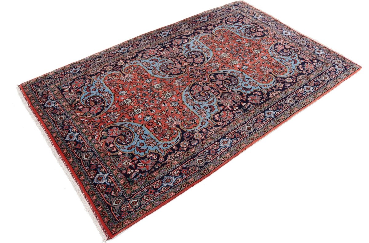 In der kurdischen Teppichprovenienz Bidjar, im Nordwesten des Iran, wird eine besondere Knüpfkunst gepflegt, die dem Bidjar-Perserteppich international einen guten Ruf als äußerst robuster Orientteppichverschafft hat. Im Persischen wird er auch „Eisenteppich“ genannt, da seine Baumwoll-Schussfäden angefeuchtet und durch einen Eisenkamm fest mit den Reihen aus türkischen Knoten zusammengedrückt werden. Somit entsteht ein sehr dichter Flor, der kaum Schmutzpartikel durchlässt und den Bidjar-Perserteppich zur idealen Ausstattung für stark beanspruchte Bodenflächen, beispielsweise in öffentlichen Räumen oder im Essbereich, macht.
