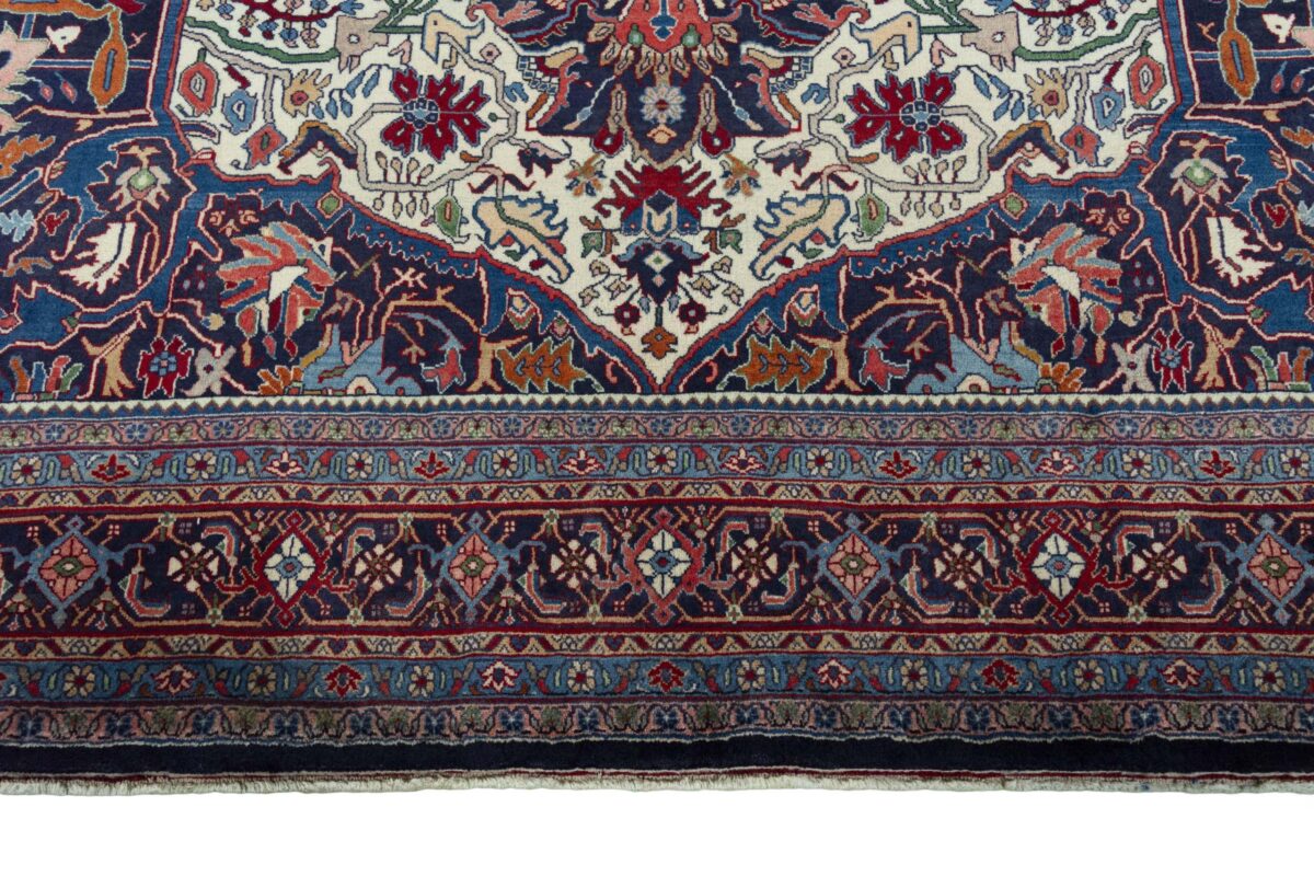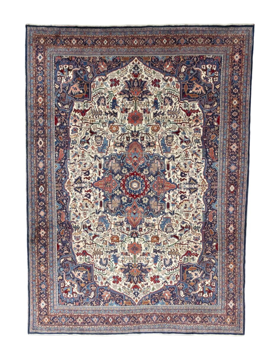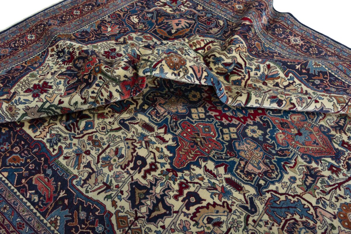 In der kurdischen Teppichprovenienz Bidjar, im Nordwesten des Iran, wird eine besondere Knüpfkunst gepflegt, die dem Bidjar-Perserteppich international einen guten Ruf als äußerst robuster Orientteppichverschafft hat. Im Persischen wird er auch „Eisenteppich“ genannt, da seine Baumwoll-Schussfäden angefeuchtet und durch einen Eisenkamm fest mit den Reihen aus türkischen Knoten zusammengedrückt werden. Somit entsteht ein sehr dichter Flor, der kaum Schmutzpartikel durchlässt und den Bidjar-Perserteppich zur idealen Ausstattung für stark beanspruchte Bodenflächen, beispielsweise in öffentlichen Räumen oder im Essbereich, macht.