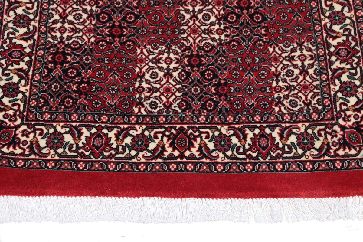 In der kurdischen Teppichprovenienz Bidjar, im Nordwesten des Iran, wird eine besondere Knüpfkunst gepflegt, die dem Bidjar-Perserteppich international einen guten Ruf als äußerst robuster Orientteppichverschafft hat. Im Persischen wird er auch „Eisenteppich“ genannt, da seine Baumwoll-Schussfäden angefeuchtet und durch einen Eisenkamm fest mit den Reihen aus türkischen Knoten zusammengedrückt werden. Somit entsteht ein sehr dichter Flor, der kaum Schmutzpartikel durchlässt und den Bidjar-Perserteppich zur idealen Ausstattung für stark beanspruchte Bodenflächen, beispielsweise in öffentlichen Räumen oder im Essbereich, macht.