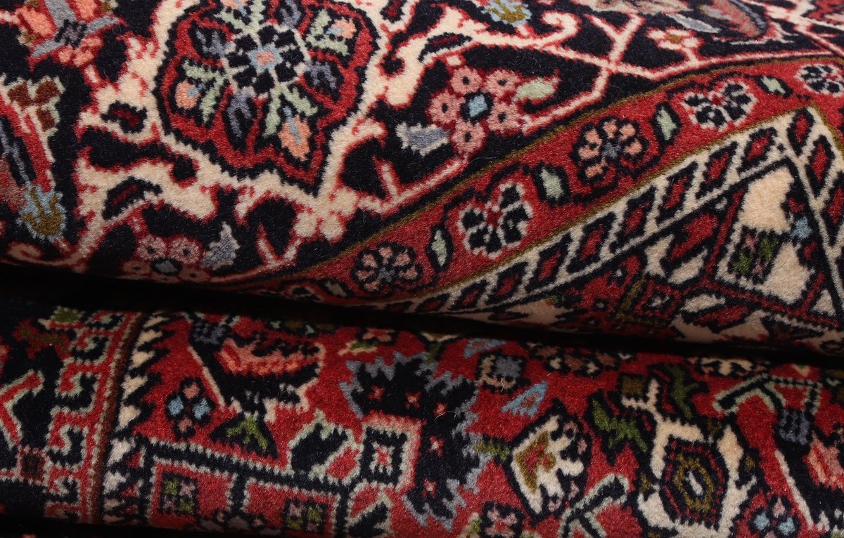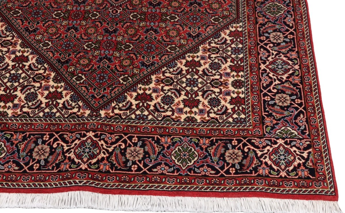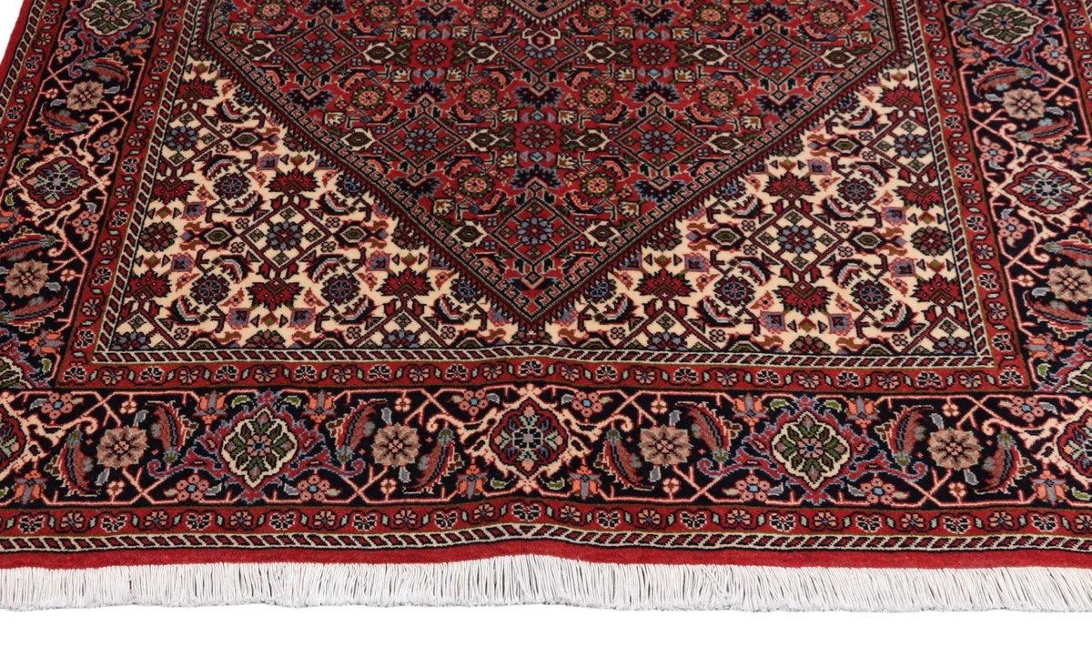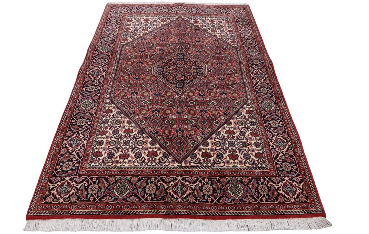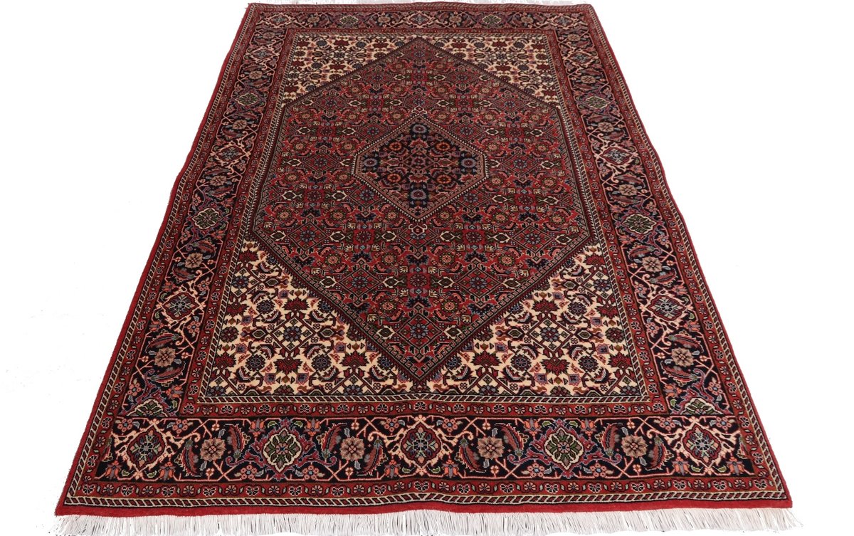 In der kurdischen Teppichprovenienz Bidjar, im Nordwesten des Iran, wird eine besondere Knüpfkunst gepflegt, die dem Bidjar-Perserteppich international einen guten Ruf als äußerst robuster Orientteppichverschafft hat. Im Persischen wird er auch „Eisenteppich“ genannt, da seine Baumwoll-Schussfäden angefeuchtet und durch einen Eisenkamm fest mit den Reihen aus türkischen Knoten zusammengedrückt werden. Somit entsteht ein sehr dichter Flor, der kaum Schmutzpartikel durchlässt und den Bidjar-Perserteppich zur idealen Ausstattung für stark beanspruchte Bodenflächen, beispielsweise in öffentlichen Räumen oder im Essbereich, macht.