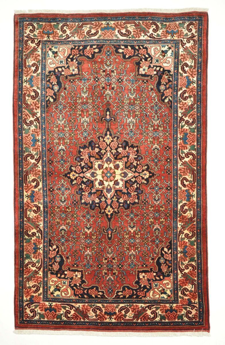 In der kurdischen Teppichprovenienz Bidjar, im Nordwesten des Iran, wird eine besondere Knüpfkunst gepflegt, die dem Bidjar-Perserteppich international einen guten Ruf als äußerst robuster Orientteppichverschafft hat. Im Persischen wird er auch „Eisenteppich“ genannt, da seine Baumwoll-Schussfäden angefeuchtet und durch einen Eisenkamm fest mit den Reihen aus türkischen Knoten zusammengedrückt werden. Somit entsteht ein sehr dichter Flor, der kaum Schmutzpartikel durchlässt und den Bidjar-Perserteppich zur idealen Ausstattung für stark beanspruchte Bodenflächen, beispielsweise in öffentlichen Räumen oder im Essbereich, macht.
