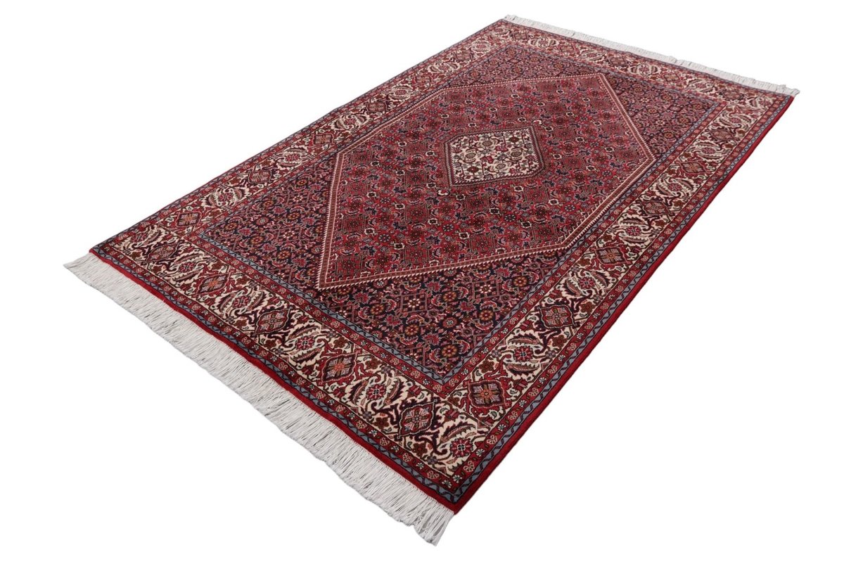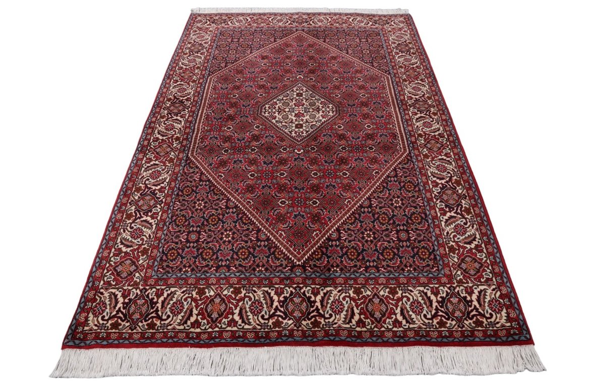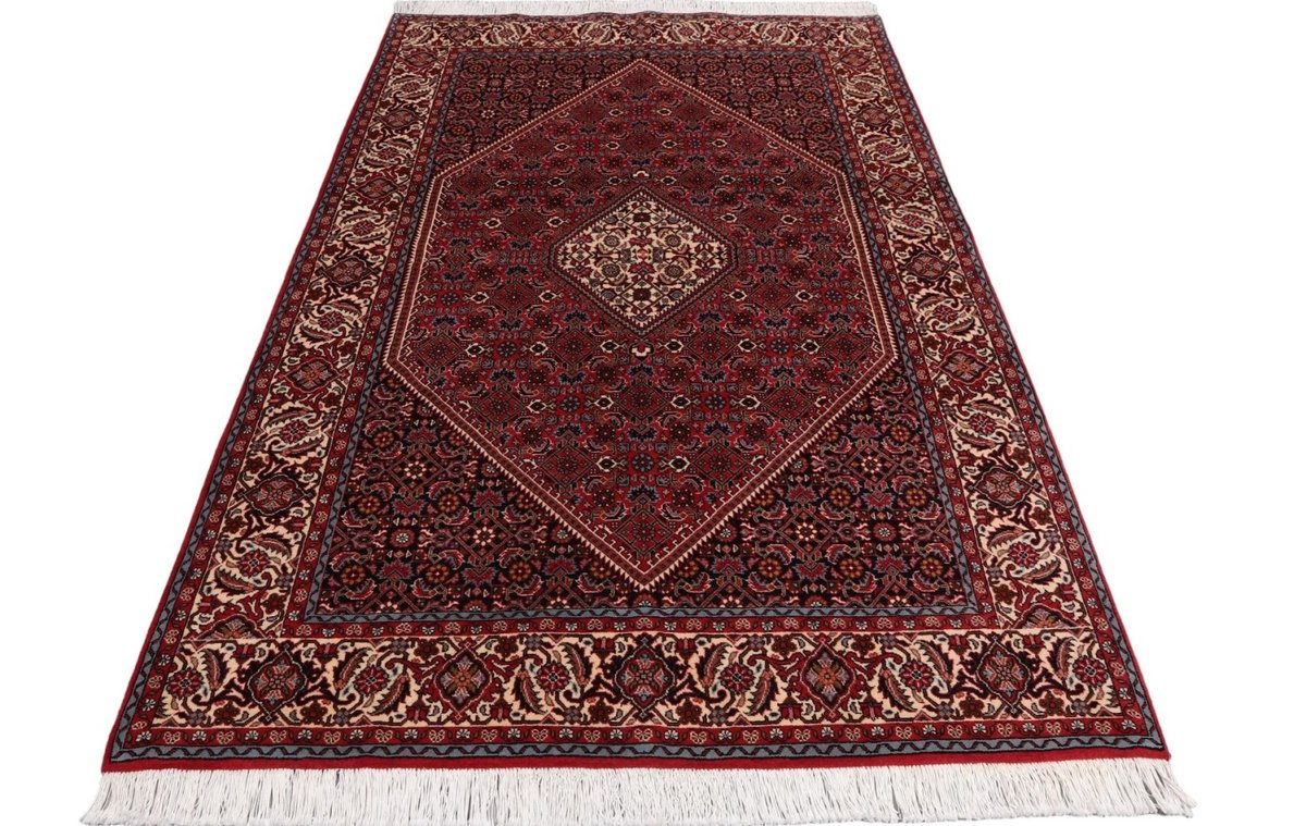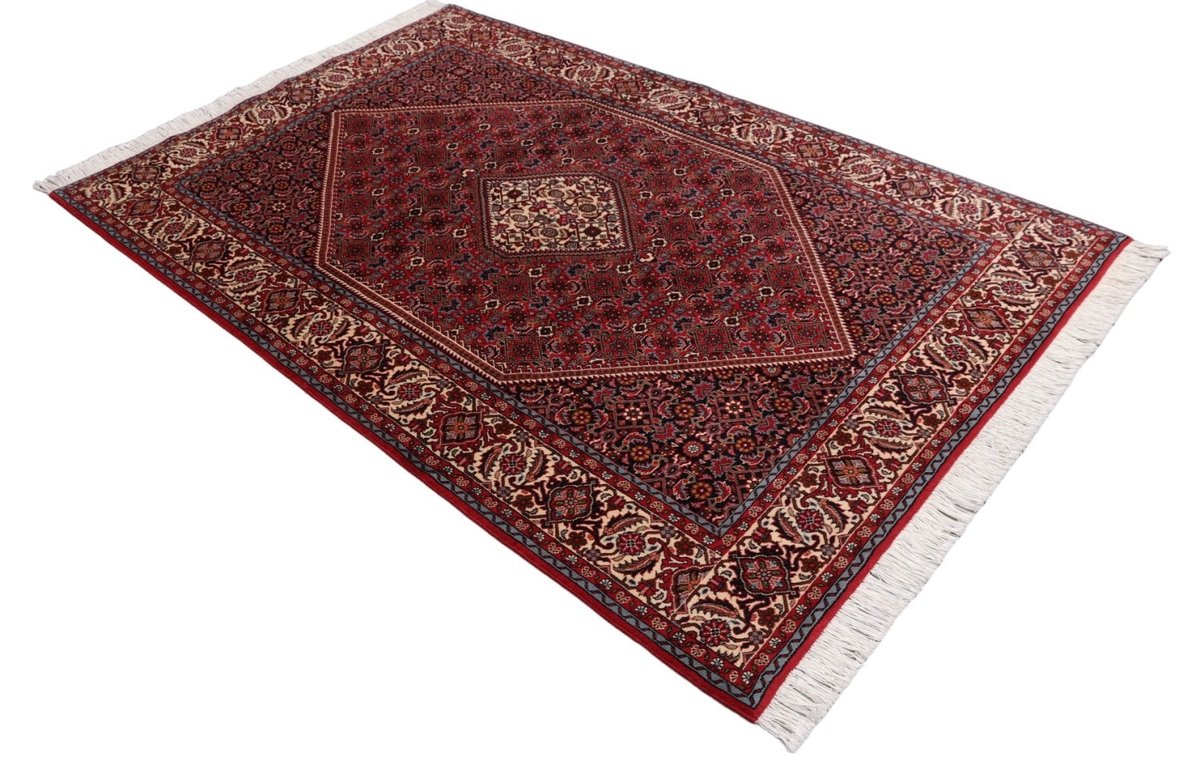 In der kurdischen Teppichprovenienz Bidjar, im Nordwesten des Iran, wird eine besondere Knüpfkunst gepflegt, die dem Bidjar-Perserteppich international einen guten Ruf als äußerst robuster Orientteppichverschafft hat. Im Persischen wird er auch „Eisenteppich“ genannt, da seine Baumwoll-Schussfäden angefeuchtet und durch einen Eisenkamm fest mit den Reihen aus türkischen Knoten zusammengedrückt werden. Somit entsteht ein sehr dichter Flor, der kaum Schmutzpartikel durchlässt und den Bidjar-Perserteppich zur idealen Ausstattung für stark beanspruchte Bodenflächen, beispielsweise in öffentlichen Räumen oder im Essbereich, macht.