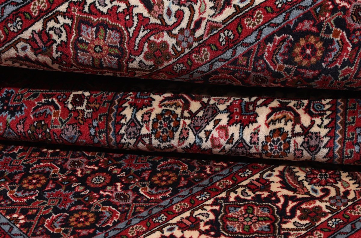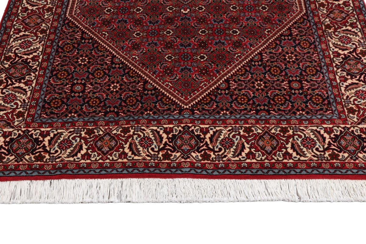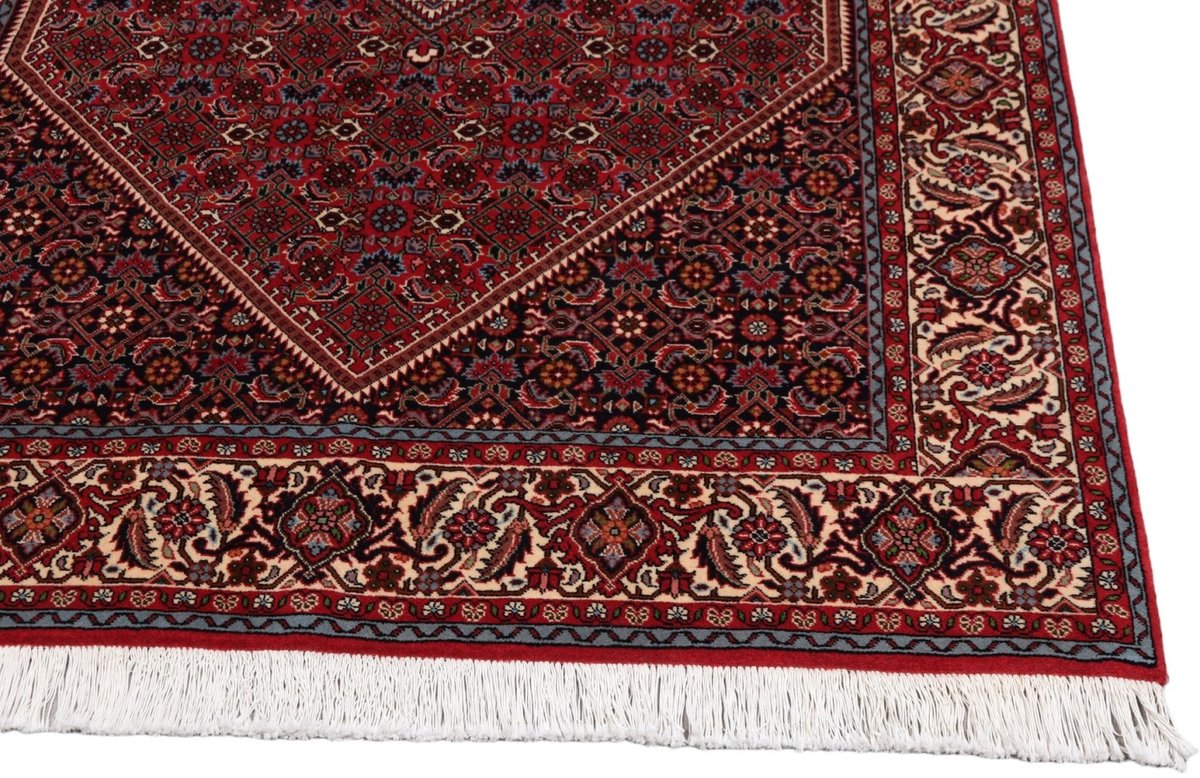 In der kurdischen Teppichprovenienz Bidjar, im Nordwesten des Iran, wird eine besondere Knüpfkunst gepflegt, die dem Bidjar-Perserteppich international einen guten Ruf als äußerst robuster Orientteppichverschafft hat. Im Persischen wird er auch „Eisenteppich“ genannt, da seine Baumwoll-Schussfäden angefeuchtet und durch einen Eisenkamm fest mit den Reihen aus türkischen Knoten zusammengedrückt werden. Somit entsteht ein sehr dichter Flor, der kaum Schmutzpartikel durchlässt und den Bidjar-Perserteppich zur idealen Ausstattung für stark beanspruchte Bodenflächen, beispielsweise in öffentlichen Räumen oder im Essbereich, macht.