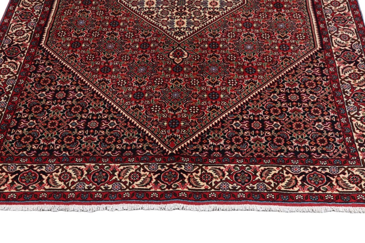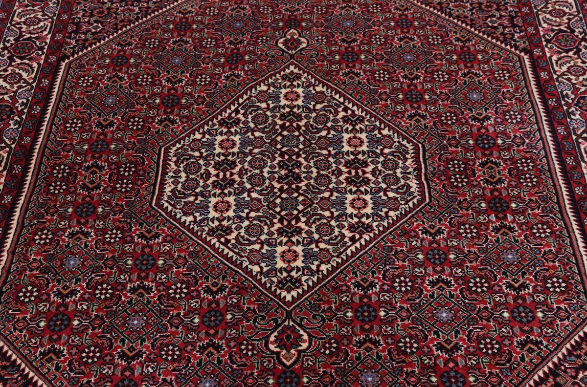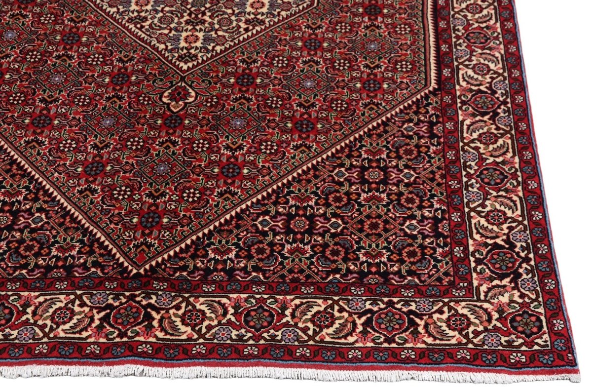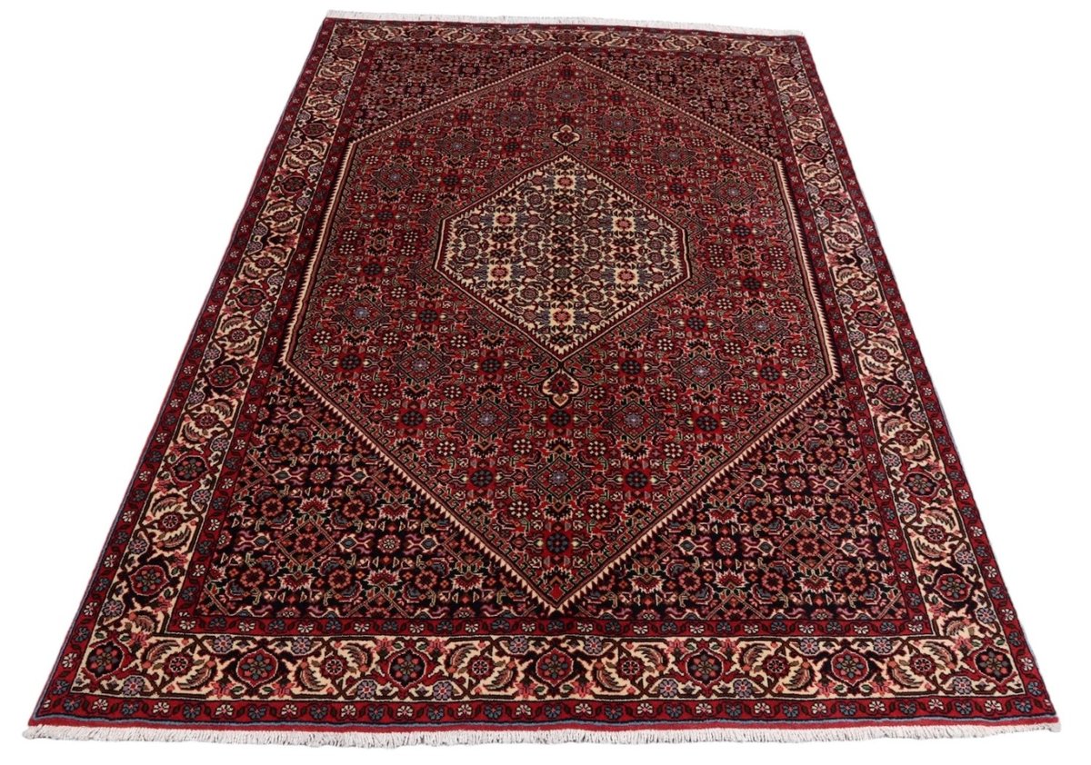 In der kurdischen Teppichprovenienz Bidjar, im Nordwesten des Iran, wird eine besondere Knüpfkunst gepflegt, die dem Bidjar-Perserteppich international einen guten Ruf als äußerst robuster Orientteppichverschafft hat. Im Persischen wird er auch „Eisenteppich“ genannt, da seine Baumwoll-Schussfäden angefeuchtet und durch einen Eisenkamm fest mit den Reihen aus türkischen Knoten zusammengedrückt werden. Somit entsteht ein sehr dichter Flor, der kaum Schmutzpartikel durchlässt und den Bidjar-Perserteppich zur idealen Ausstattung für stark beanspruchte Bodenflächen, beispielsweise in öffentlichen Räumen oder im Essbereich, macht.