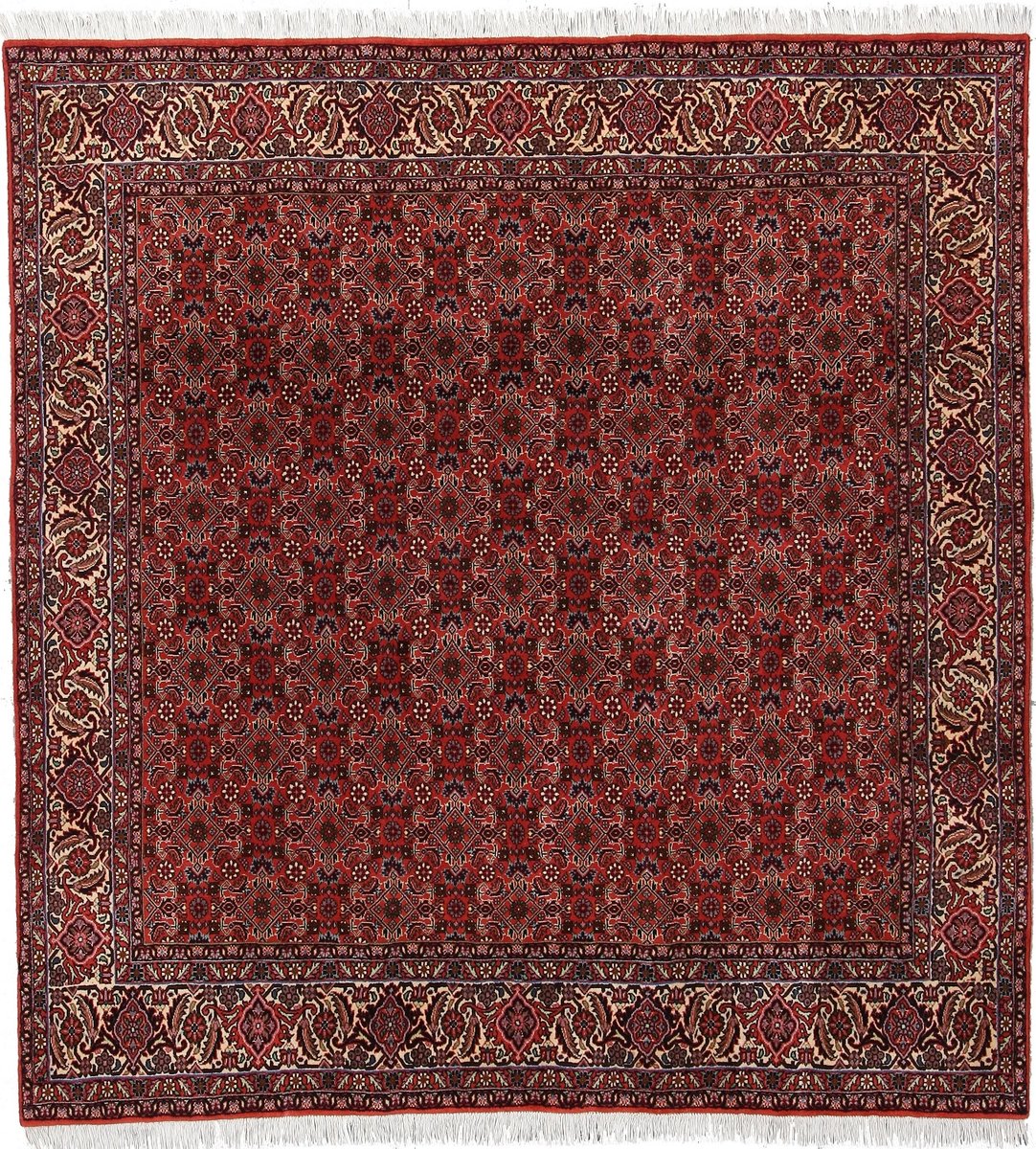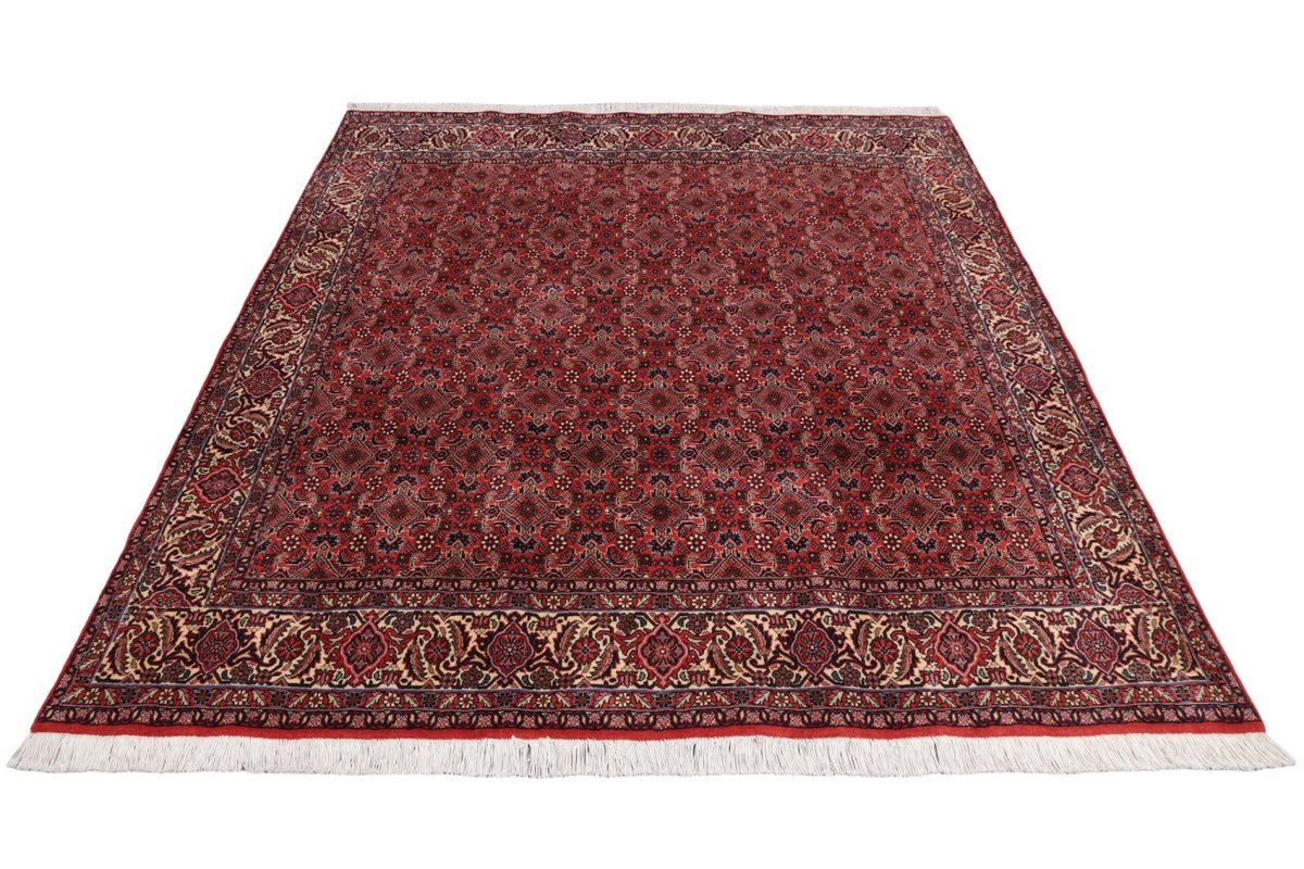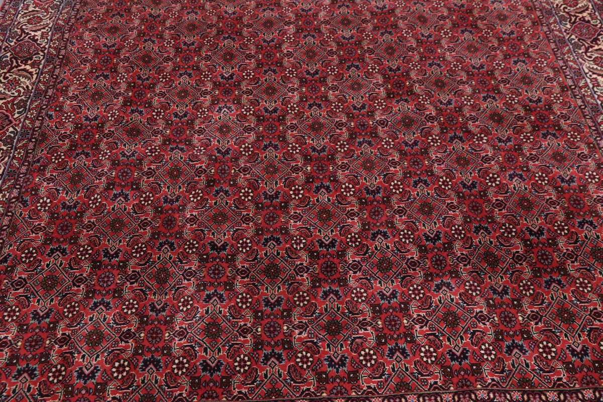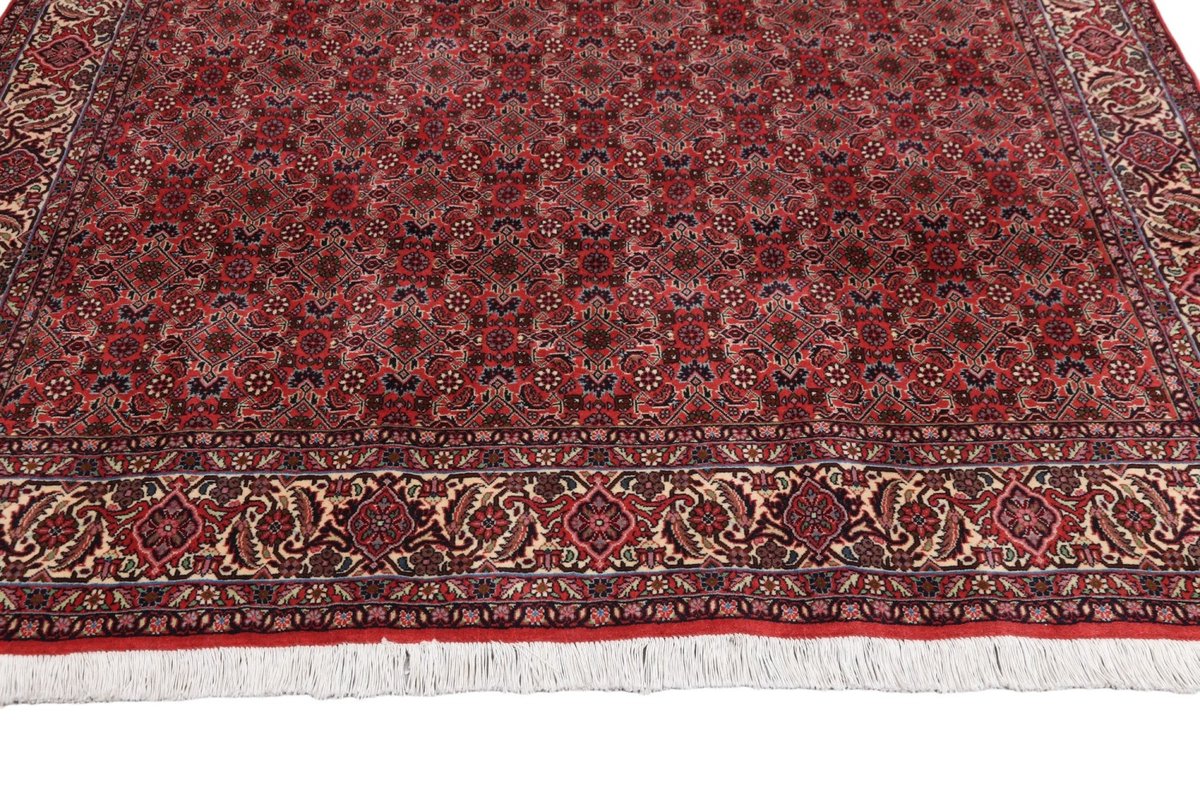 In der kurdischen Teppichprovenienz Bidjar, im Nordwesten des Iran, wird eine besondere Knüpfkunst gepflegt, die dem Bidjar-Perserteppich international einen guten Ruf als äußerst robuster Orientteppichverschafft hat. Im Persischen wird er auch „Eisenteppich“ genannt, da seine Baumwoll-Schussfäden angefeuchtet und durch einen Eisenkamm fest mit den Reihen aus türkischen Knoten zusammengedrückt werden. Somit entsteht ein sehr dichter Flor, der kaum Schmutzpartikel durchlässt und den Bidjar-Perserteppich zur idealen Ausstattung für stark beanspruchte Bodenflächen, beispielsweise in öffentlichen Räumen oder im Essbereich, macht.