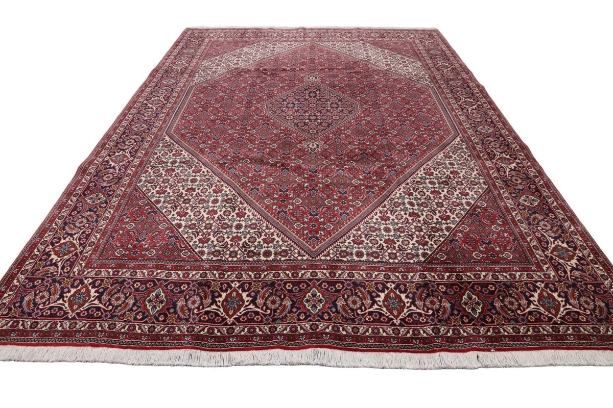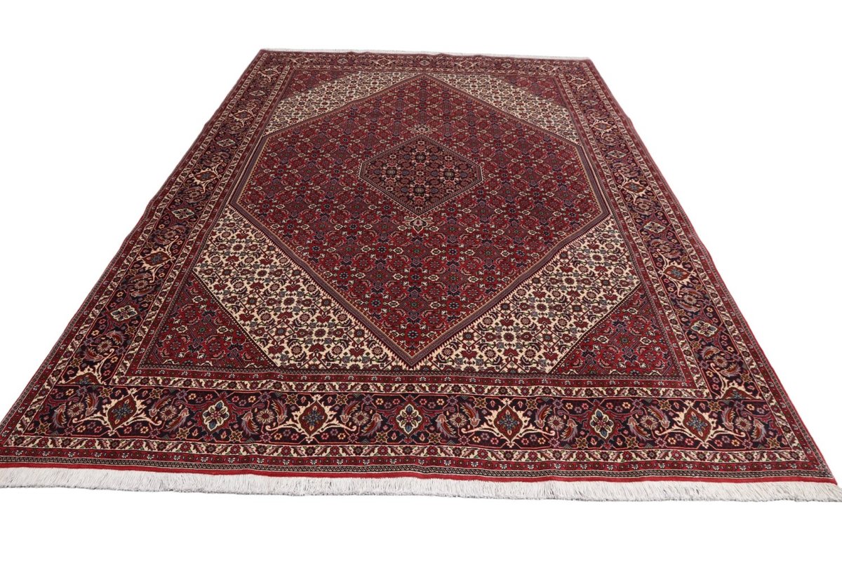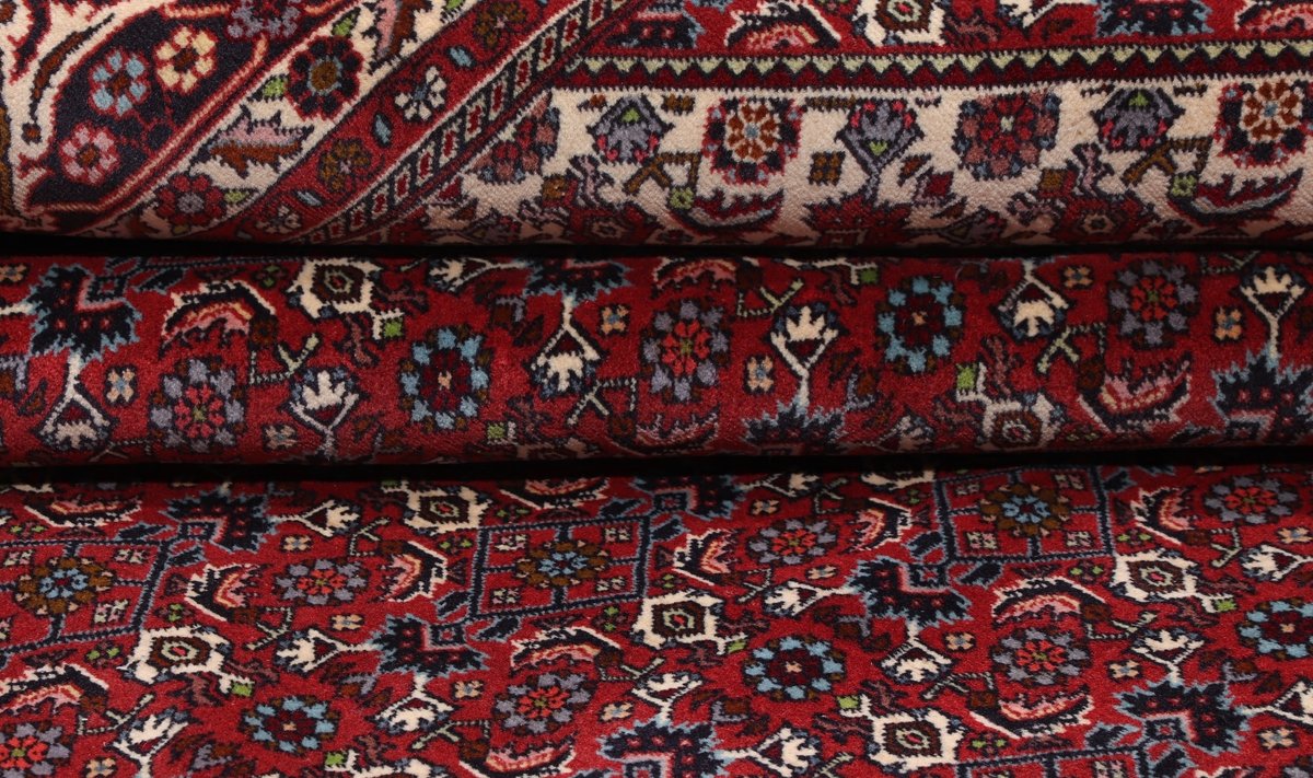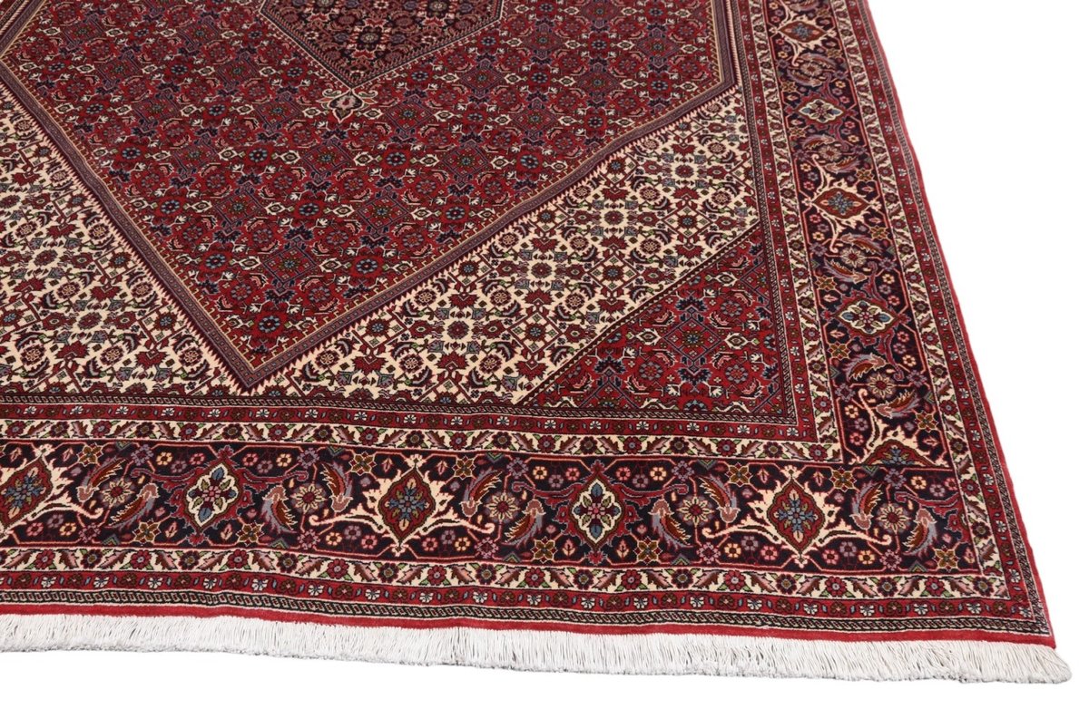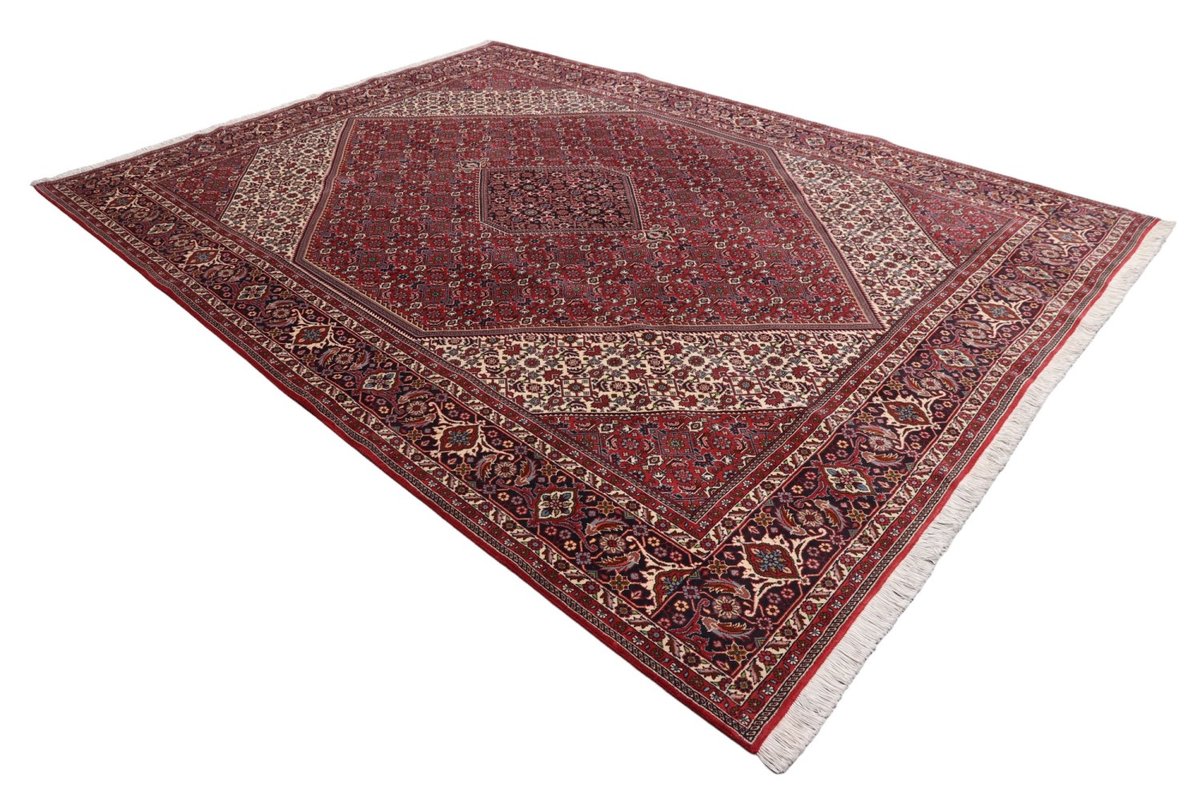 In der kurdischen Teppichprovenienz Bidjar, im Nordwesten des Iran, wird eine besondere Knüpfkunst gepflegt, die dem Bidjar-Perserteppich international einen guten Ruf als äußerst robuster Orientteppichverschafft hat. Im Persischen wird er auch „Eisenteppich“ genannt, da seine Baumwoll-Schussfäden angefeuchtet und durch einen Eisenkamm fest mit den Reihen aus türkischen Knoten zusammengedrückt werden. Somit entsteht ein sehr dichter Flor, der kaum Schmutzpartikel durchlässt und den Bidjar-Perserteppich zur idealen Ausstattung für stark beanspruchte Bodenflächen, beispielsweise in öffentlichen Räumen oder im Essbereich, macht.