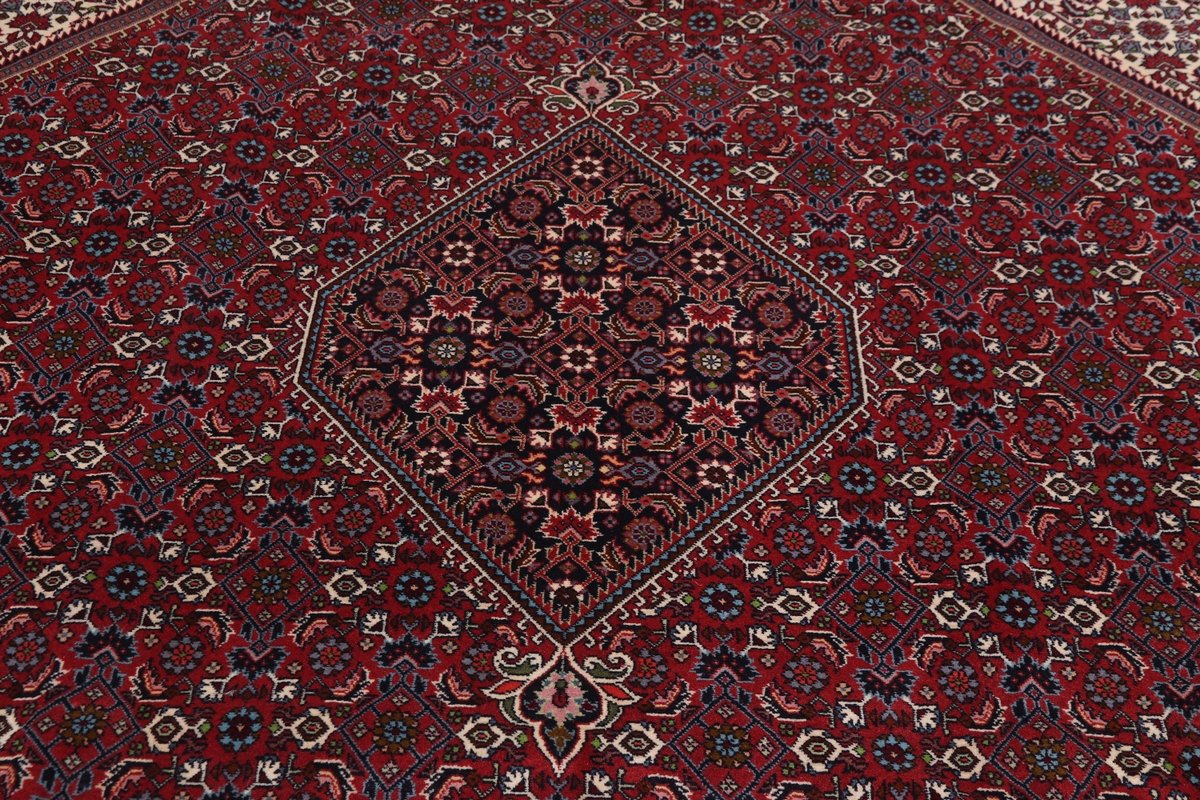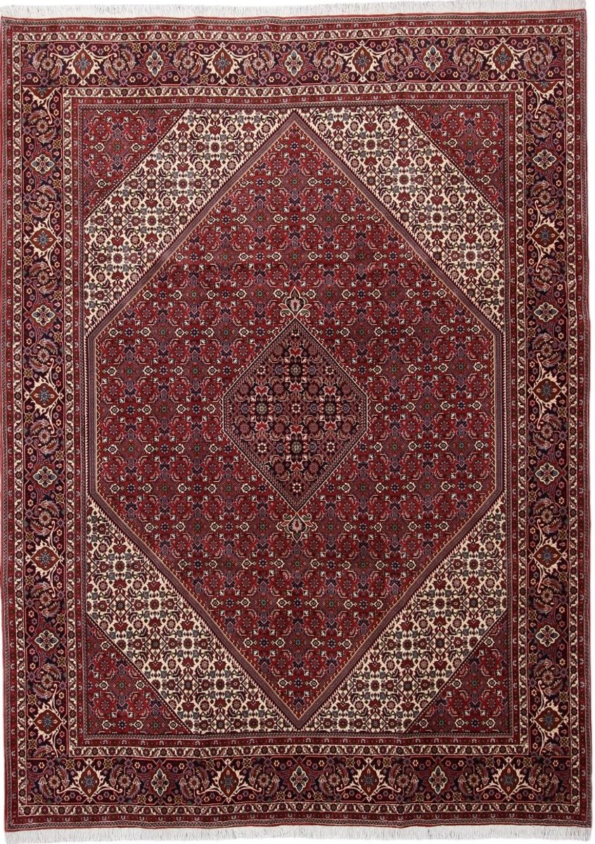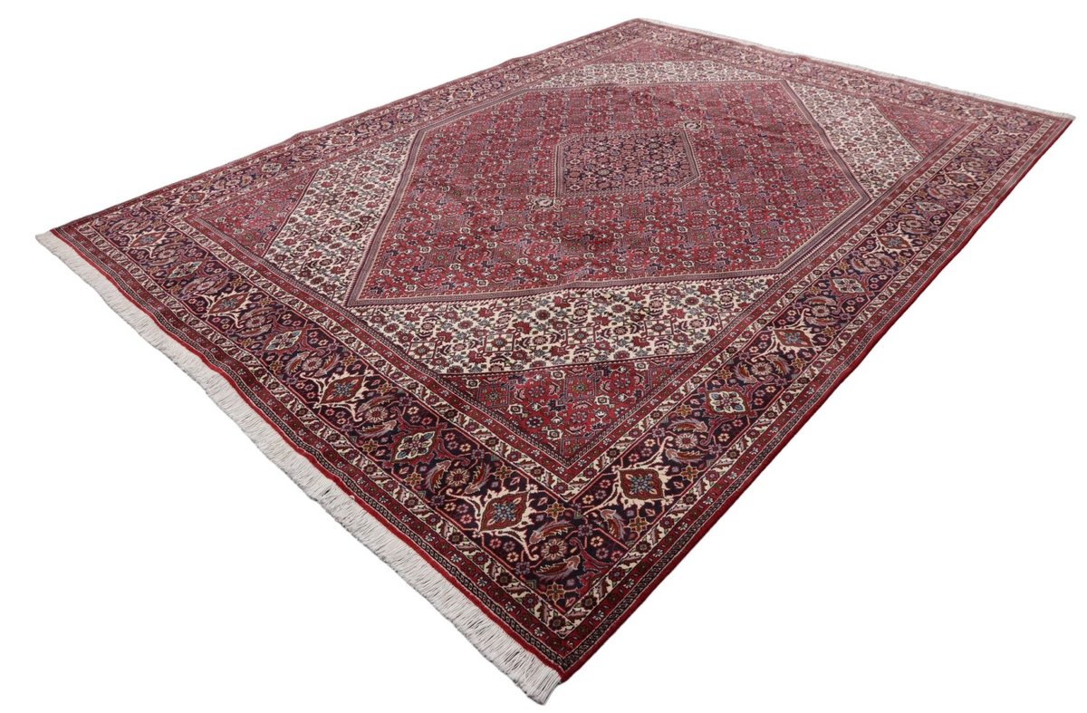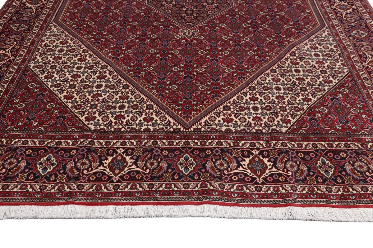 In der kurdischen Teppichprovenienz Bidjar, im Nordwesten des Iran, wird eine besondere Knüpfkunst gepflegt, die dem Bidjar-Perserteppich international einen guten Ruf als äußerst robuster Orientteppichverschafft hat. Im Persischen wird er auch „Eisenteppich“ genannt, da seine Baumwoll-Schussfäden angefeuchtet und durch einen Eisenkamm fest mit den Reihen aus türkischen Knoten zusammengedrückt werden. Somit entsteht ein sehr dichter Flor, der kaum Schmutzpartikel durchlässt und den Bidjar-Perserteppich zur idealen Ausstattung für stark beanspruchte Bodenflächen, beispielsweise in öffentlichen Räumen oder im Essbereich, macht.