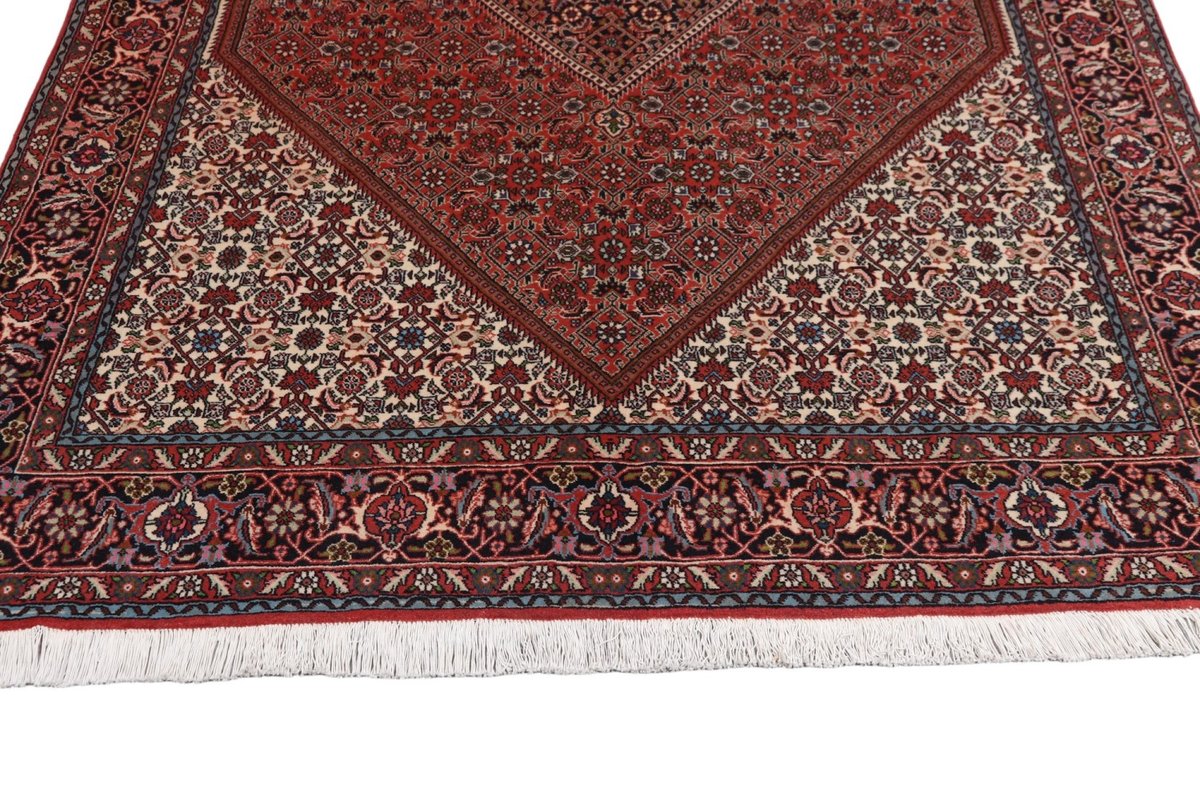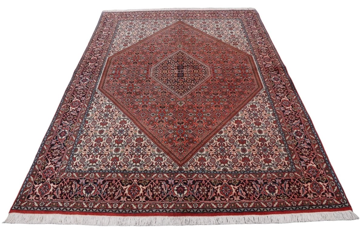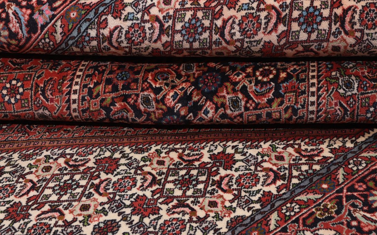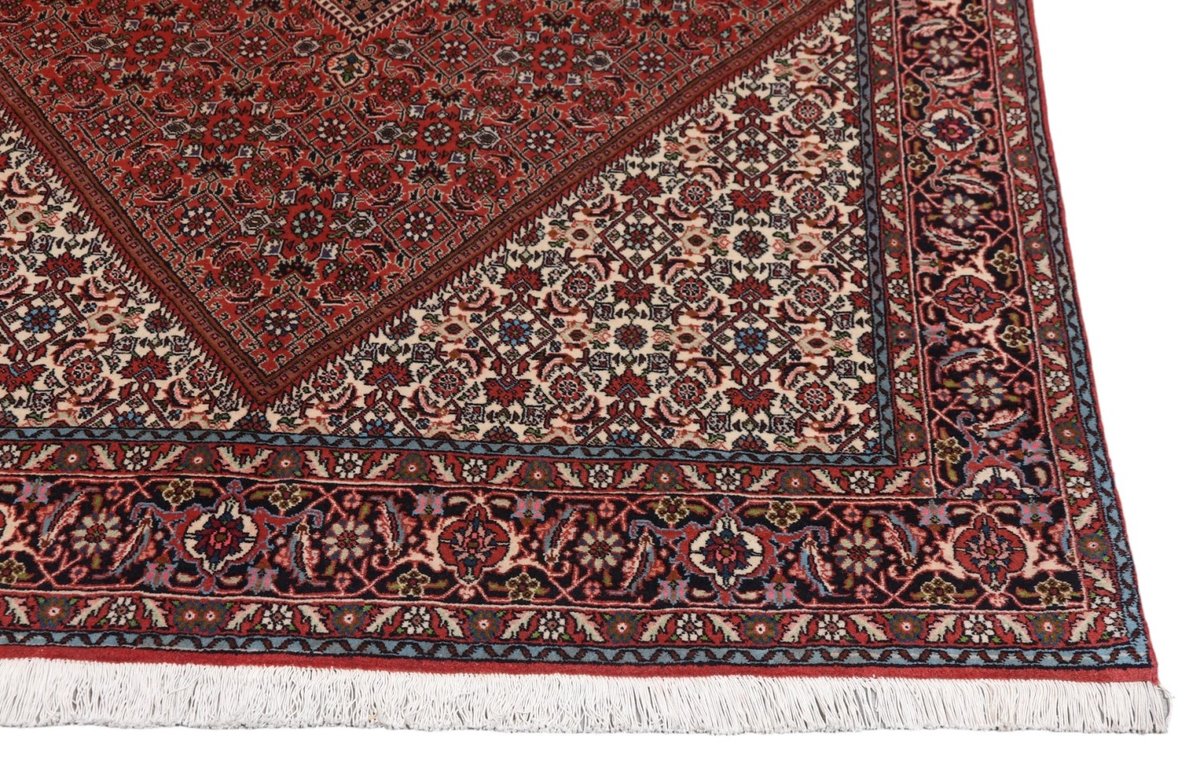 In der kurdischen Teppichprovenienz Bidjar, im Nordwesten des Iran, wird eine besondere Knüpfkunst gepflegt, die dem Bidjar-Perserteppich international einen guten Ruf als äußerst robuster Orientteppichverschafft hat. Im Persischen wird er auch „Eisenteppich“ genannt, da seine Baumwoll-Schussfäden angefeuchtet und durch einen Eisenkamm fest mit den Reihen aus türkischen Knoten zusammengedrückt werden. Somit entsteht ein sehr dichter Flor, der kaum Schmutzpartikel durchlässt und den Bidjar-Perserteppich zur idealen Ausstattung für stark beanspruchte Bodenflächen, beispielsweise in öffentlichen Räumen oder im Essbereich, macht.