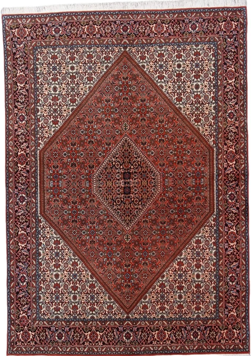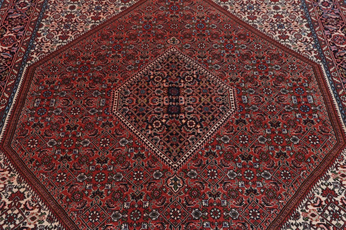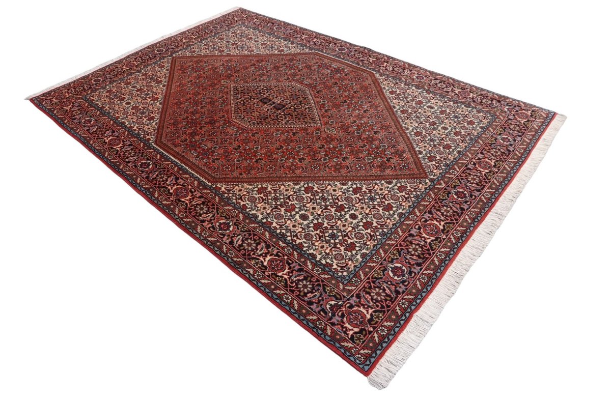 In der kurdischen Teppichprovenienz Bidjar, im Nordwesten des Iran, wird eine besondere Knüpfkunst gepflegt, die dem Bidjar-Perserteppich international einen guten Ruf als äußerst robuster Orientteppichverschafft hat. Im Persischen wird er auch „Eisenteppich“ genannt, da seine Baumwoll-Schussfäden angefeuchtet und durch einen Eisenkamm fest mit den Reihen aus türkischen Knoten zusammengedrückt werden. Somit entsteht ein sehr dichter Flor, der kaum Schmutzpartikel durchlässt und den Bidjar-Perserteppich zur idealen Ausstattung für stark beanspruchte Bodenflächen, beispielsweise in öffentlichen Räumen oder im Essbereich, macht.