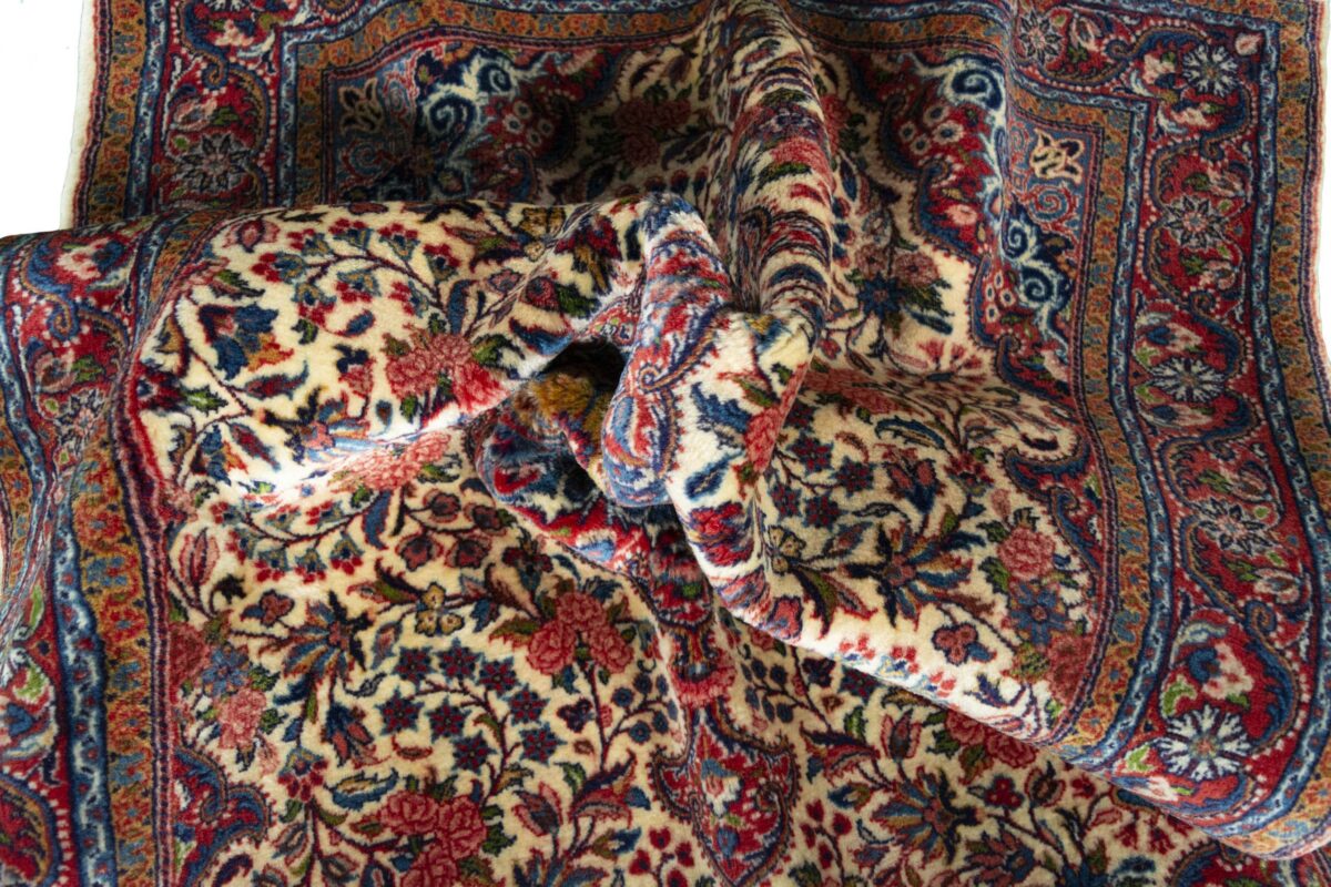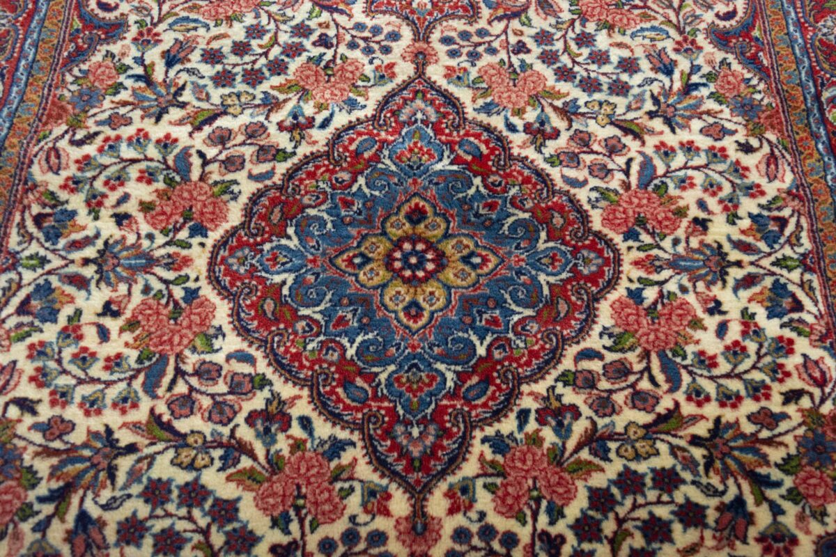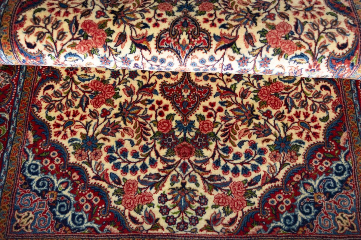 In der kurdischen Teppichprovenienz Bidjar, im Nordwesten des Iran, wird eine besondere Knüpfkunst gepflegt, die dem Bidjar-Perserteppich international einen guten Ruf als äußerst robuster Orientteppichverschafft hat. Im Persischen wird er auch „Eisenteppich“ genannt, da seine Baumwoll-Schussfäden angefeuchtet und durch einen Eisenkamm fest mit den Reihen aus türkischen Knoten zusammengedrückt werden. Somit entsteht ein sehr dichter Flor, der kaum Schmutzpartikel durchlässt und den Bidjar-Perserteppich zur idealen Ausstattung für stark beanspruchte Bodenflächen, beispielsweise in öffentlichen Räumen oder im Essbereich, macht.