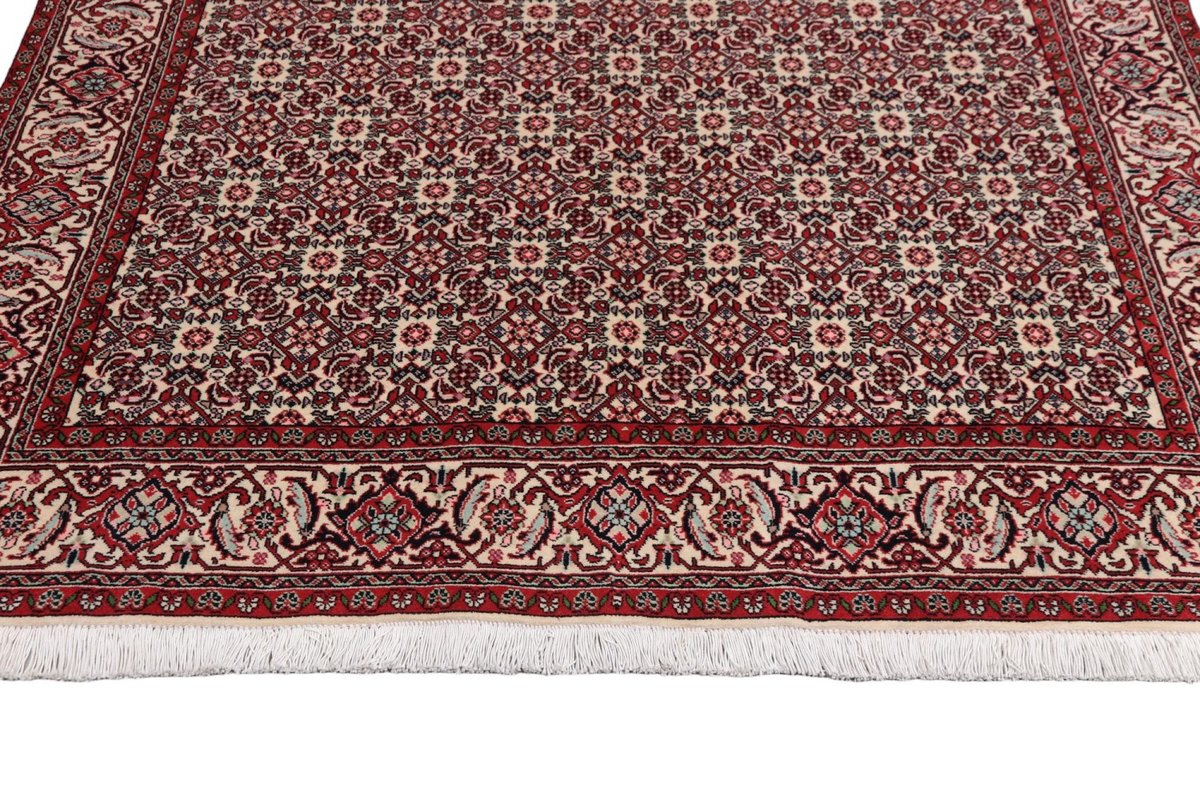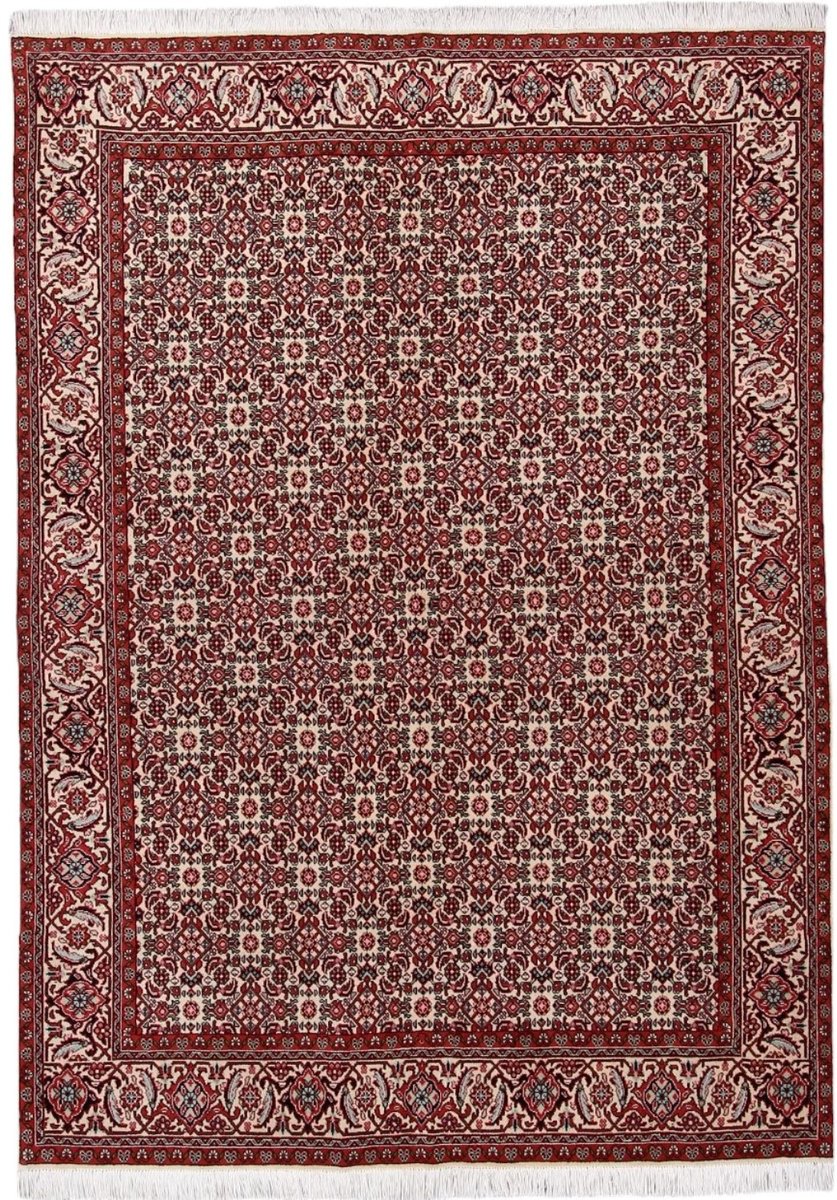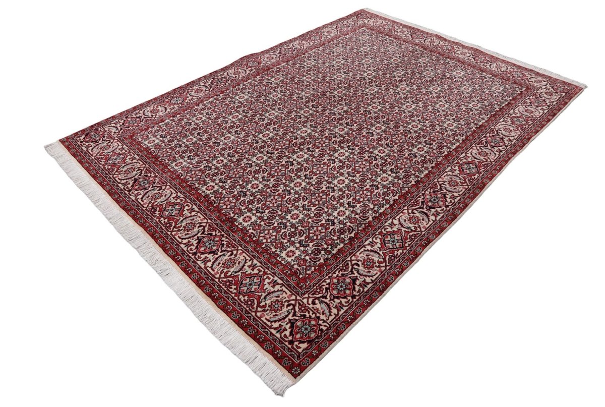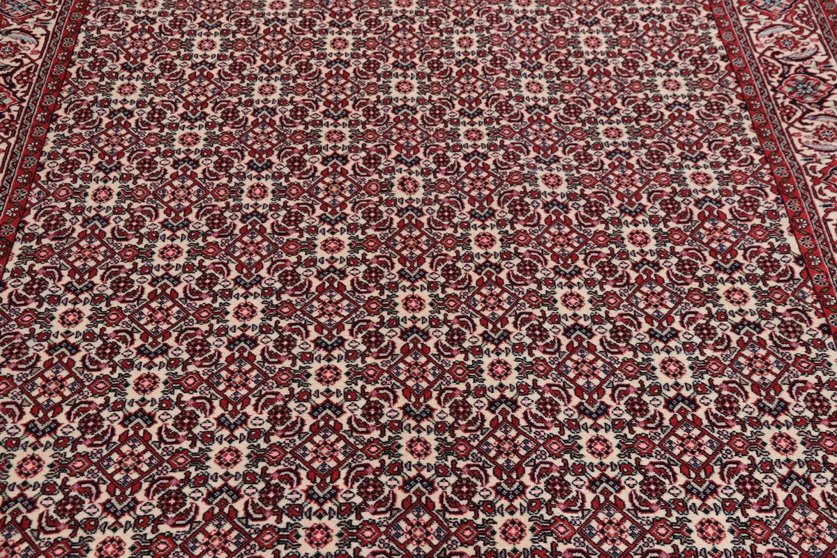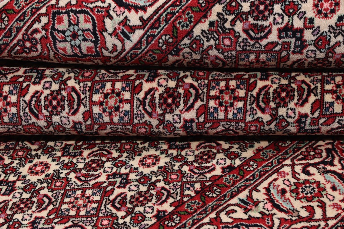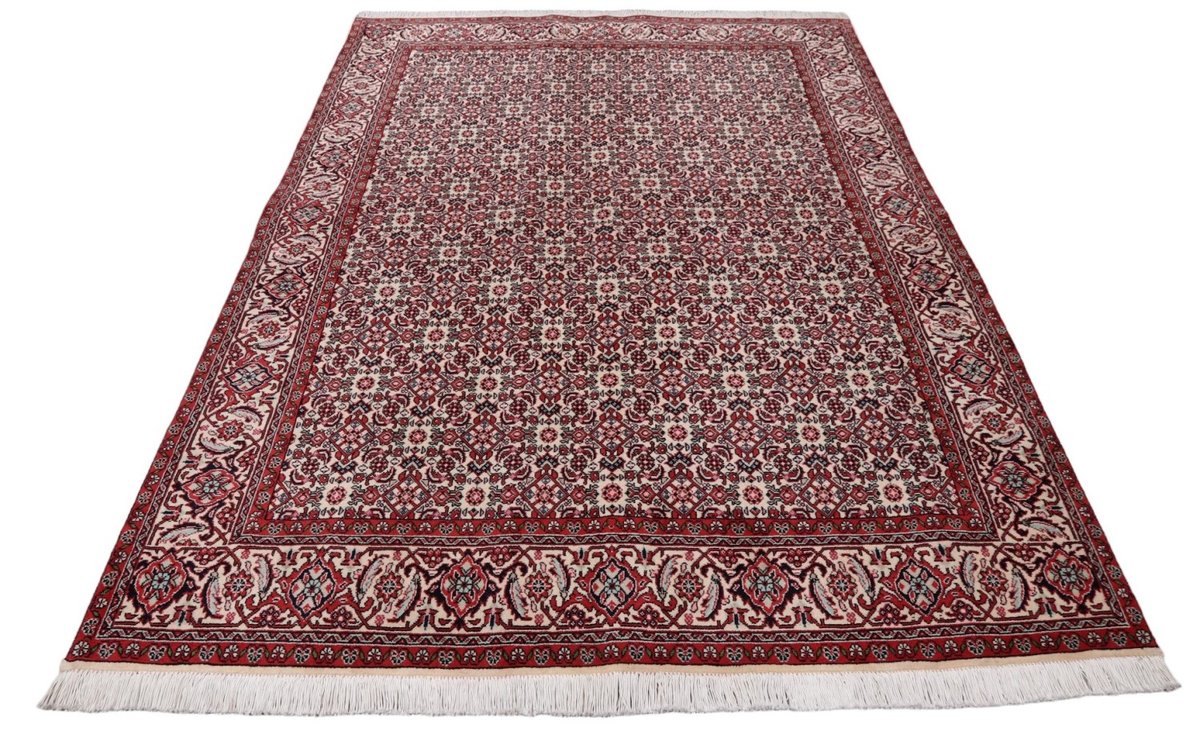In der kurdischen Teppichprovenienz Bidjar, im Nordwesten des Iran, wird eine besondere Knüpfkunst gepflegt, die dem Bidjar-Perserteppich international einen guten Ruf als äußerst robuster Orientteppichverschafft hat. Im Persischen wird er auch „Eisenteppich“ genannt, da seine Baumwoll-Schussfäden angefeuchtet und durch einen Eisenkamm fest mit den Reihen aus türkischen Knoten zusammengedrückt werden. Somit entsteht ein sehr dichter Flor, der kaum Schmutzpartikel durchlässt und den Bidjar-Perserteppich zur idealen Ausstattung für stark beanspruchte Bodenflächen, beispielsweise in öffentlichen Räumen oder im Essbereich, macht.