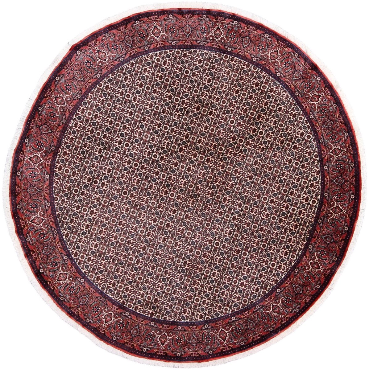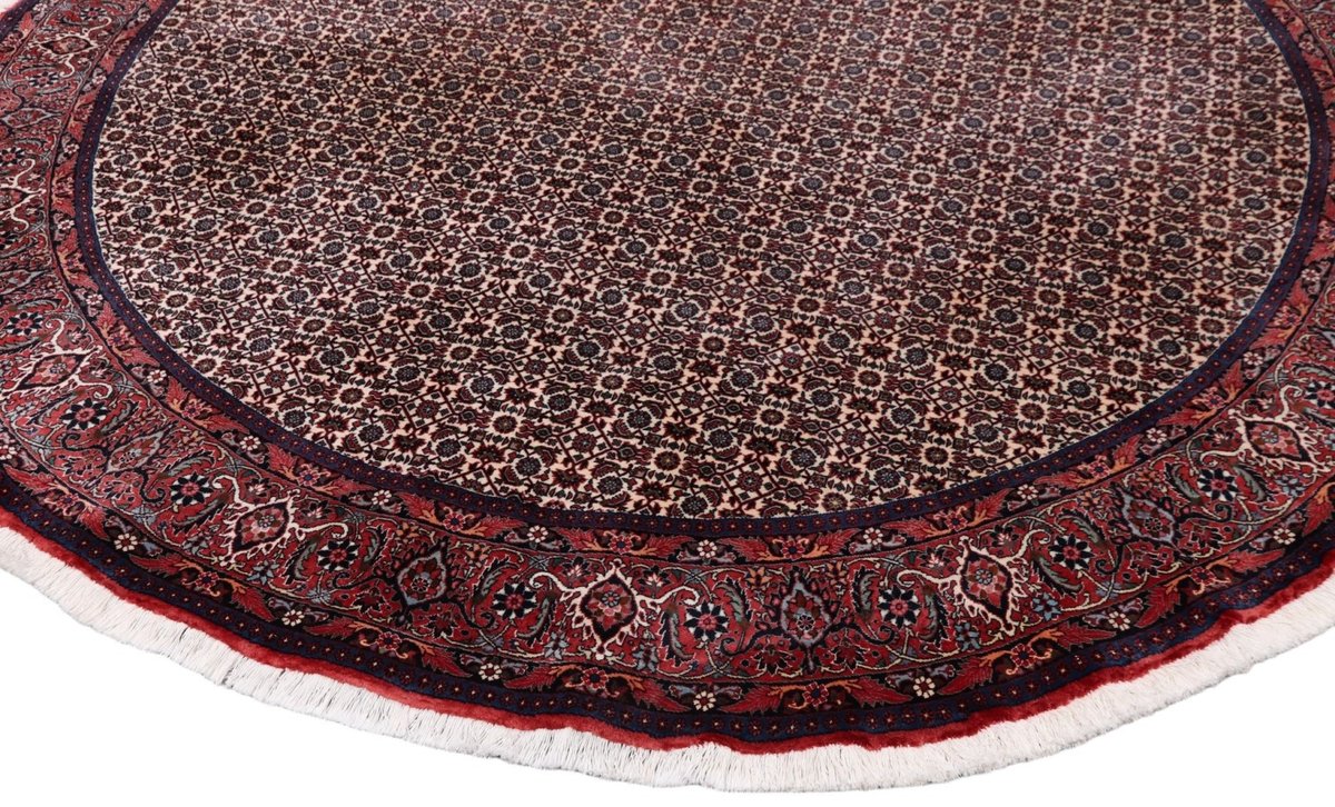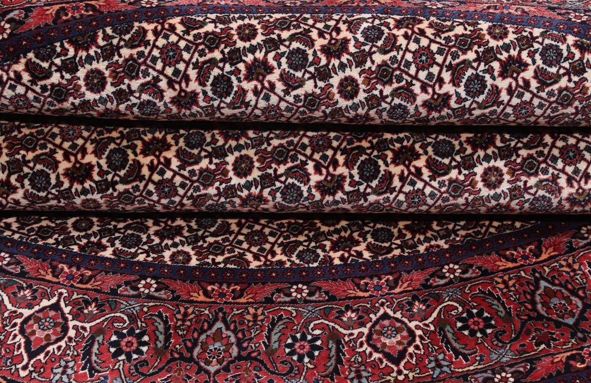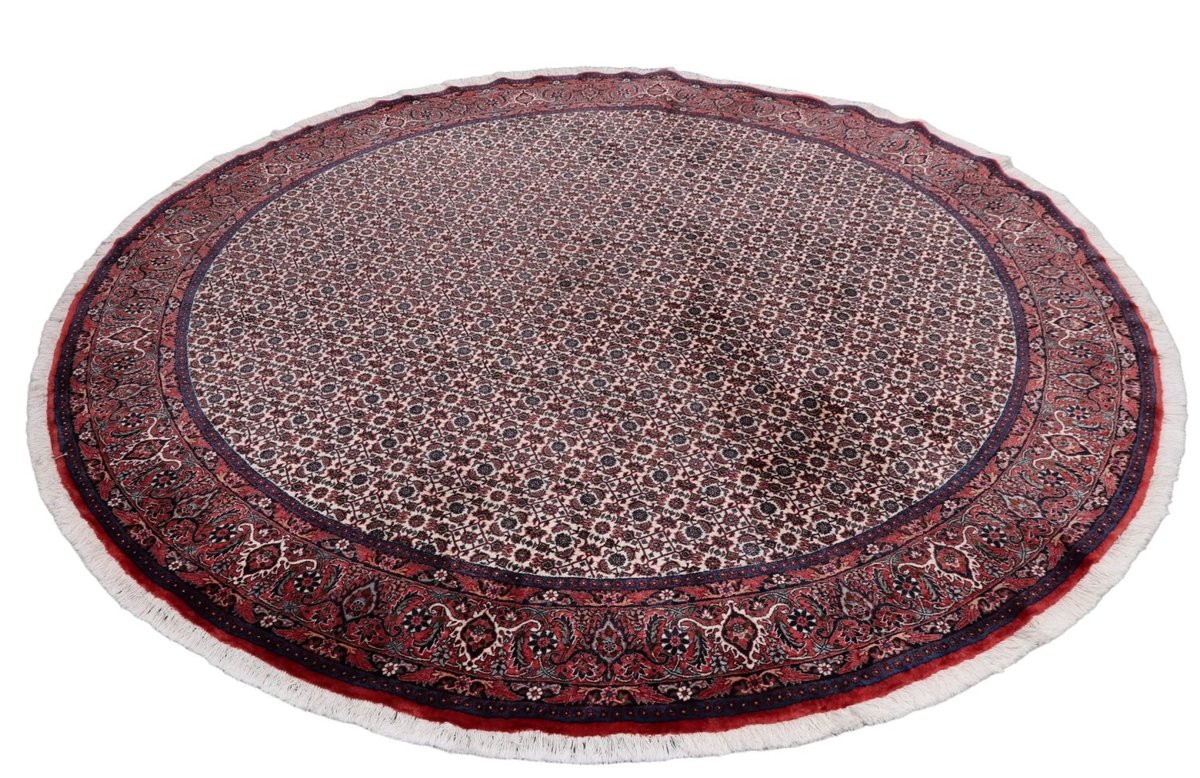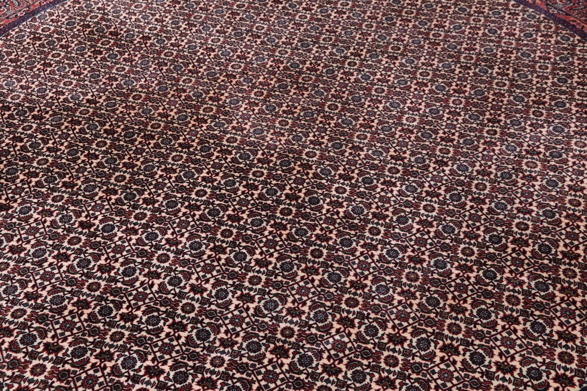 In der kurdischen Teppichprovenienz Bidjar, im Nordwesten des Iran, wird eine besondere Knüpfkunst gepflegt, die dem Bidjar-Perserteppich international einen guten Ruf als äußerst robuster Orientteppichverschafft hat. Im Persischen wird er auch „Eisenteppich“ genannt, da seine Baumwoll-Schussfäden angefeuchtet und durch einen Eisenkamm fest mit den Reihen aus türkischen Knoten zusammengedrückt werden. Somit entsteht ein sehr dichter Flor, der kaum Schmutzpartikel durchlässt und den Bidjar-Perserteppich zur idealen Ausstattung für stark beanspruchte Bodenflächen, beispielsweise in öffentlichen Räumen oder im Essbereich, macht.