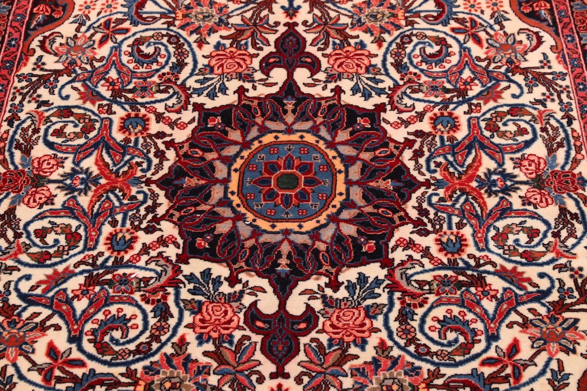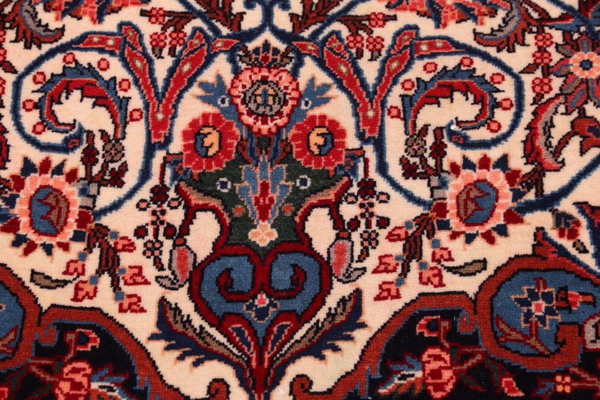 In der kurdischen Teppichprovenienz Bidjar, im Nordwesten des Iran, wird eine besondere Knüpfkunst gepflegt, die dem Bidjar-Perserteppich international einen guten Ruf als äußerst robuster Orientteppichverschafft hat. Im Persischen wird er auch „Eisenteppich“ genannt, da seine Baumwoll-Schussfäden angefeuchtet und durch einen Eisenkamm fest mit den Reihen aus türkischen Knoten zusammengedrückt werden. Somit entsteht ein sehr dichter Flor, der kaum Schmutzpartikel durchlässt und den Bidjar-Perserteppich zur idealen Ausstattung für stark beanspruchte Bodenflächen, beispielsweise in öffentlichen Räumen oder im Essbereich, macht.