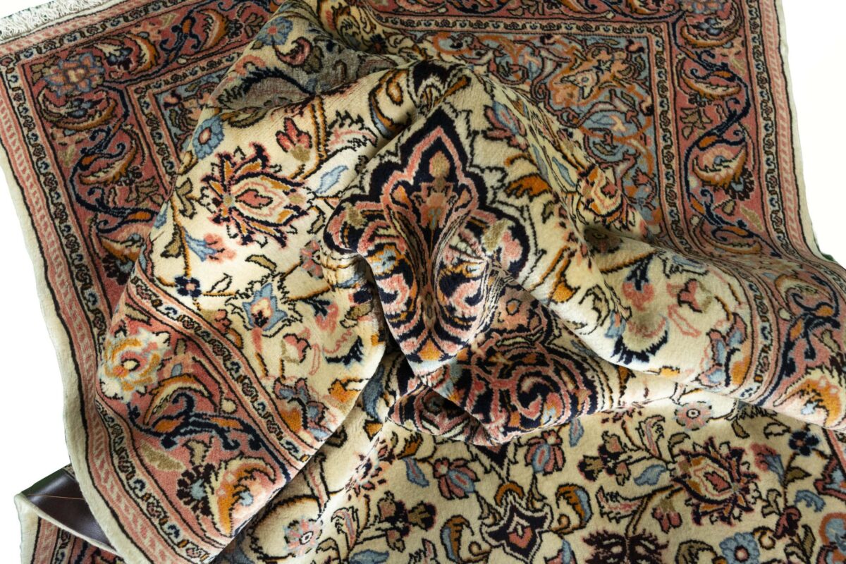 In der kurdischen Teppichprovenienz Bidjar, im Nordwesten des Iran, wird eine besondere Knüpfkunst gepflegt, die dem Bidjar-Perserteppich international einen guten Ruf als äußerst robuster Orientteppichverschafft hat. Im Persischen wird er auch „Eisenteppich“ genannt, da seine Baumwoll-Schussfäden angefeuchtet und durch einen Eisenkamm fest mit den Reihen aus türkischen Knoten zusammengedrückt werden. Somit entsteht ein sehr dichter Flor, der kaum Schmutzpartikel durchlässt und den Bidjar-Perserteppich zur idealen Ausstattung für stark beanspruchte Bodenflächen, beispielsweise in öffentlichen Räumen oder im Essbereich, macht.