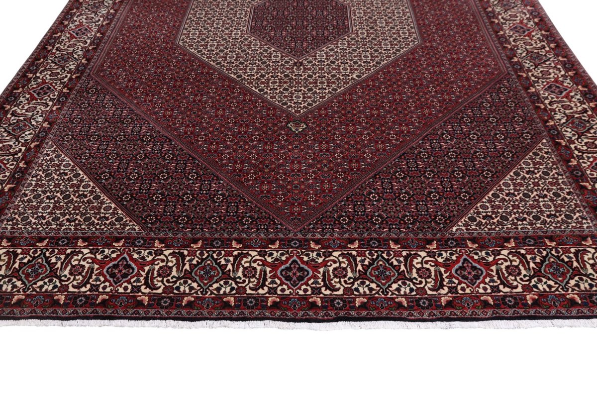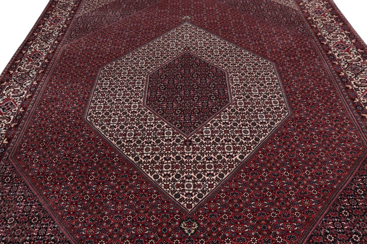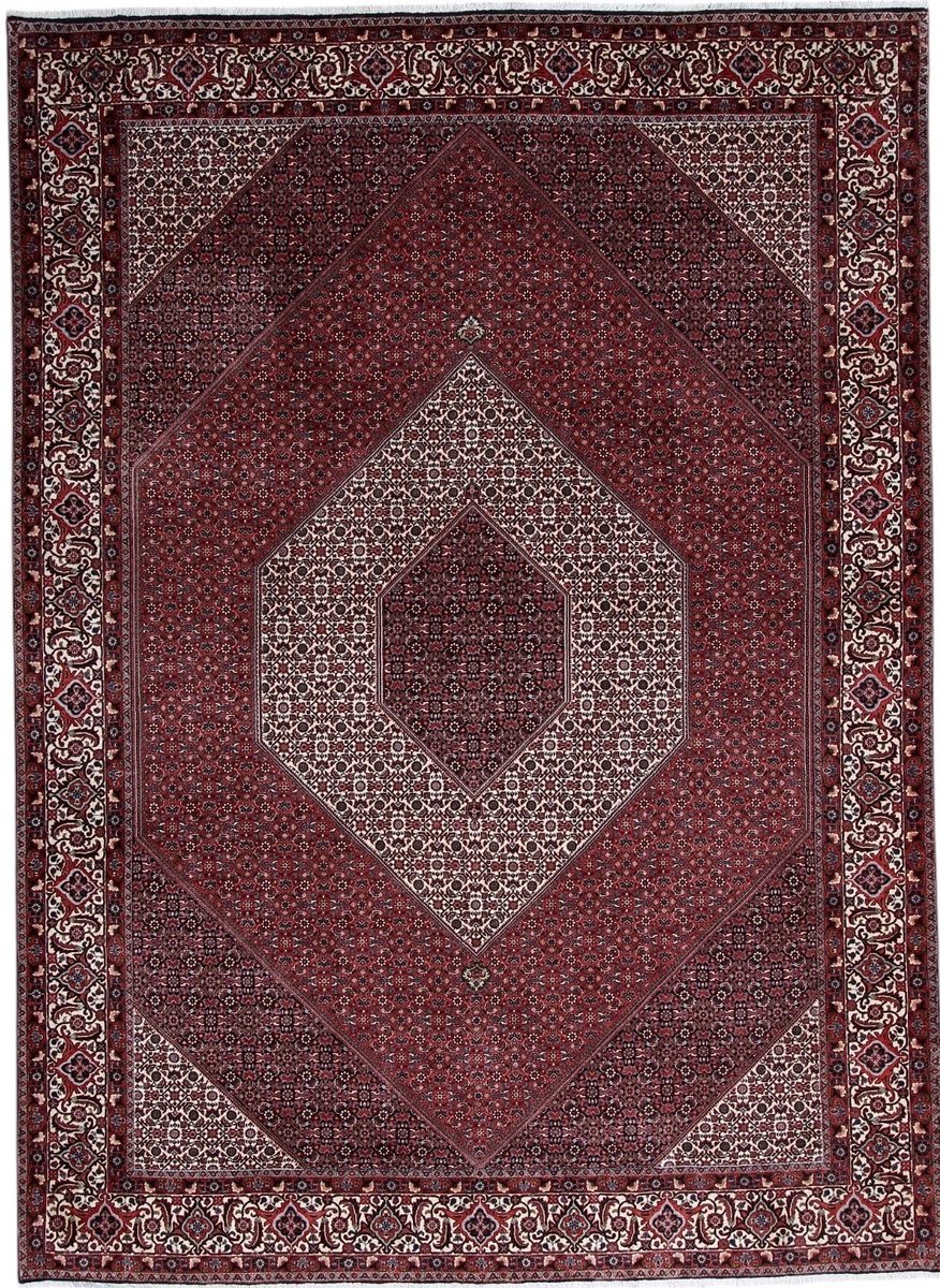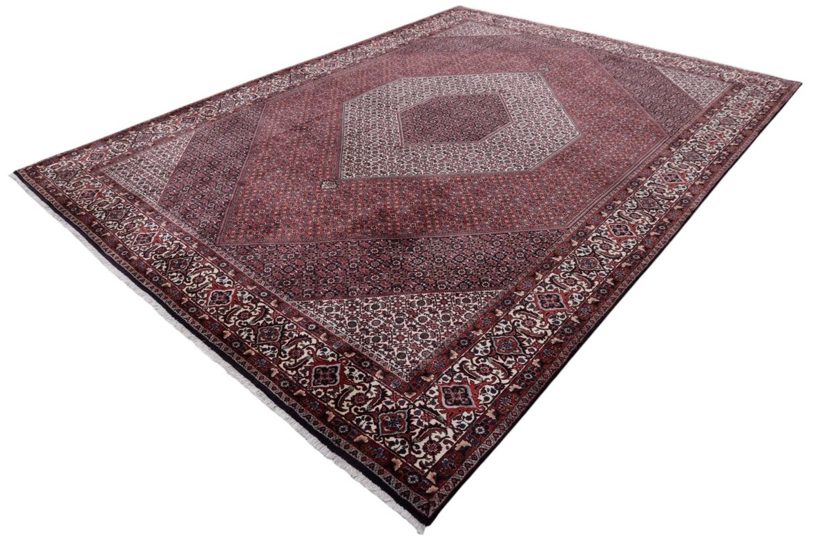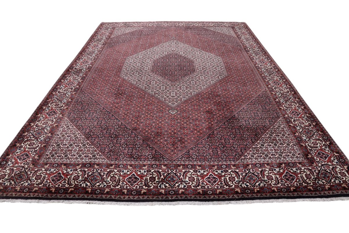 In der kurdischen Teppichprovenienz Bidjar, im Nordwesten des Iran, wird eine besondere Knüpfkunst gepflegt, die dem Bidjar-Perserteppich international einen guten Ruf als äußerst robuster Orientteppichverschafft hat. Im Persischen wird er auch „Eisenteppich“ genannt, da seine Baumwoll-Schussfäden angefeuchtet und durch einen Eisenkamm fest mit den Reihen aus türkischen Knoten zusammengedrückt werden. Somit entsteht ein sehr dichter Flor, der kaum Schmutzpartikel durchlässt und den Bidjar-Perserteppich zur idealen Ausstattung für stark beanspruchte Bodenflächen, beispielsweise in öffentlichen Räumen oder im Essbereich, macht.