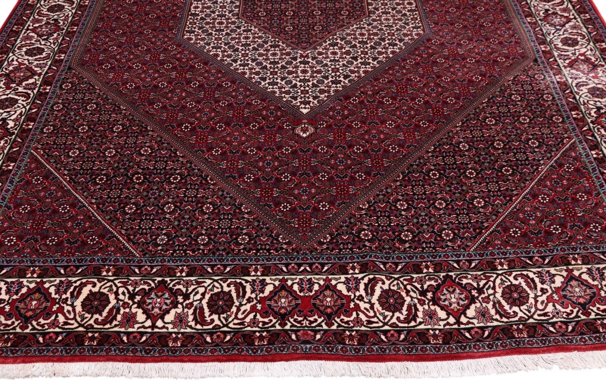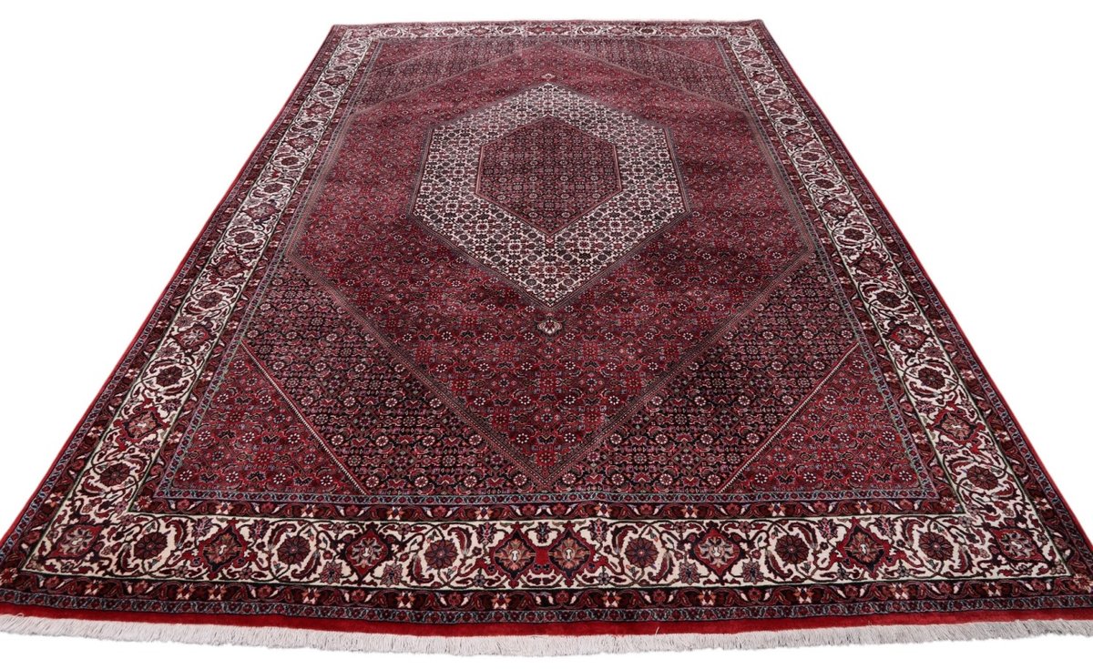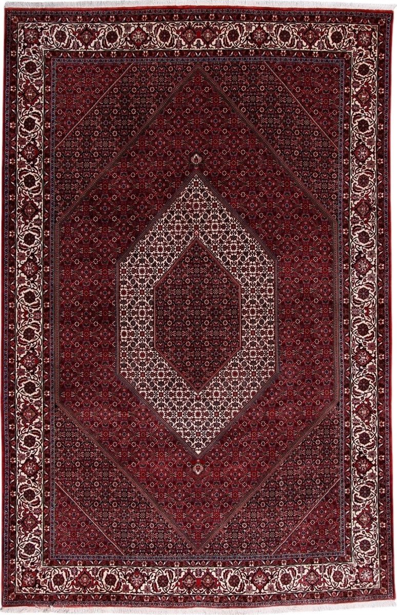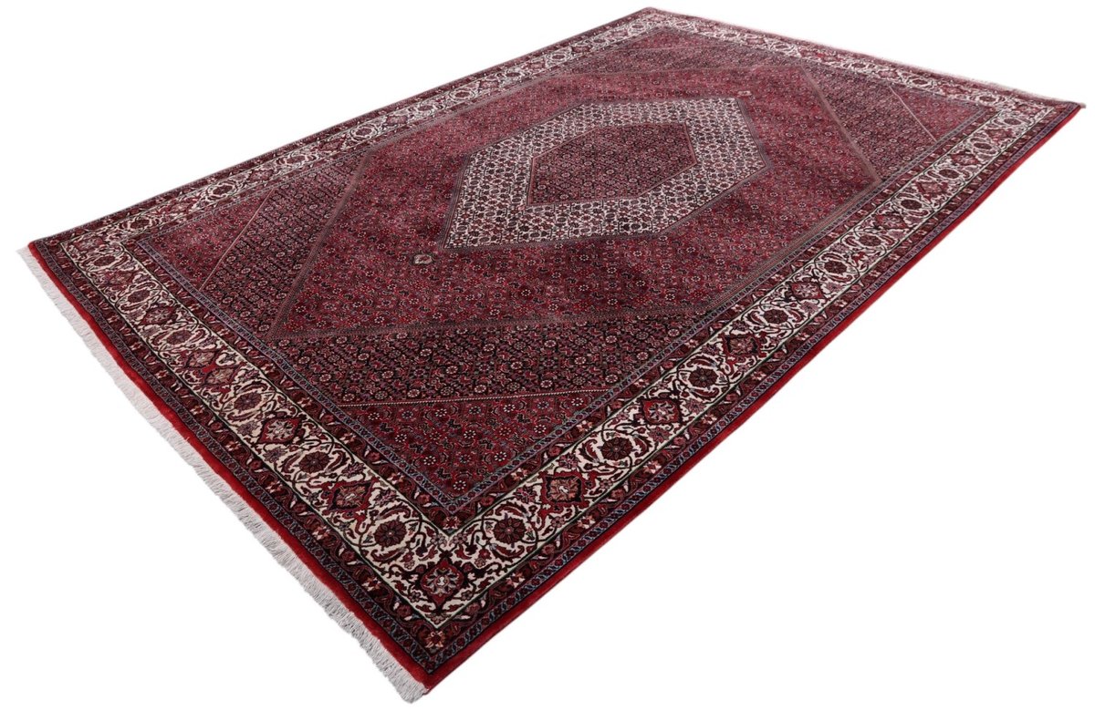 In der kurdischen Teppichprovenienz Bidjar, im Nordwesten des Iran, wird eine besondere Knüpfkunst gepflegt, die dem Bidjar-Perserteppich international einen guten Ruf als äußerst robuster Orientteppichverschafft hat. Im Persischen wird er auch „Eisenteppich“ genannt, da seine Baumwoll-Schussfäden angefeuchtet und durch einen Eisenkamm fest mit den Reihen aus türkischen Knoten zusammengedrückt werden. Somit entsteht ein sehr dichter Flor, der kaum Schmutzpartikel durchlässt und den Bidjar-Perserteppich zur idealen Ausstattung für stark beanspruchte Bodenflächen, beispielsweise in öffentlichen Räumen oder im Essbereich, macht.