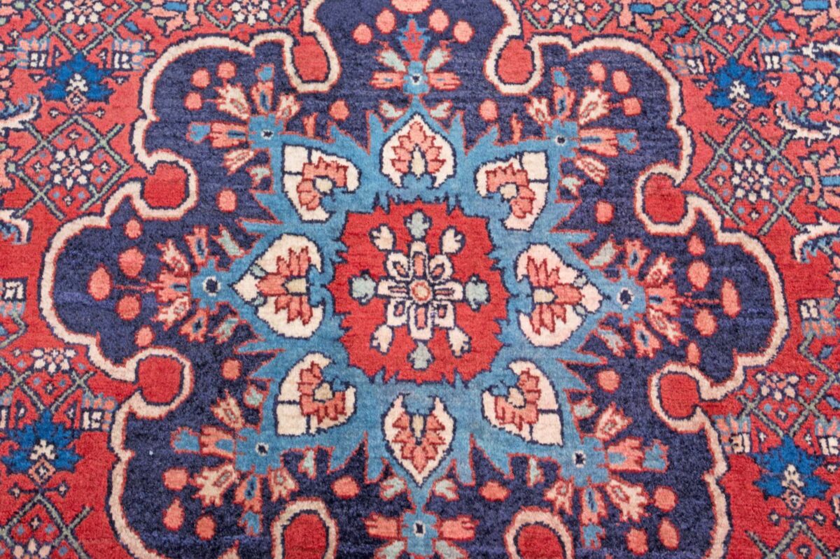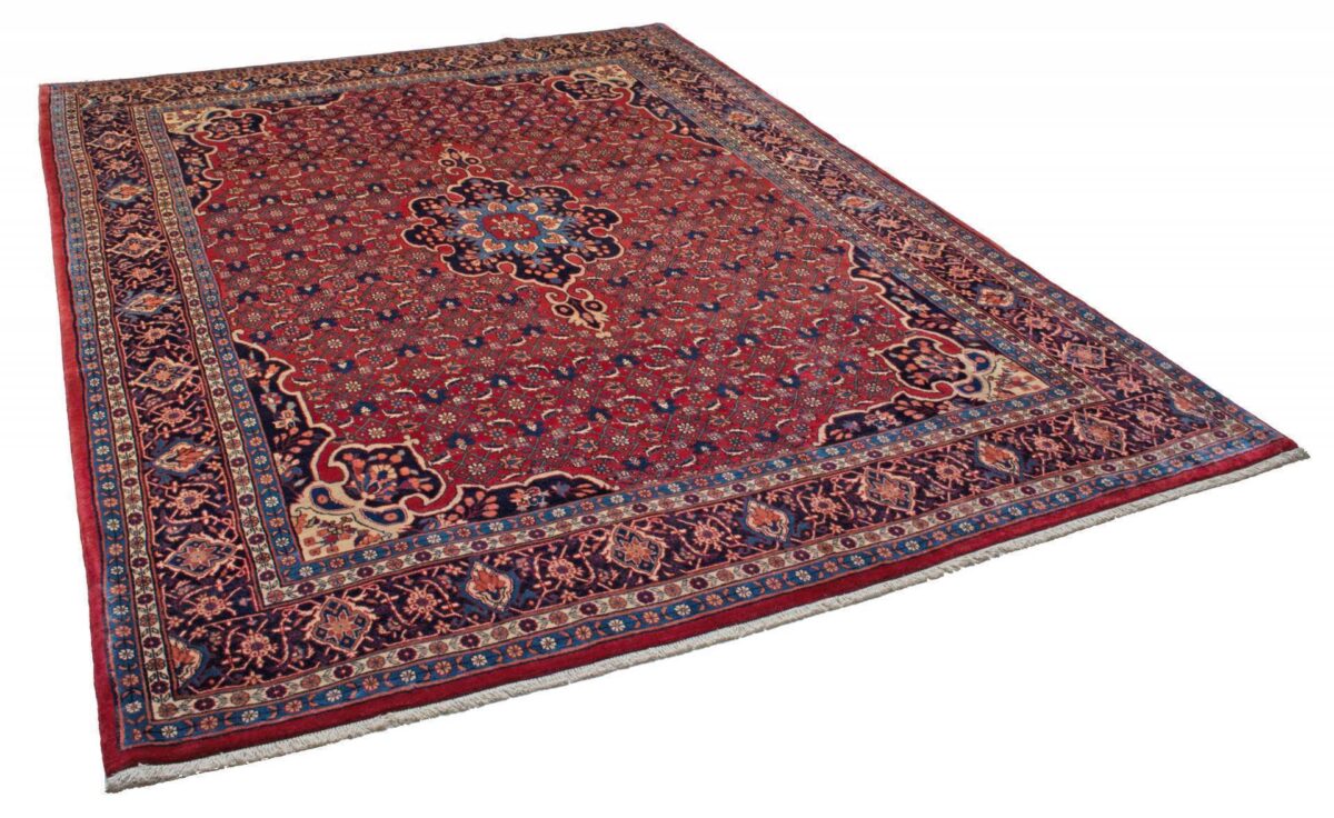 In der kurdischen Teppichprovenienz Bidjar, im Nordwesten des Iran, wird eine besondere Knüpfkunst gepflegt, die dem Bidjar-Perserteppich international einen guten Ruf als äußerst robuster Orientteppichverschafft hat. Im Persischen wird er auch „Eisenteppich“ genannt, da seine Baumwoll-Schussfäden angefeuchtet und durch einen Eisenkamm fest mit den Reihen aus türkischen Knoten zusammengedrückt werden. Somit entsteht ein sehr dichter Flor, der kaum Schmutzpartikel durchlässt und den Bidjar-Perserteppich zur idealen Ausstattung für stark beanspruchte Bodenflächen, beispielsweise in öffentlichen Räumen oder im Essbereich, macht.