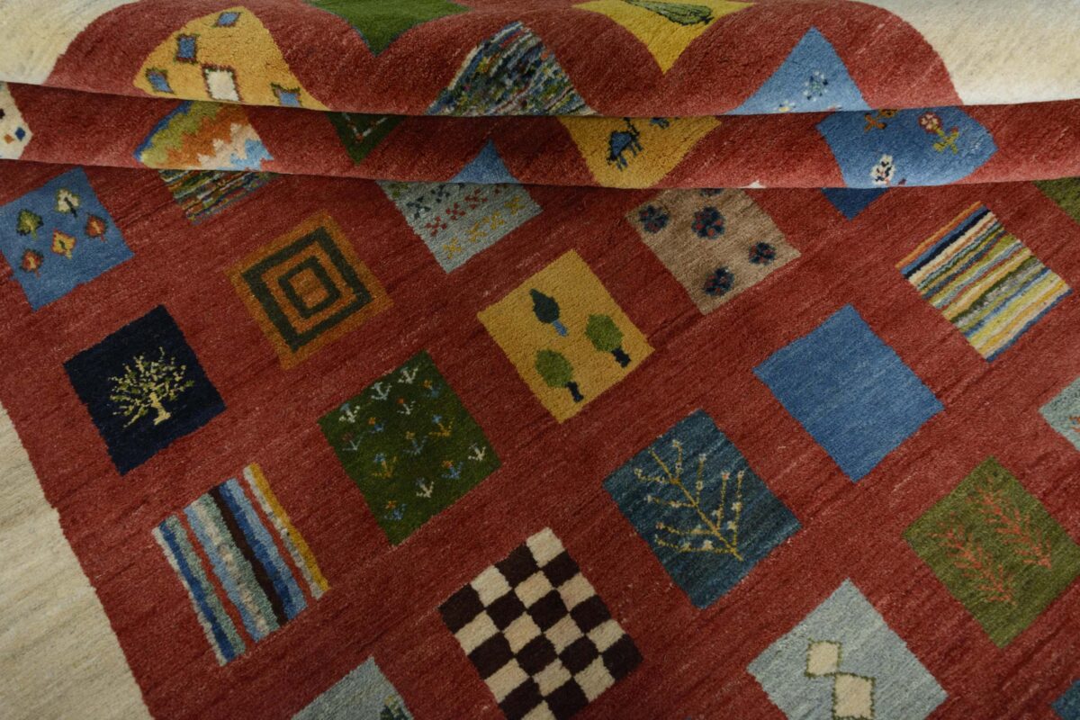 Im Unterschied zu anderen Perserteppichen ist der Flor von Gabbeh-Teppichen dicker und erreicht bis zu 2,5 cm. Die feingesponnene, persische Schurwolle macht ihn besonders flauschig, wobei die feineren Qualitäten auch als Loribaff oder Risbaff bezeichnet werden. Anders als traditionelle Knüpfkunstwerke kann ein moderner Teppich in Gabbeh-Technik verschiedenste Designs aufweisen und wird in zahlreichen modernen Farben angeboten. Daher können Sie günstig (bei mytepp) echte Gabbeh-Teppiche für jeden Geschmack online kaufen.