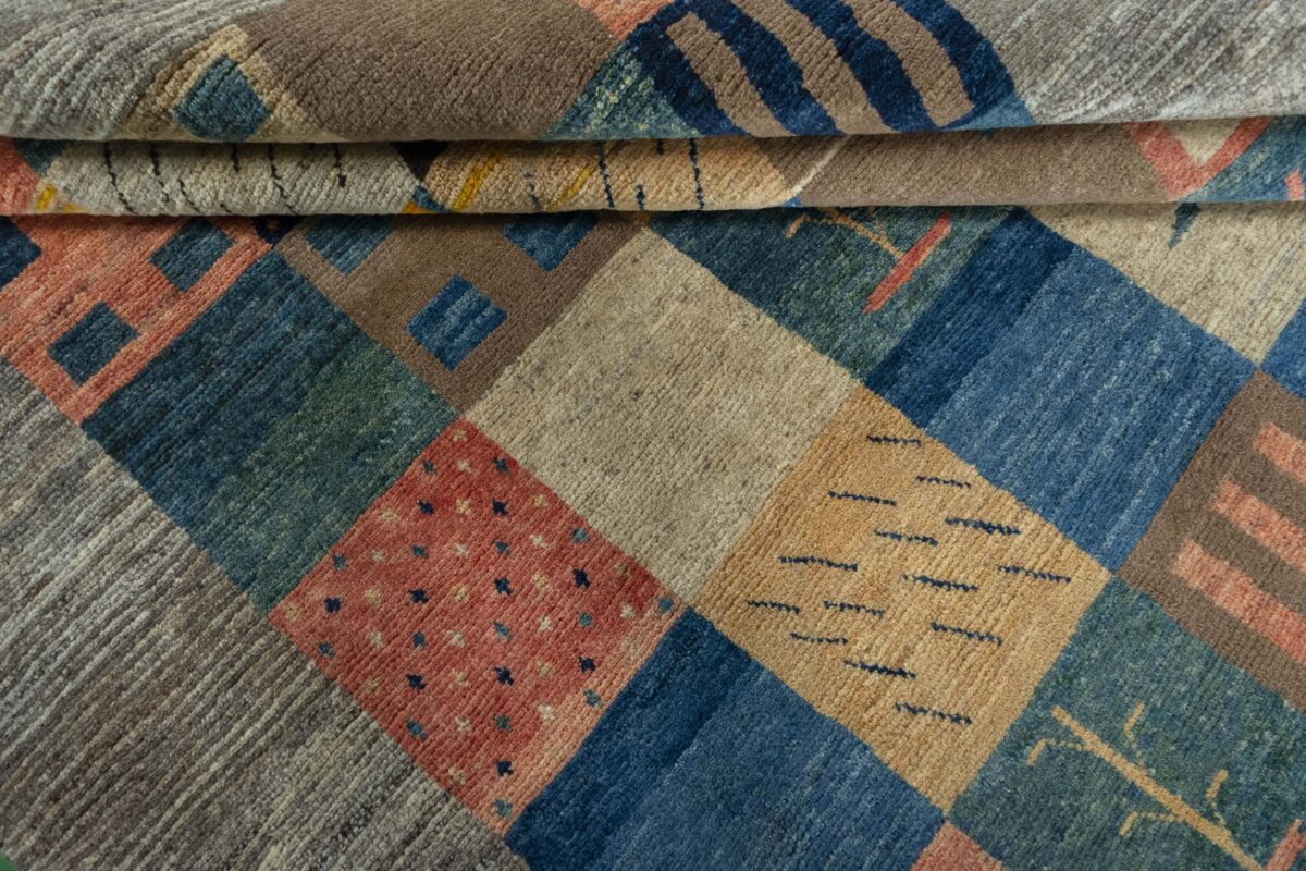Im Unterschied zu anderen Perserteppichen ist der Flor von Gabbeh-Teppichen dicker und erreicht bis zu 2,5 cm. Die feingesponnene, persische Schurwolle macht ihn besonders flauschig, wobei die feineren Qualitäten auch als Loribaff oder Risbaff bezeichnet werden. Anders als traditionelle Knüpfkunstwerke kann ein moderner Teppich in Gabbeh-Technik verschiedenste Designs aufweisen und wird in zahlreichen modernen Farben angeboten. Daher können Sie günstig (bei mytepp) echte Gabbeh-Teppiche für jeden Geschmack online kaufen.