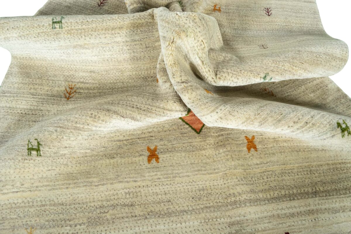 Im Unterschied zu anderen Perserteppichen ist der Flor von Gabbeh-Teppichen dicker und erreicht bis zu 2,5 cm. Die feingesponnene, persische Schurwolle macht ihn besonders flauschig, wobei die feineren Qualitäten auch als Loribaff oder Risbaff bezeichnet werden. Anders als traditionelle Knüpfkunstwerke kann ein moderner Teppich in Gabbeh-Technik verschiedenste Designs aufweisen und wird in zahlreichen modernen Farben angeboten. Daher können Sie günstig (bei mytepp) echte Gabbeh-Teppiche für jeden Geschmack online kaufen.