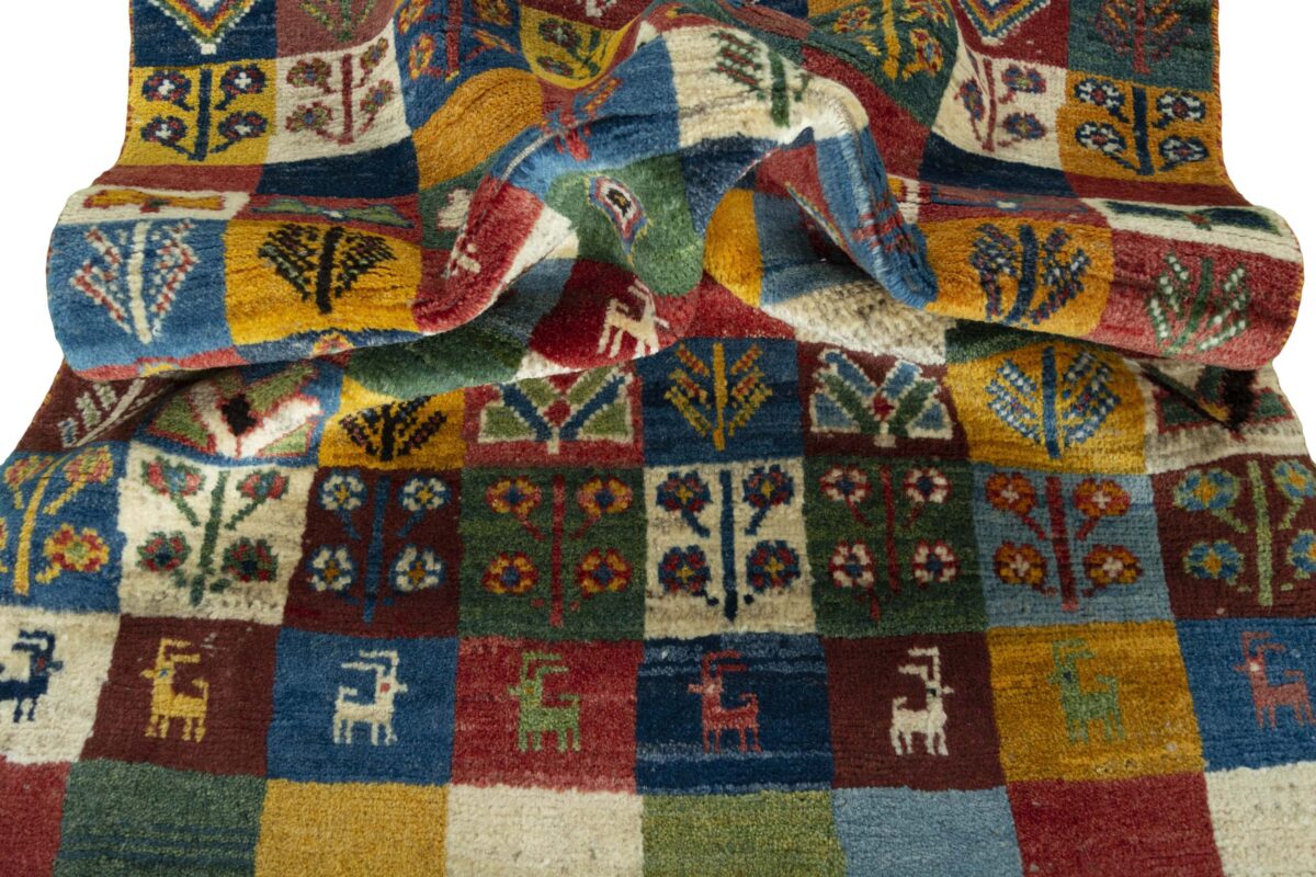 Im Unterschied zu anderen Perserteppichen ist der Flor von Gabbeh-Teppichen dicker und erreicht bis zu 2,5 cm. Die feingesponnene, persische Schurwolle macht ihn besonders flauschig, wobei die feineren Qualitäten auch als Loribaff oder Risbaff bezeichnet werden. Anders als traditionelle Knüpfkunstwerke kann ein moderner Teppich in Gabbeh-Technik verschiedenste Designs aufweisen und wird in zahlreichen modernen Farben angeboten. Daher können Sie günstig (bei mytepp) echte Gabbeh-Teppiche für jeden Geschmack online kaufen.