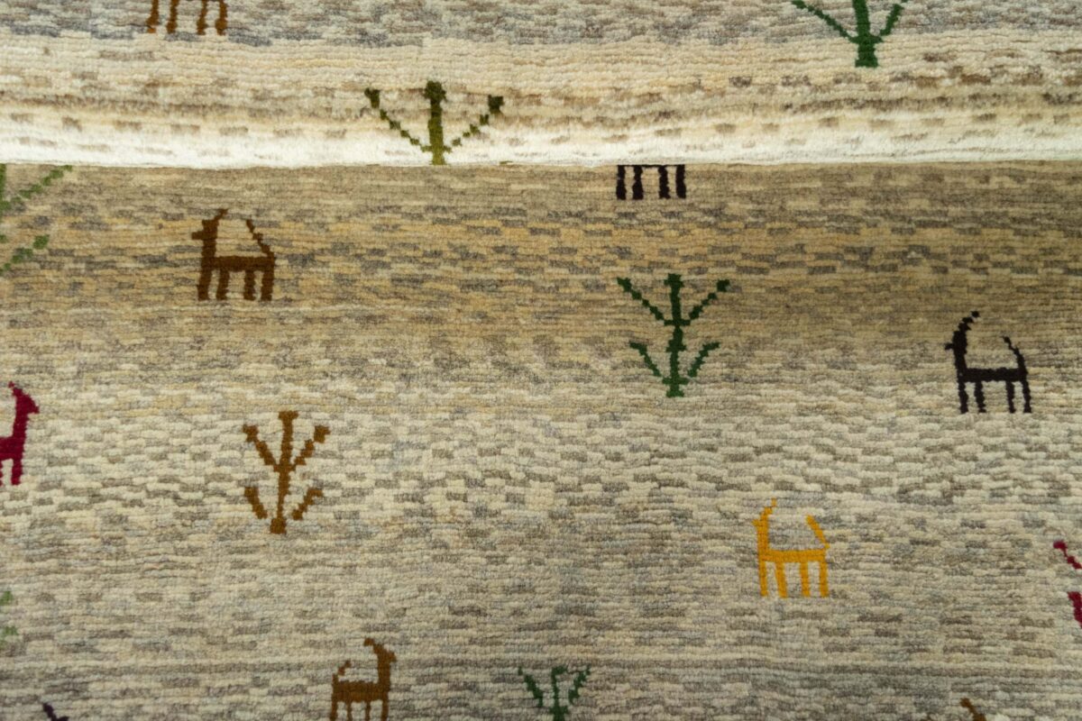 Im Unterschied zu anderen Perserteppichen ist der Flor von Gabbeh-Teppichen dicker und erreicht bis zu 2,5 cm. Die feingesponnene, persische Schurwolle macht ihn besonders flauschig, wobei die feineren Qualitäten auch als Loribaff oder Risbaff bezeichnet werden. Anders als traditionelle Knüpfkunstwerke kann ein moderner Teppich in Gabbeh-Technik verschiedenste Designs aufweisen und wird in zahlreichen modernen Farben angeboten. Daher können Sie günstig (bei mytepp) echte Gabbeh-Teppiche für jeden Geschmack online kaufen.