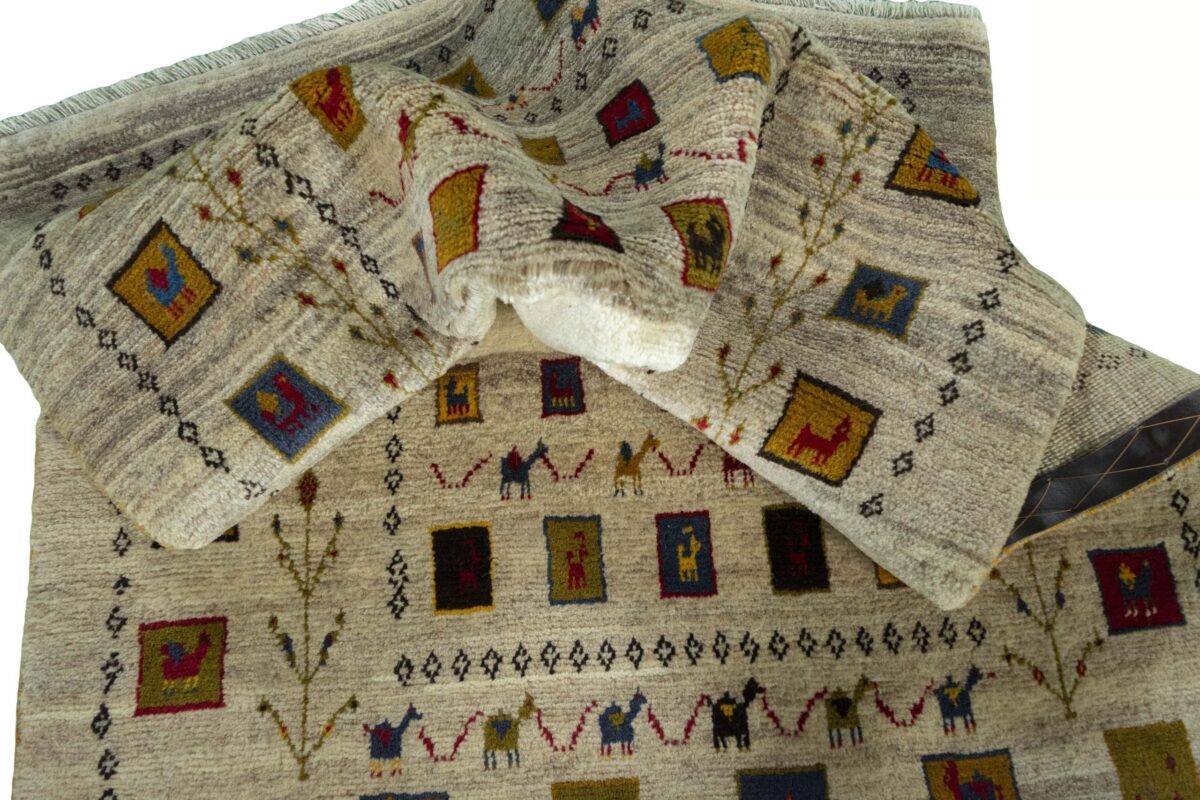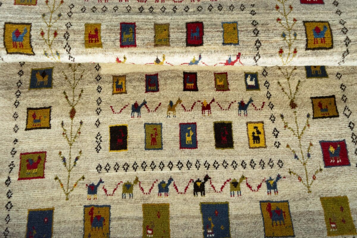 Im Unterschied zu anderen Perserteppichen ist der Flor von Gabbeh-Teppichen dicker und erreicht bis zu 2,5 cm. Die feingesponnene, persische Schurwolle macht ihn besonders flauschig, wobei die feineren Qualitäten auch als Loribaff oder Risbaff bezeichnet werden. Anders als traditionelle Knüpfkunstwerke kann ein moderner Teppich in Gabbeh-Technik verschiedenste Designs aufweisen und wird in zahlreichen modernen Farben angeboten. Daher können Sie günstig (bei mytepp) echte Gabbeh-Teppiche für jeden Geschmack online kaufen.