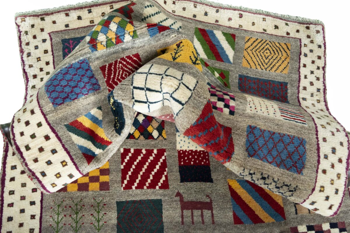 Im Unterschied zu anderen Perserteppichen ist der Flor von Gabbeh-Teppichen dicker und erreicht bis zu 2,5 cm. Die feingesponnene, persische Schurwolle macht ihn besonders flauschig, wobei die feineren Qualitäten auch als Loribaff oder Risbaff bezeichnet werden. Anders als traditionelle Knüpfkunstwerke kann ein moderner Teppich in Gabbeh-Technik verschiedenste Designs aufweisen und wird in zahlreichen modernen Farben angeboten. Daher können Sie günstig (bei mytepp) echte Gabbeh-Teppiche für jeden Geschmack online kaufen.