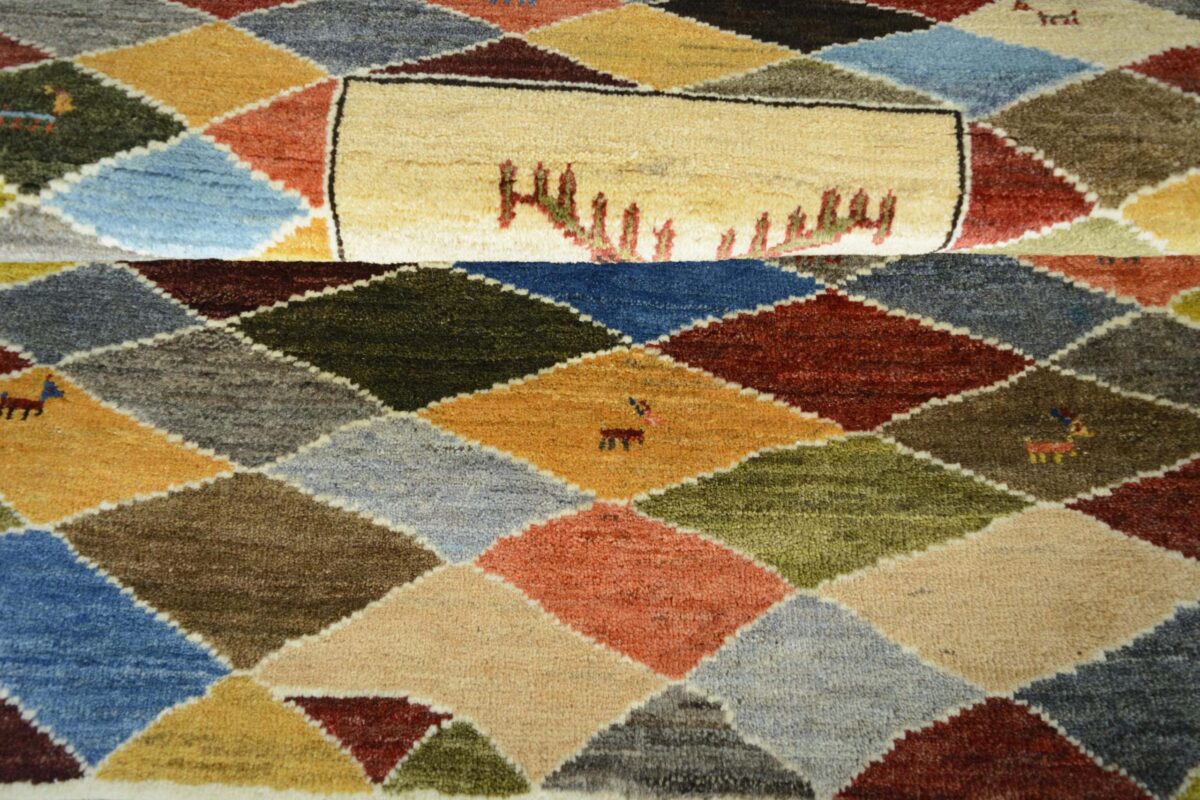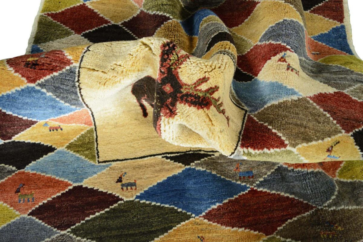 Im Unterschied zu anderen Perserteppichen ist der Flor von Gabbeh-Teppichen dicker und erreicht bis zu 2,5 cm. Die feingesponnene, persische Schurwolle macht ihn besonders flauschig, wobei die feineren Qualitäten auch als Loribaff oder Risbaff bezeichnet werden. Anders als traditionelle Knüpfkunstwerke kann ein moderner Teppich in Gabbeh-Technik verschiedenste Designs aufweisen und wird in zahlreichen modernen Farben angeboten. Daher können Sie günstig (bei mytepp) echte Gabbeh-Teppiche für jeden Geschmack online kaufen.