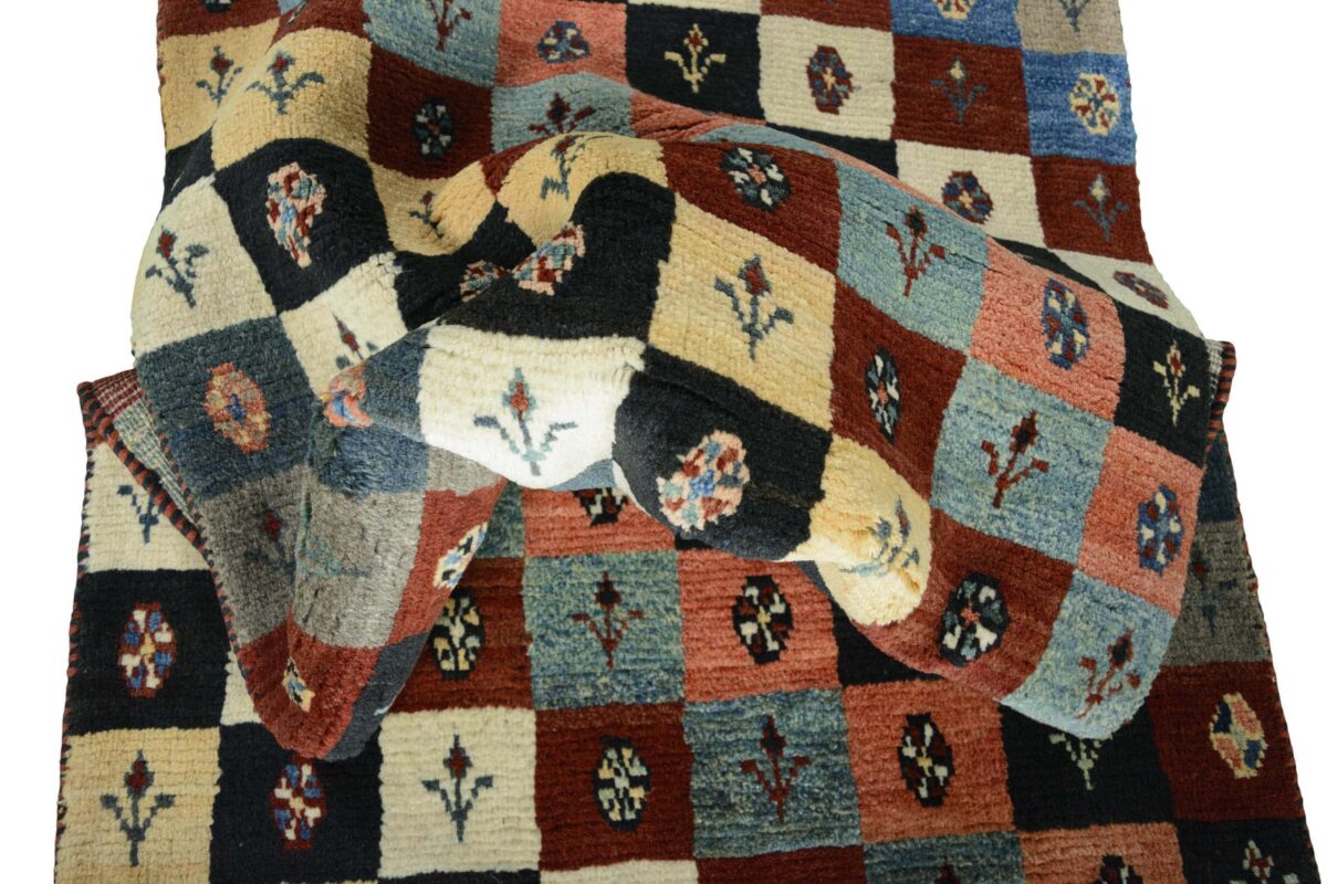 Im Unterschied zu anderen Perserteppichen ist der Flor von Gabbeh-Teppichen dicker und erreicht bis zu 2,5 cm. Die feingesponnene, persische Schurwolle macht ihn besonders flauschig, wobei die feineren Qualitäten auch als Loribaff oder Risbaff bezeichnet werden. Anders als traditionelle Knüpfkunstwerke kann ein moderner Teppich in Gabbeh-Technik verschiedenste Designs aufweisen und wird in zahlreichen modernen Farben angeboten. Daher können Sie günstig (bei mytepp) echte Gabbeh-Teppiche für jeden Geschmack online kaufen.